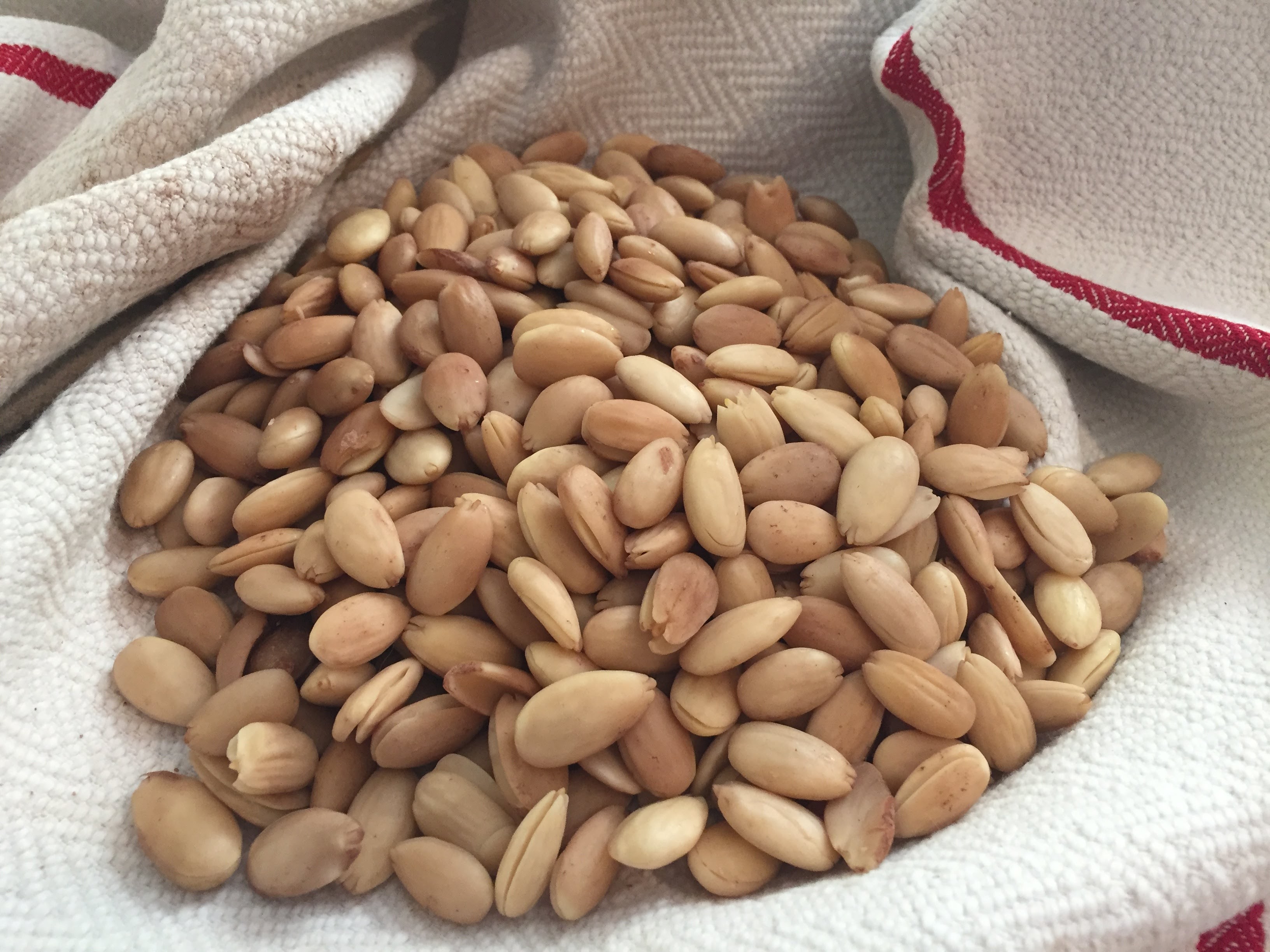 Rinse the newly blanched almonds in a colander under cool water. Remove and discard skins.