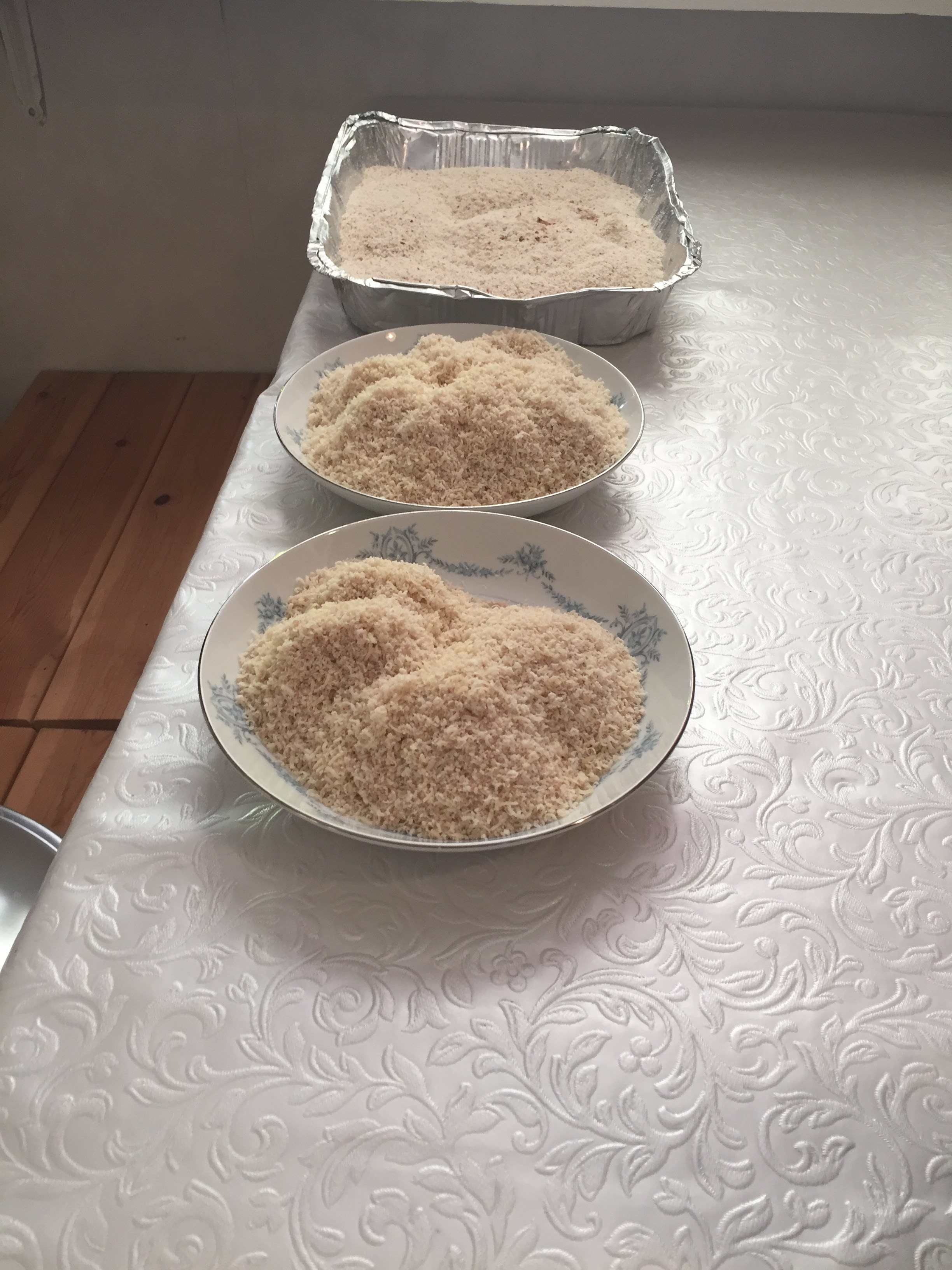 When serving the Kransekake you can use it as a table decoration and place extra rings in broken pieces around to be eaten first. As these end you take loose rings from the bottom and break into pieces and keep the remaining cake in tact for decoration. Left overs can be frozen and taken out to eat at any time and will taste as good as new, maybe even better!