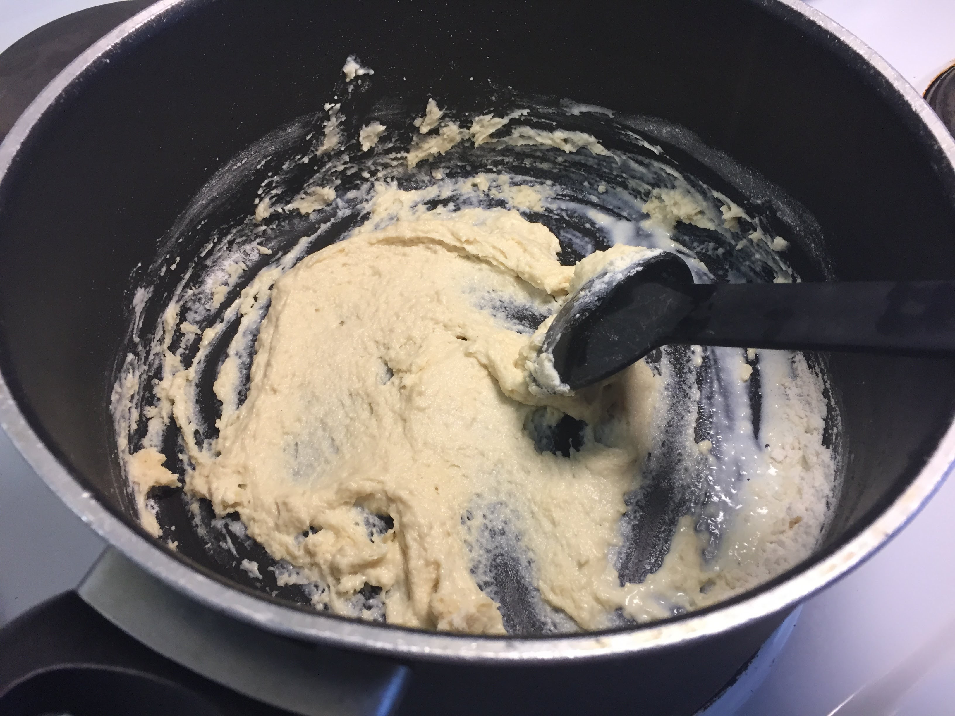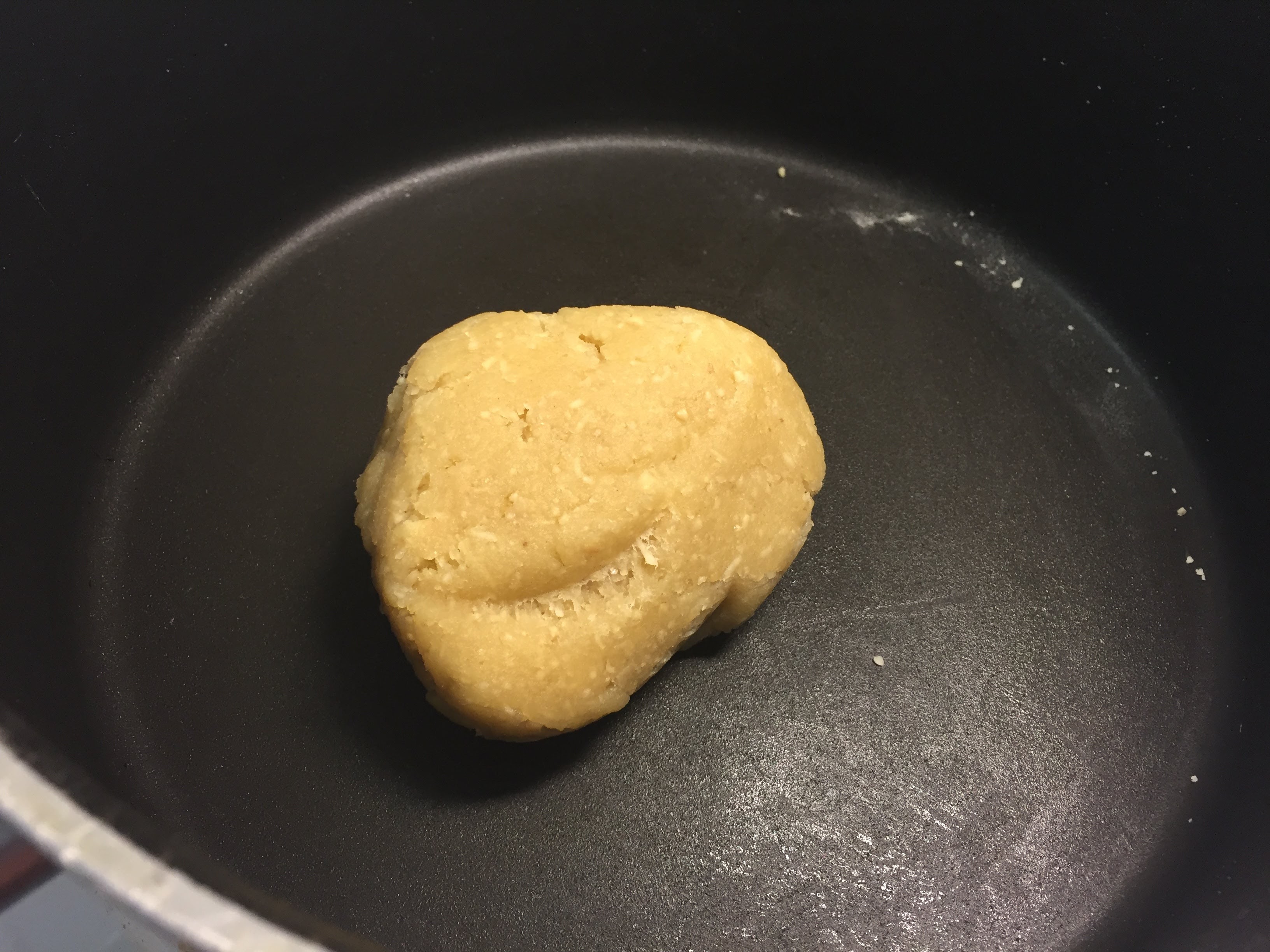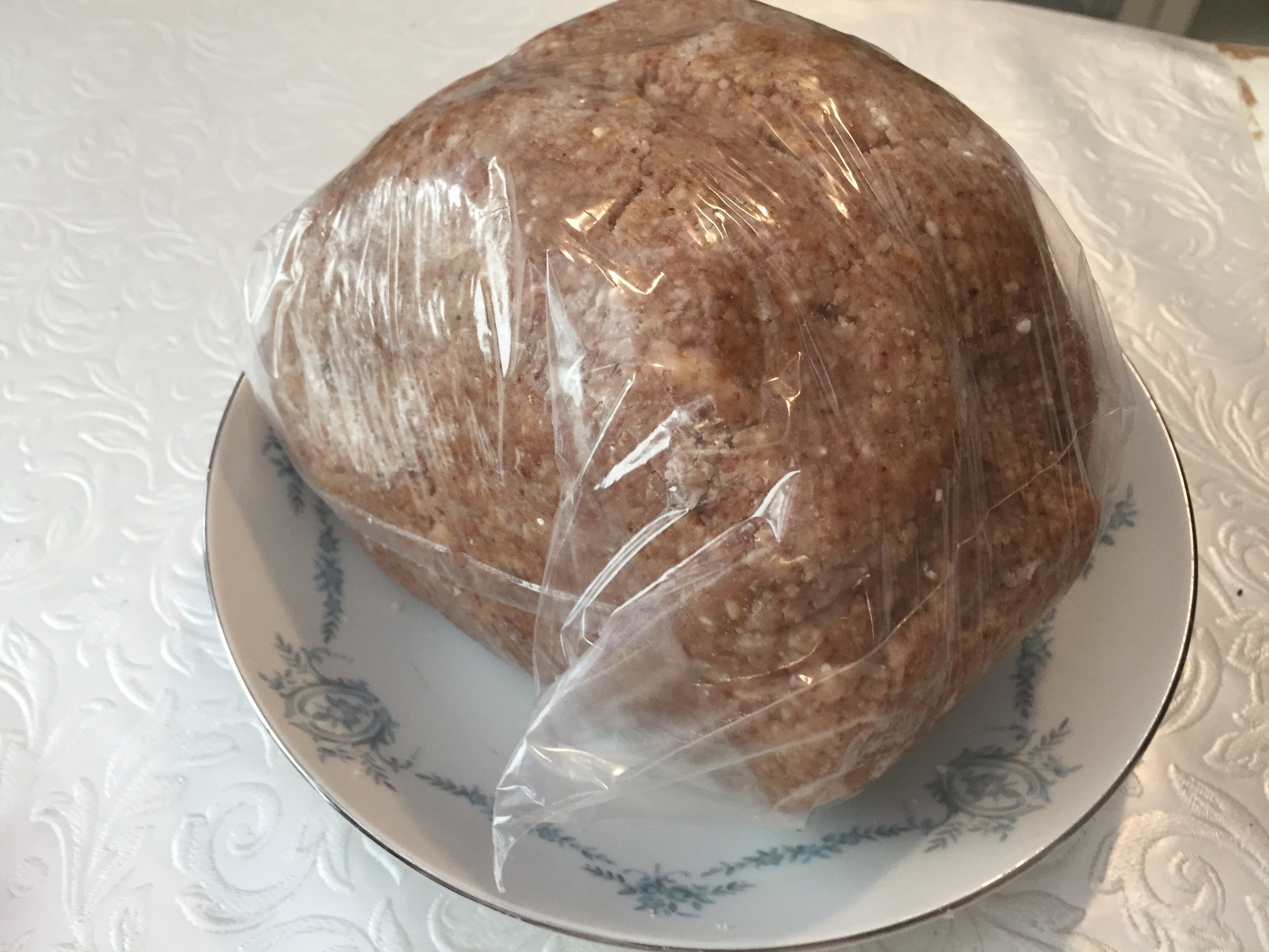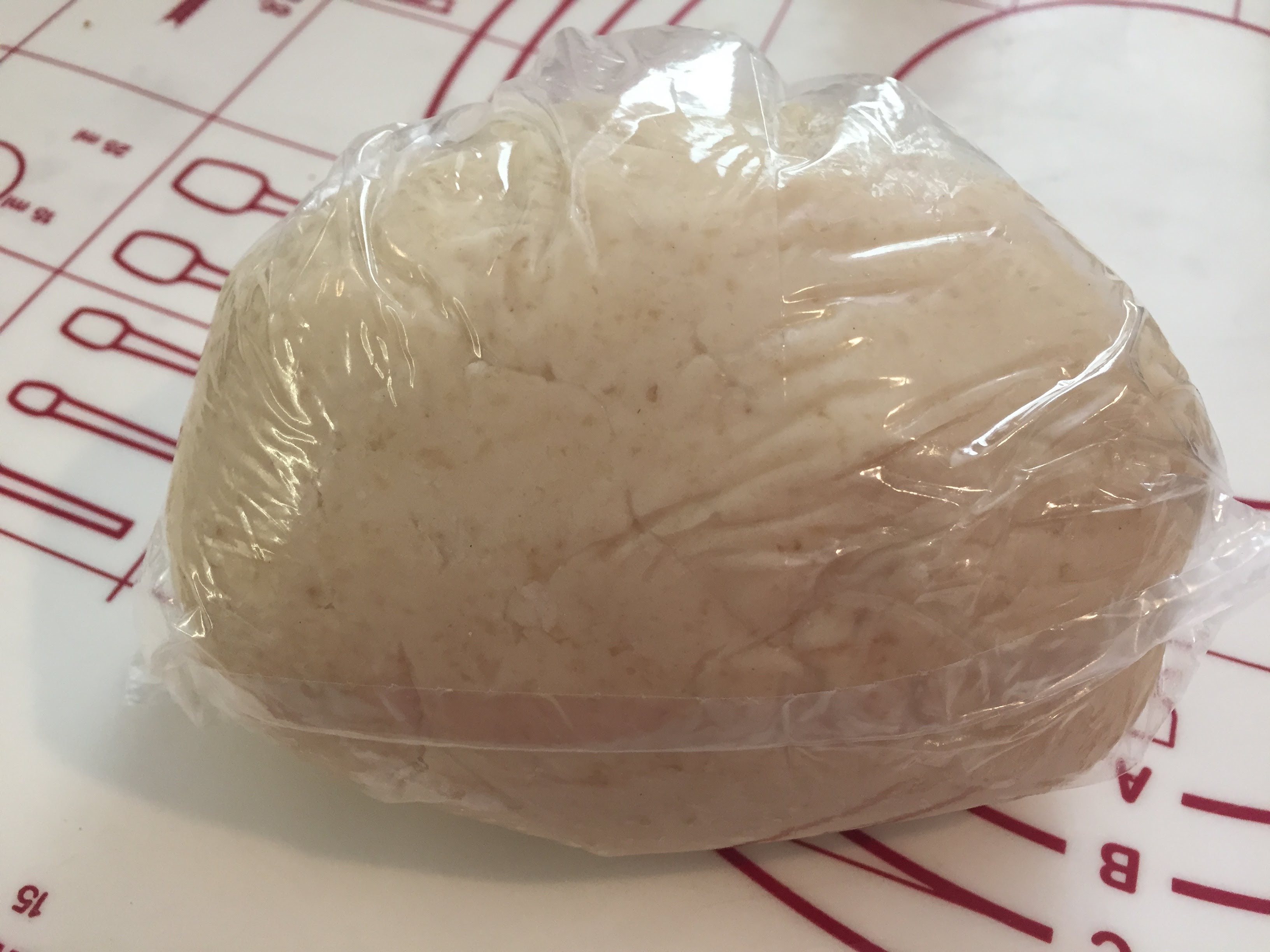 Knead the almond paste mixture over low heat until the sides of the paste pull away from the pot, about 5 minutes. The paste will have the consistency of homemade play dough. Wrap the paste in plastic wrap and refrigerate over night.