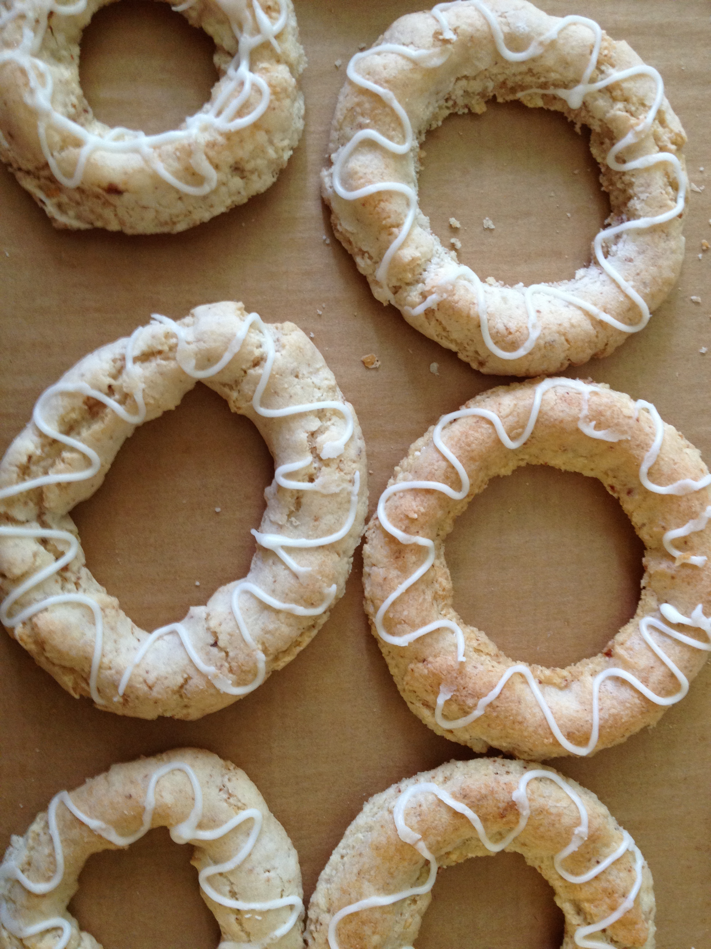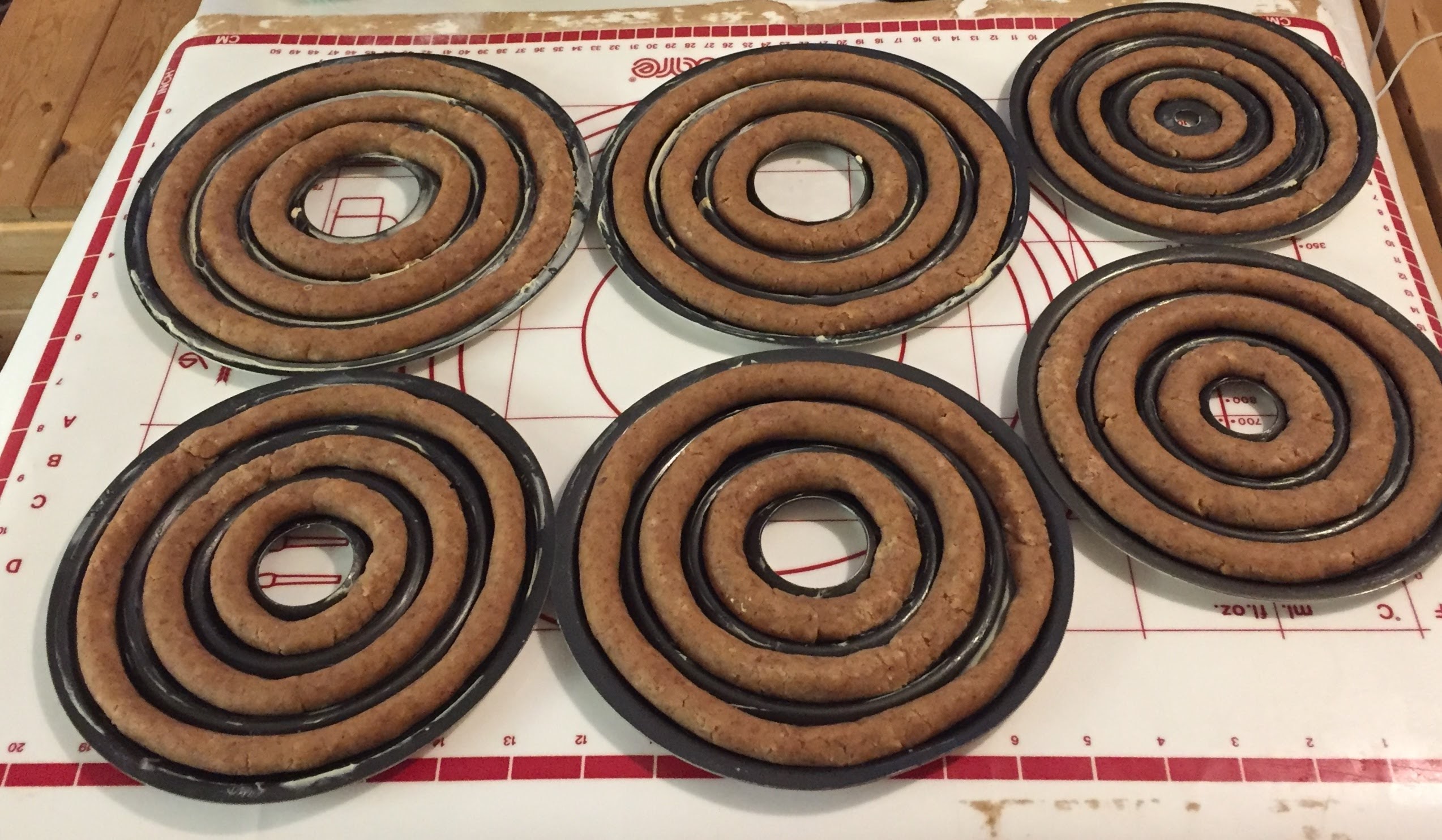 Alternatively, if not using kransekake molds, shape each of the 18 lengths into a ring and place on a parchment- or silpat-lined baking sheet.