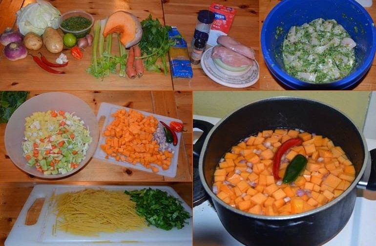 In Haiti Pumpkin Soup is traditionally eaten to celebrate the New Year. It is usually made with beef, but it is just as good made with chicken meat.