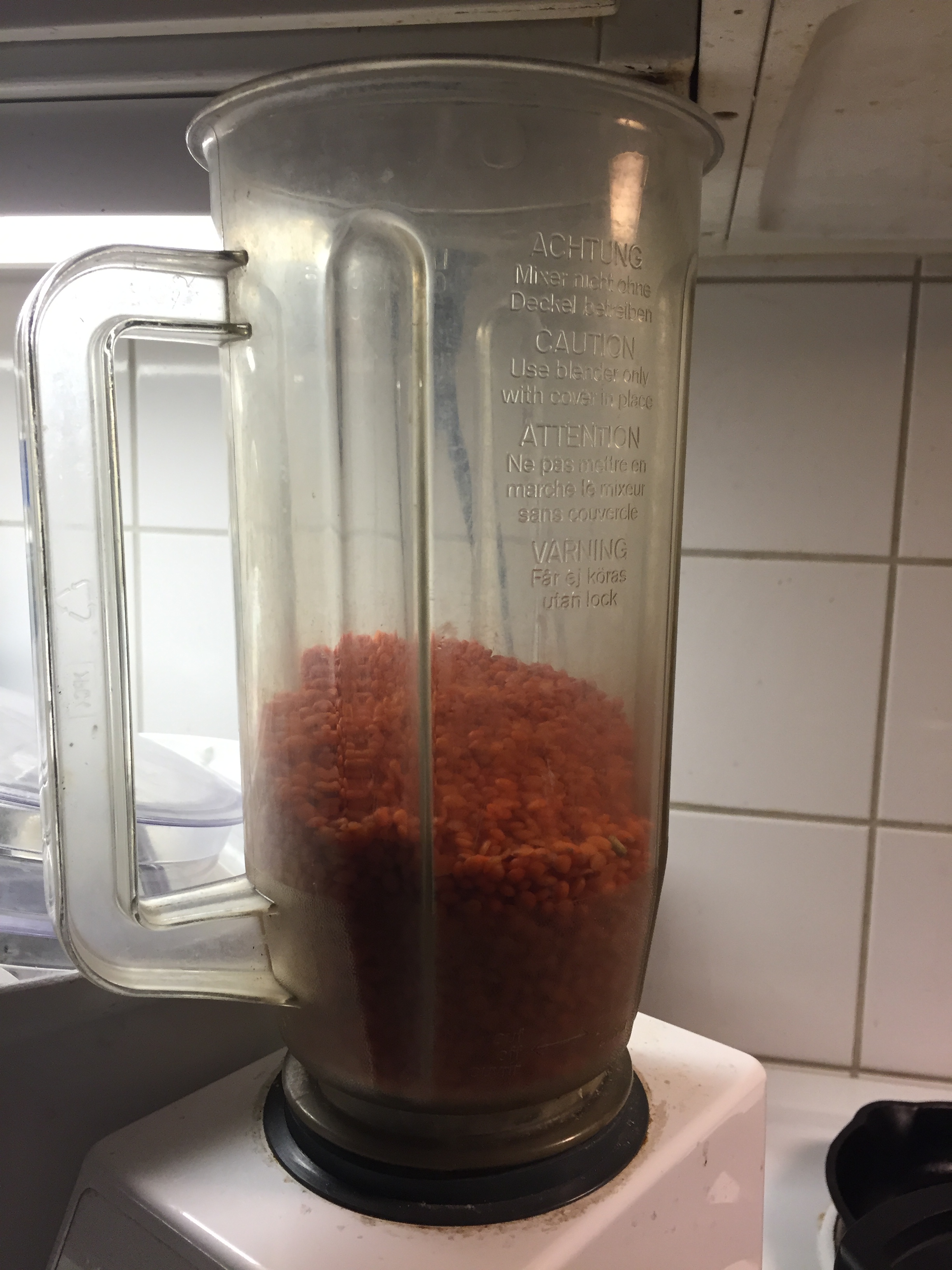 To process the lentils can take some time. Don´t overheat your food processor. Take a break. And continue if necessary. The flour you don´t use store in an airtight container.