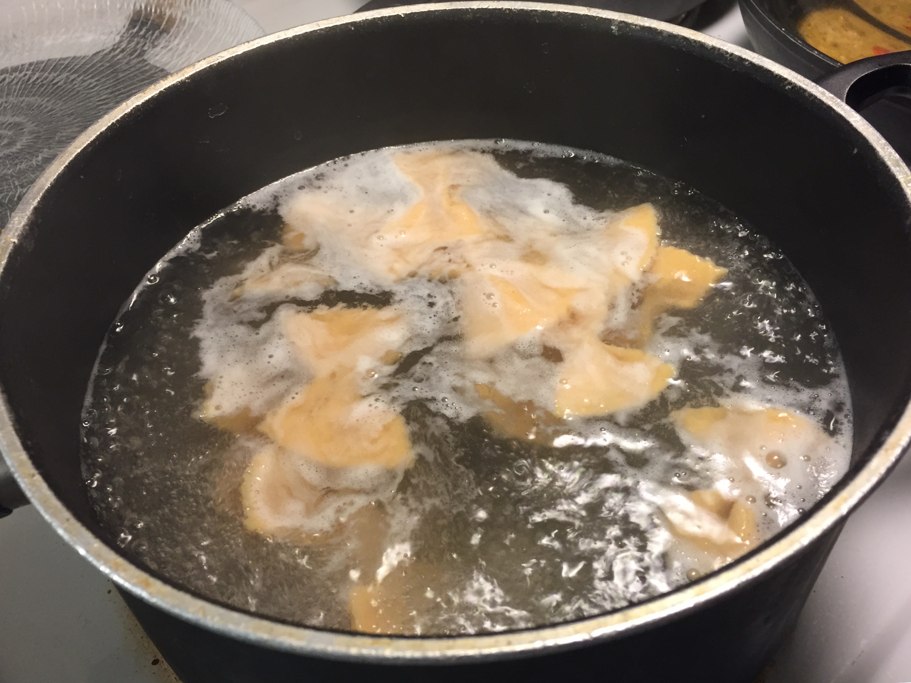 Fill a saucepan with water. Add salt. The water should be salt as seawater. Heat it to the boiling point. Turn the heat down a pit. Add the pasta to the boiling water one batch at the time. Don´t crowd the pan. Let it boil until the pasta float up to the surface and then a couple minutes. Make a taste test to find out how long you think is enough to get it al dente.