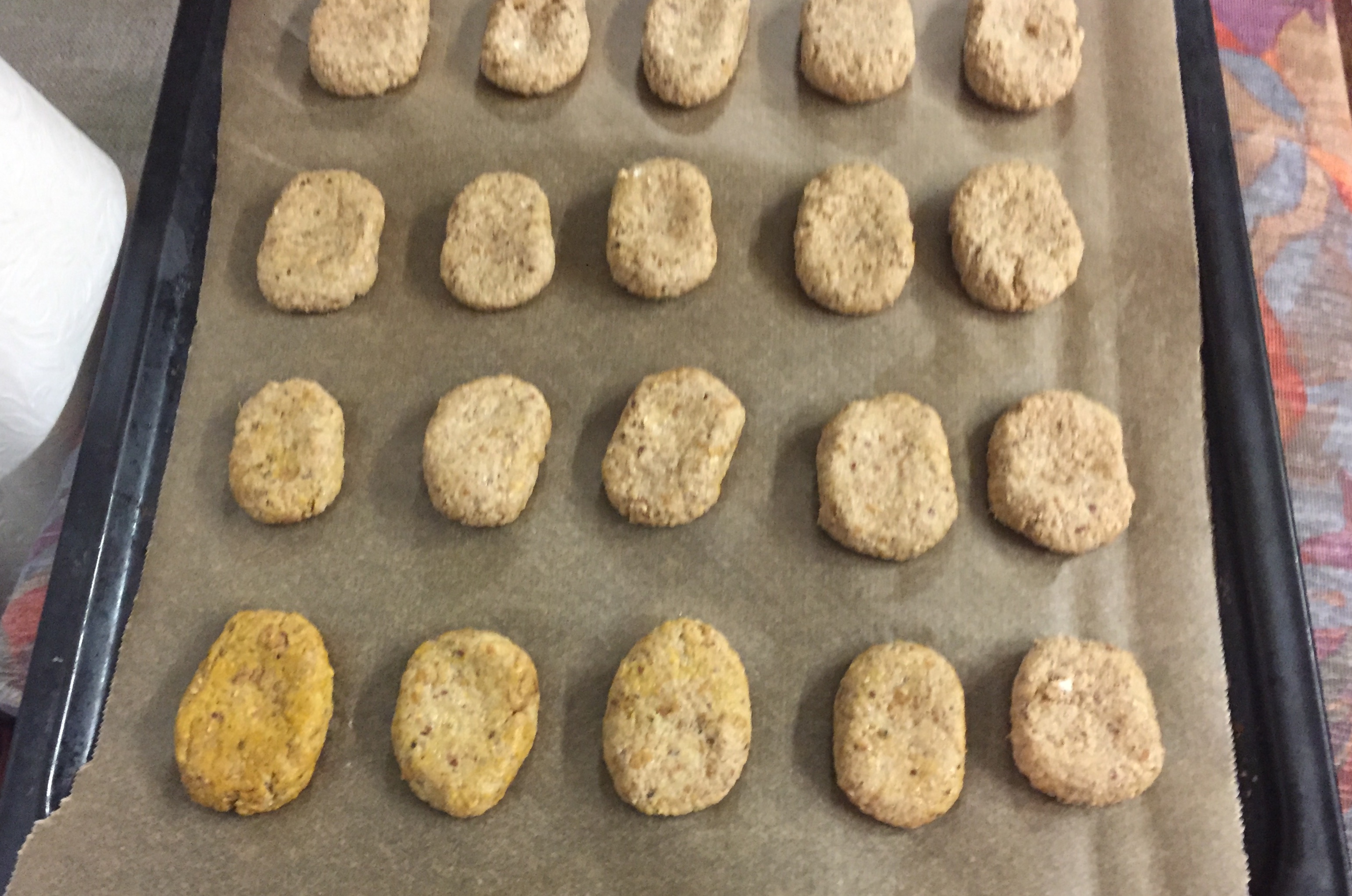 Remove the dough from the blender and bring it together with your hands and form into small nuggets. (If too soft add a little more oatflour).