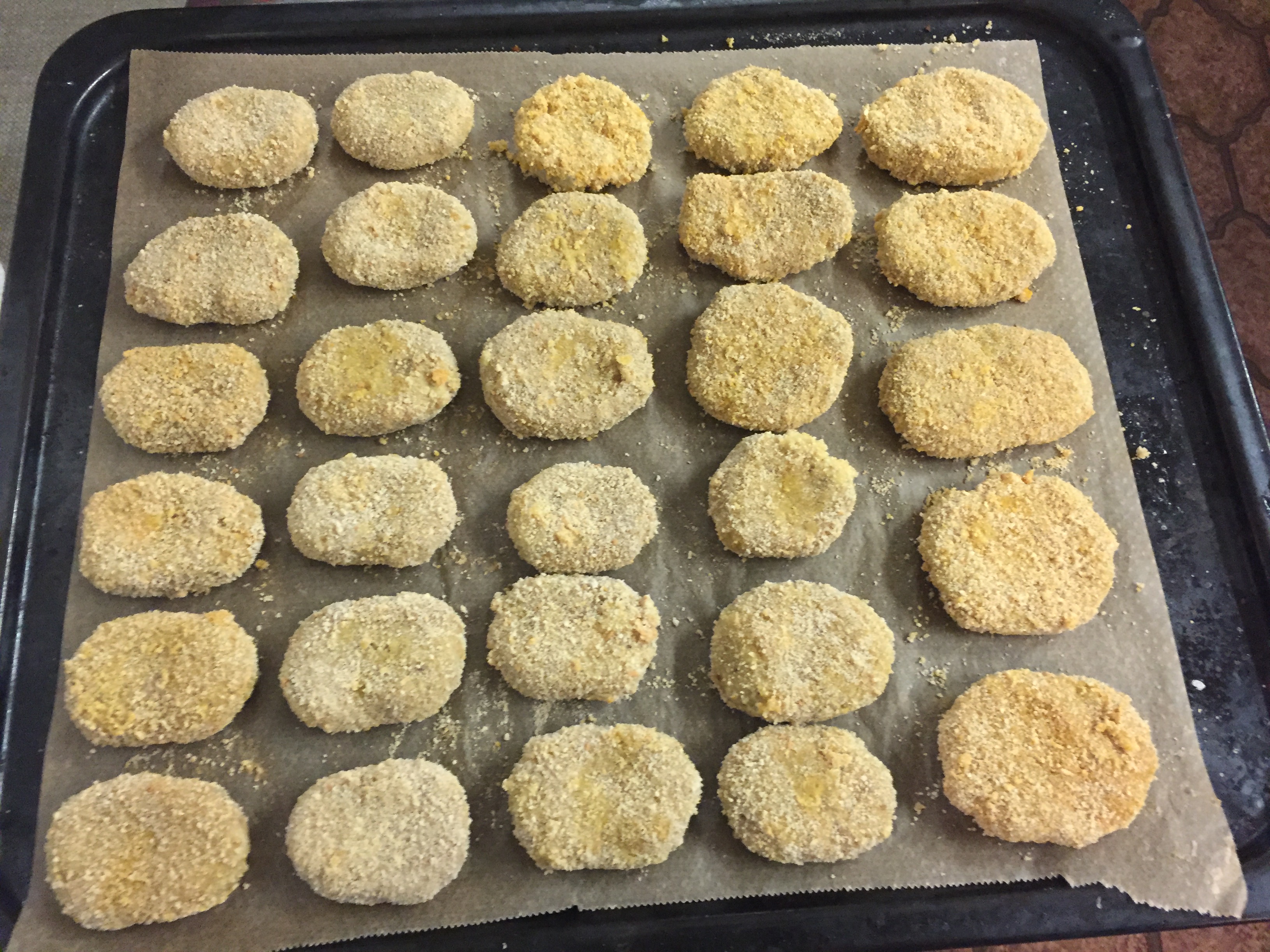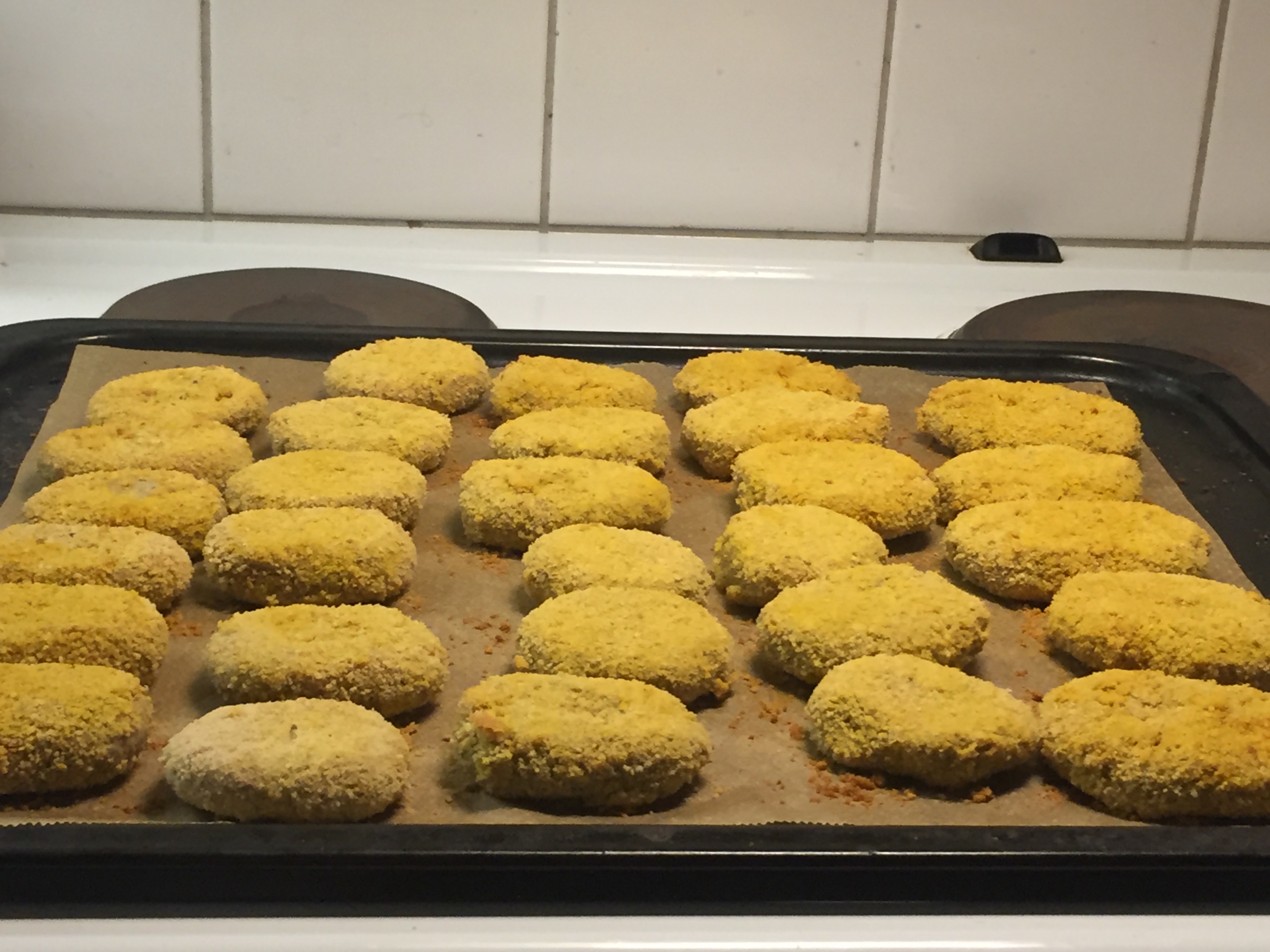 Alternatively you can bake them in the oven like I did here. Preheat oven to 180 Degrees Celsius (350 Fahrenheit). Bake for 10 minutes. Take out and turn the nuggets. Put back in and bake for another ten minutes.