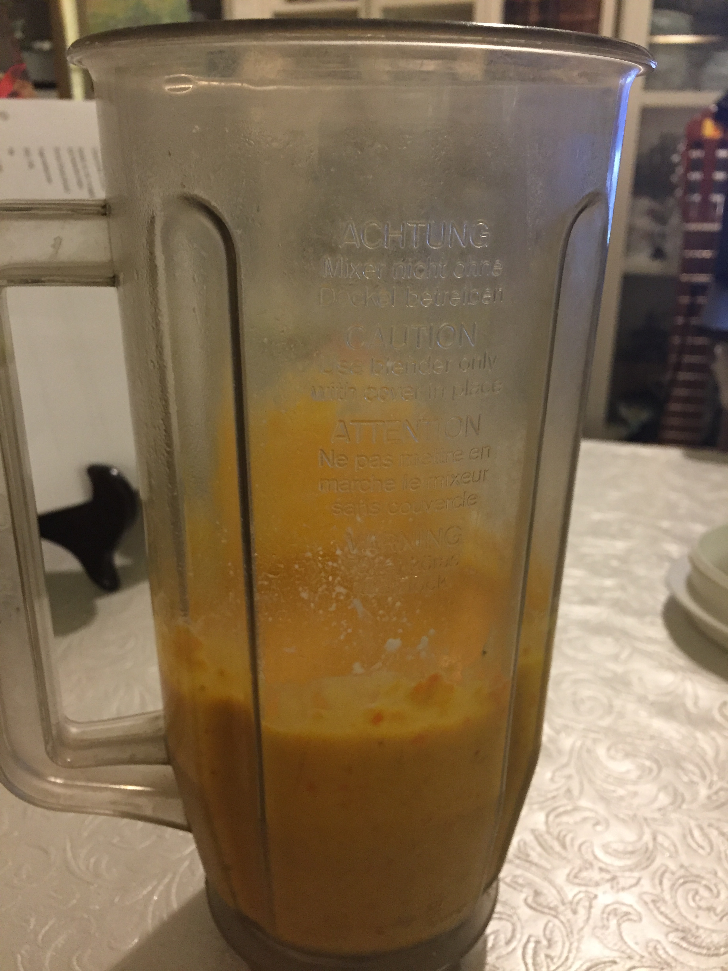 Put the cooked carrots and potatoes in a blender with the rest of the ingredients and whiz until smooth.