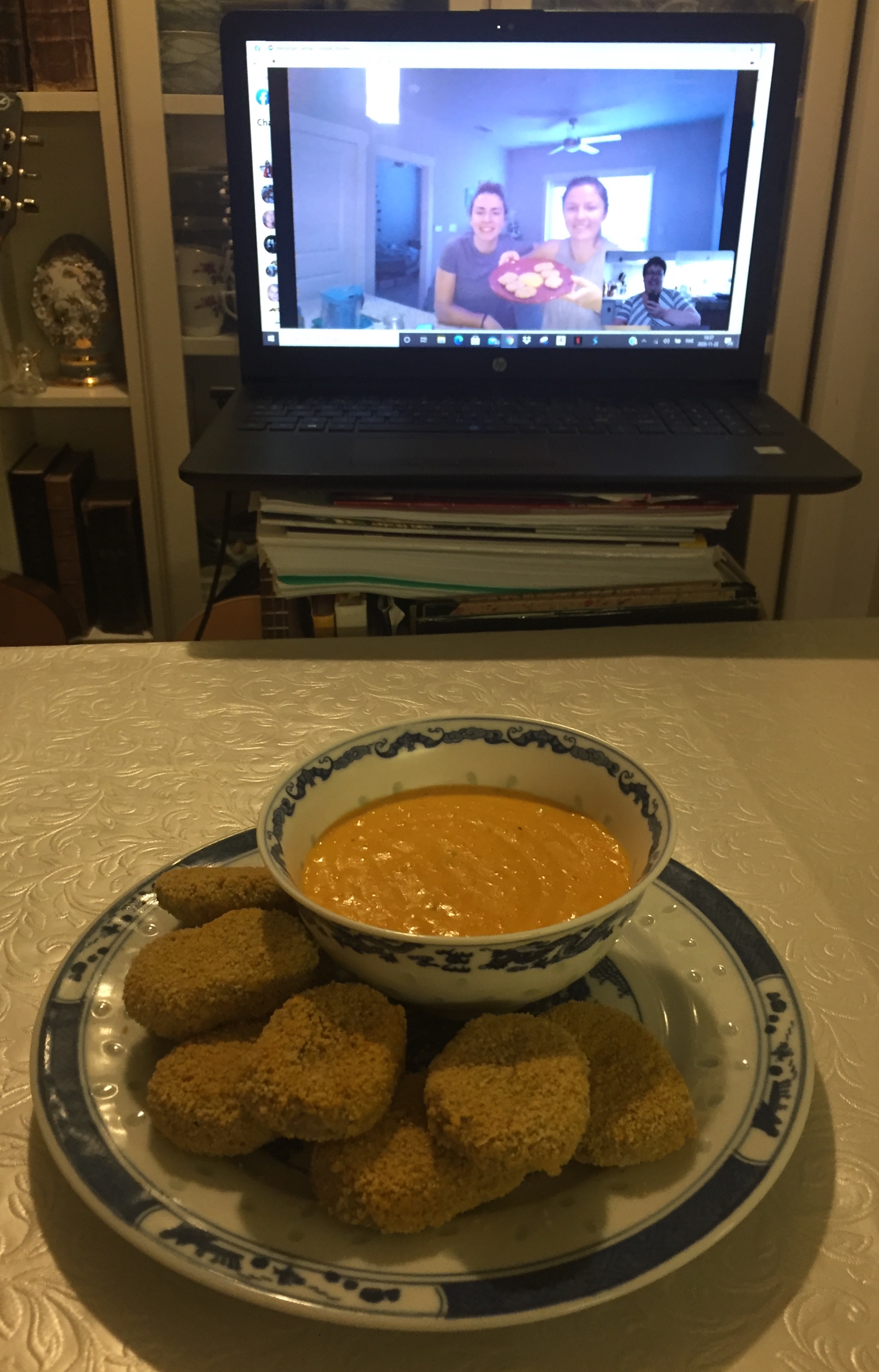 Cookalong with Frida and Ciana in Frisco, Dallas Texas, USA and me here in Sollentuna, Sweden. We made vegan ”Chicken Nuggets” with the best ”Nacho Cheese Dip”. The Nuggets made with Nuts and Oats and the dip from Carrots and potatoes. No meat and no cheese, totally vegan. The dip is amazing!