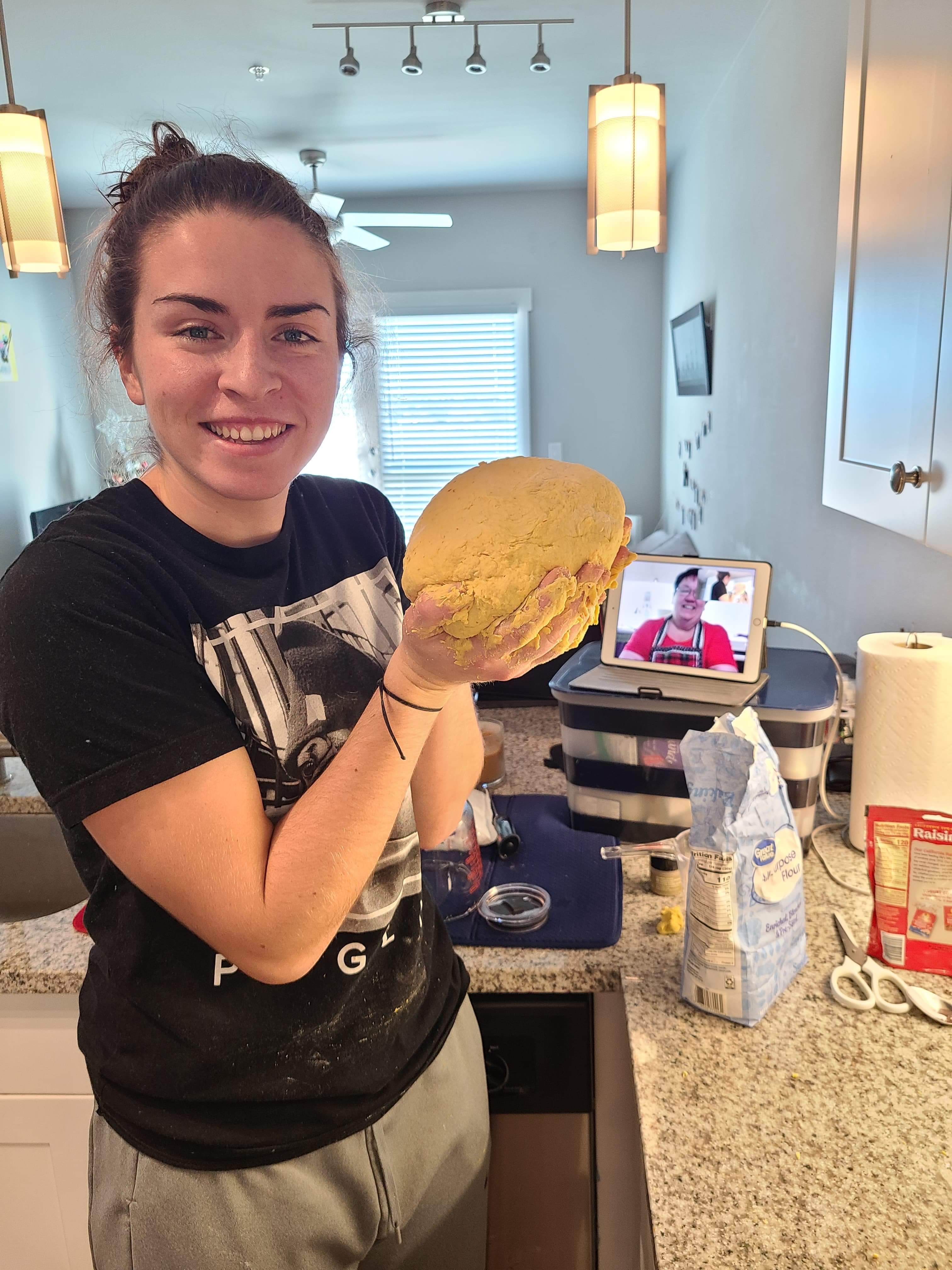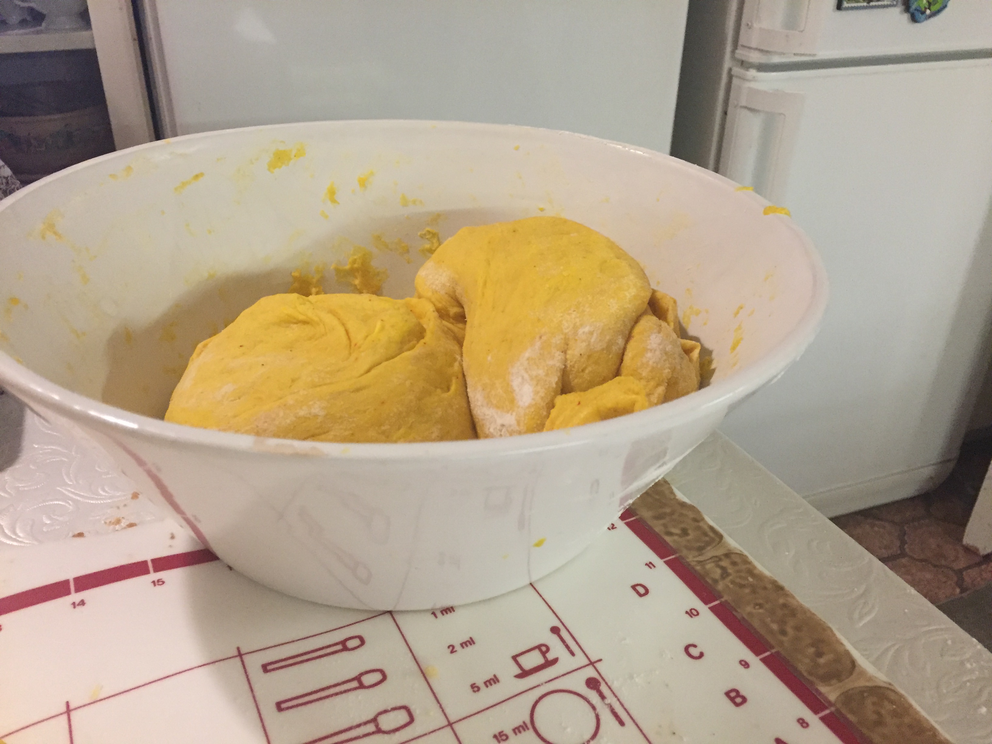 4. Shape the dough into a ball. Put it in a large, lightly oiled bowl, turning to coat, and cover with a kitchen towel. Let rise in a warm place for 30 minutes, or until doubled in bulk.