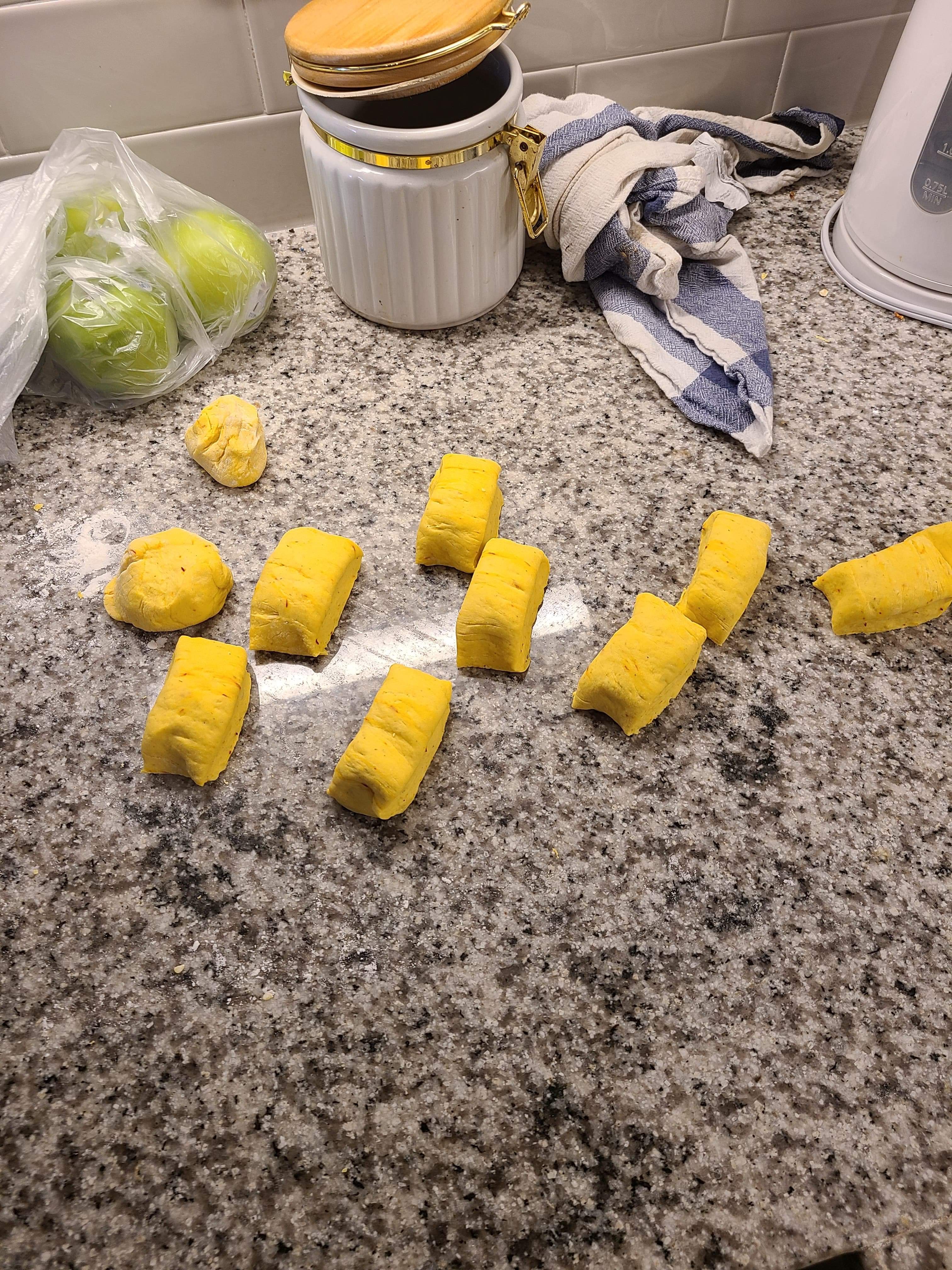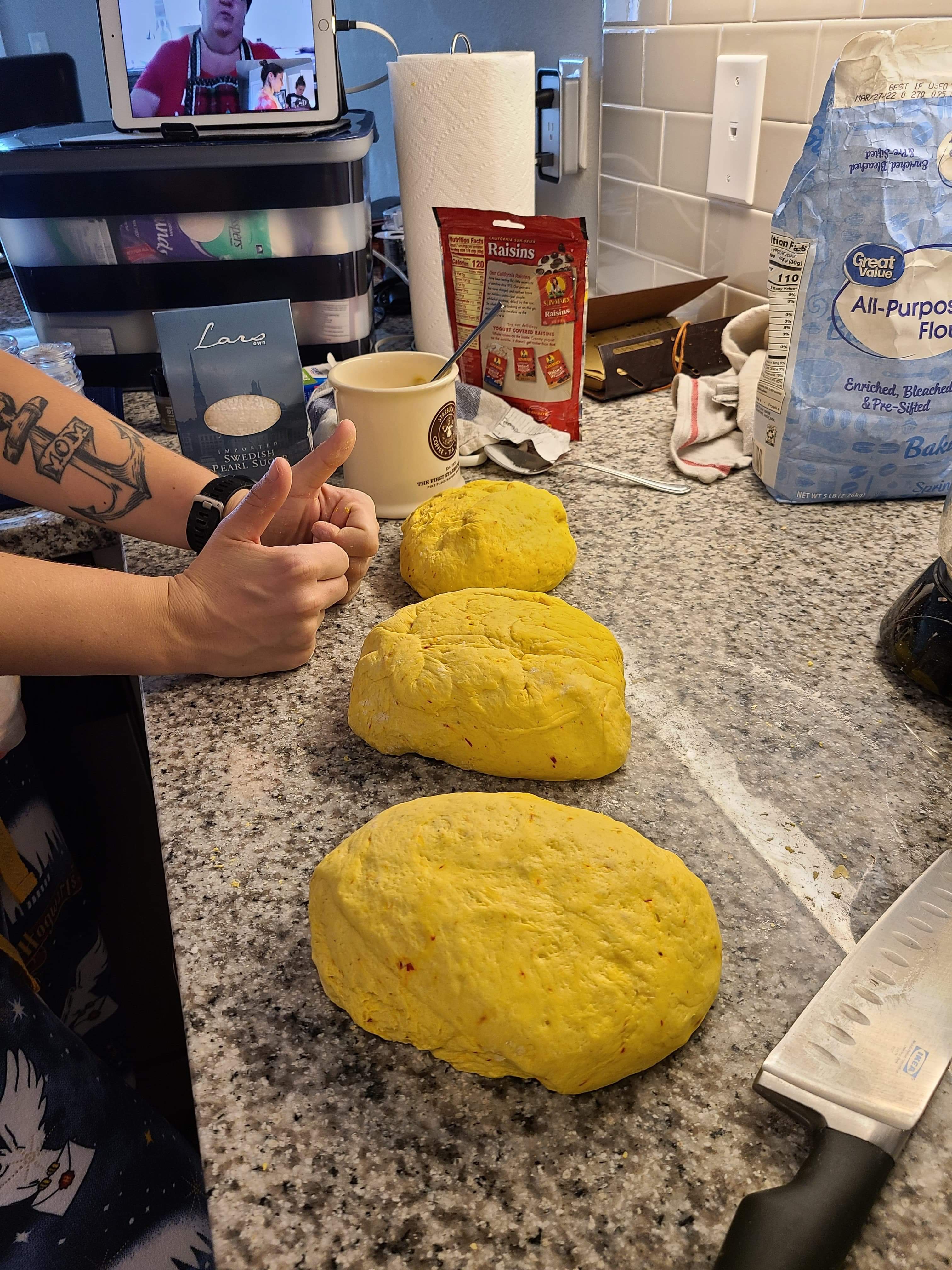 Saffron Rolls is eaten through out the whole Advent time which is from 4 Sundays before Christmas. What is also common is to make the Saffron Cringle or Advent Cringle or Adventskrans as it is called in Swedish and Norwegian. So baking this time I took one part of the dough to make Cringle and 2 parts to make the Luciarolls.