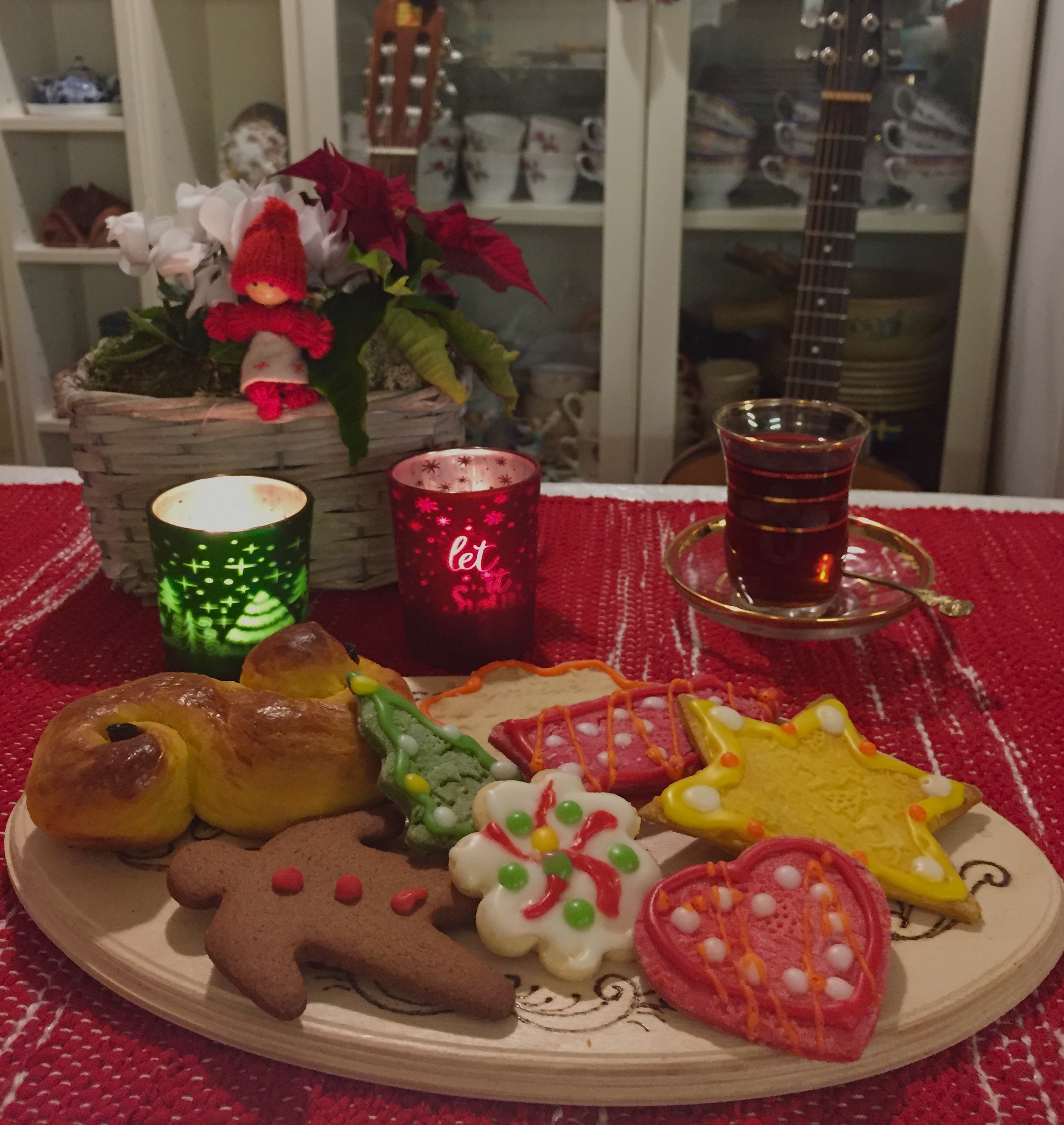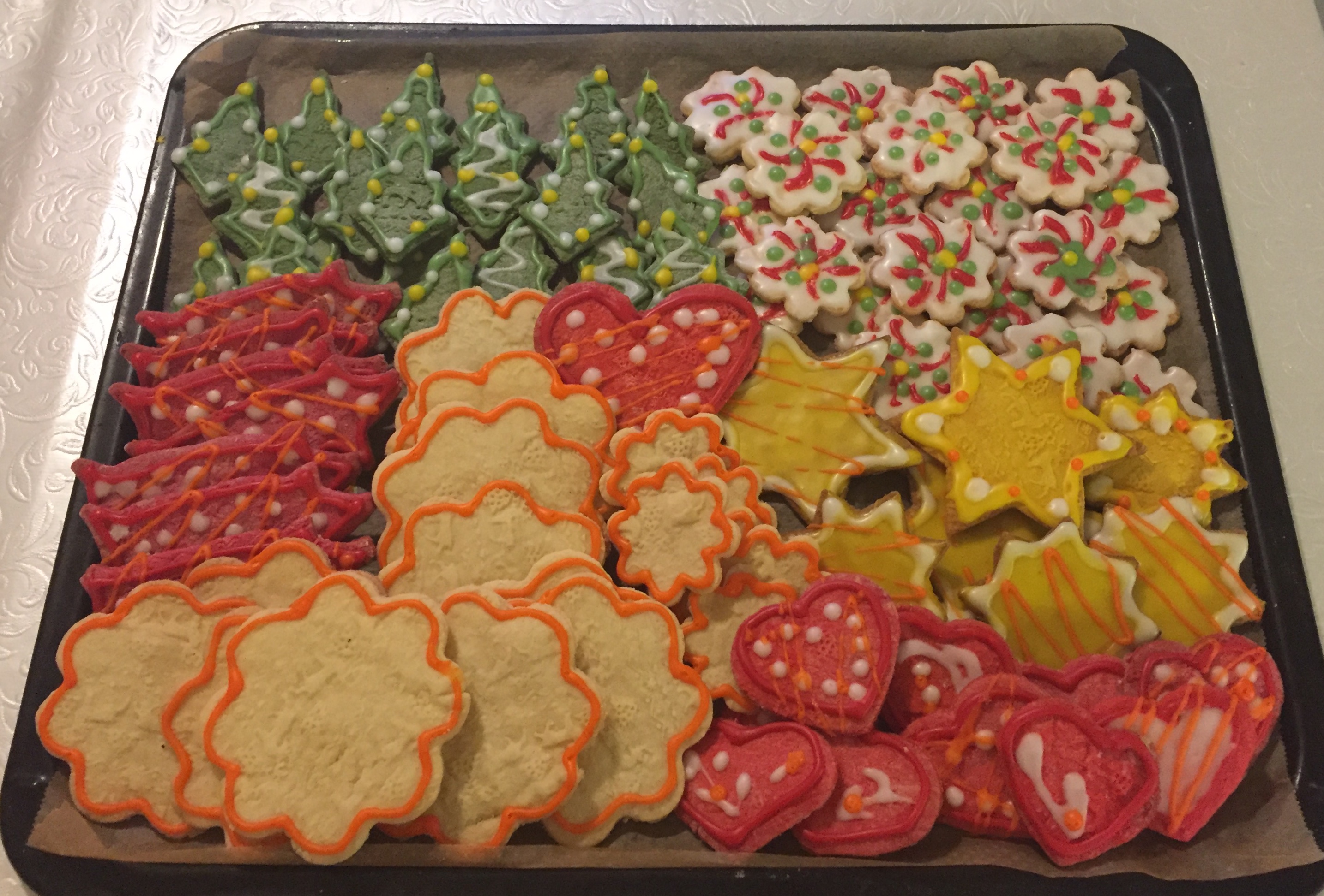 Last Friday night I was exhausted from work and needed to clear my head with something creative. So what is better than making Sugarcookies, American Christmas Cookies with decoration. I both made the dough, baked and decorated before sleeping. So honestly it was getting towards morning hours when I went to bed. I made them with a twist. Tried out my rolling pin with reindeers and Christmas trees and even coloring the dough in different colors, not only the frosting. American Christmas Cookies are so fun and festive to decorate. You can just let your creativity go wild.