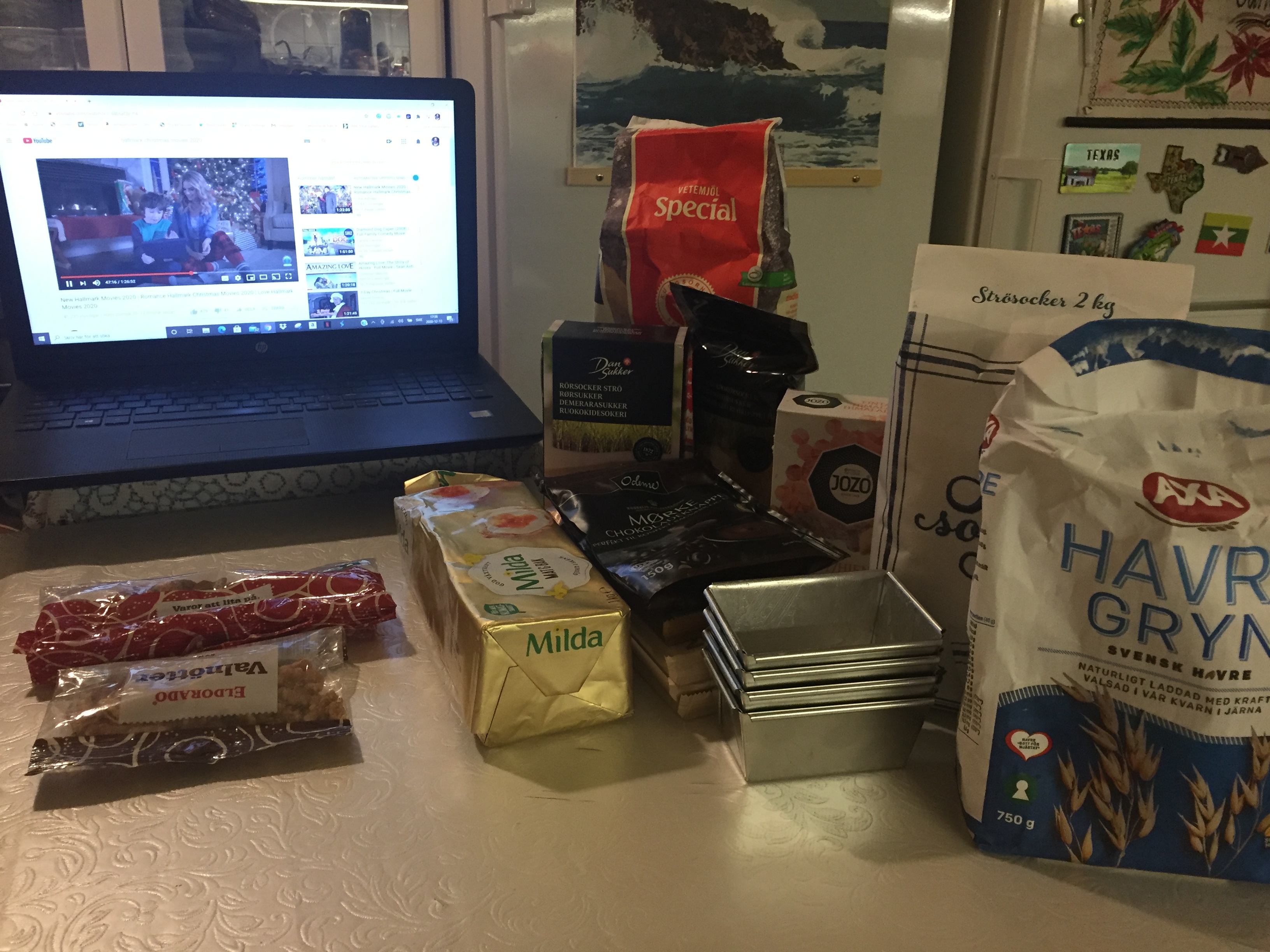 I had a Cookalong with Frida and Ciana Sunday night. They in Frisco, Dallas Texas, USA and me here in Sollentuna, Sweden. This time we made Swedish and Irish Christmas Candy and Christmas Cookies. We made Irish Lace Cookies with Chocolate filling. This is a traditional cookie in Sweden also and we call them Knäckflarn and fill them with whipped cream. We made Swedish Chocolate Caramel and Christmas Candy with Cornflakes.