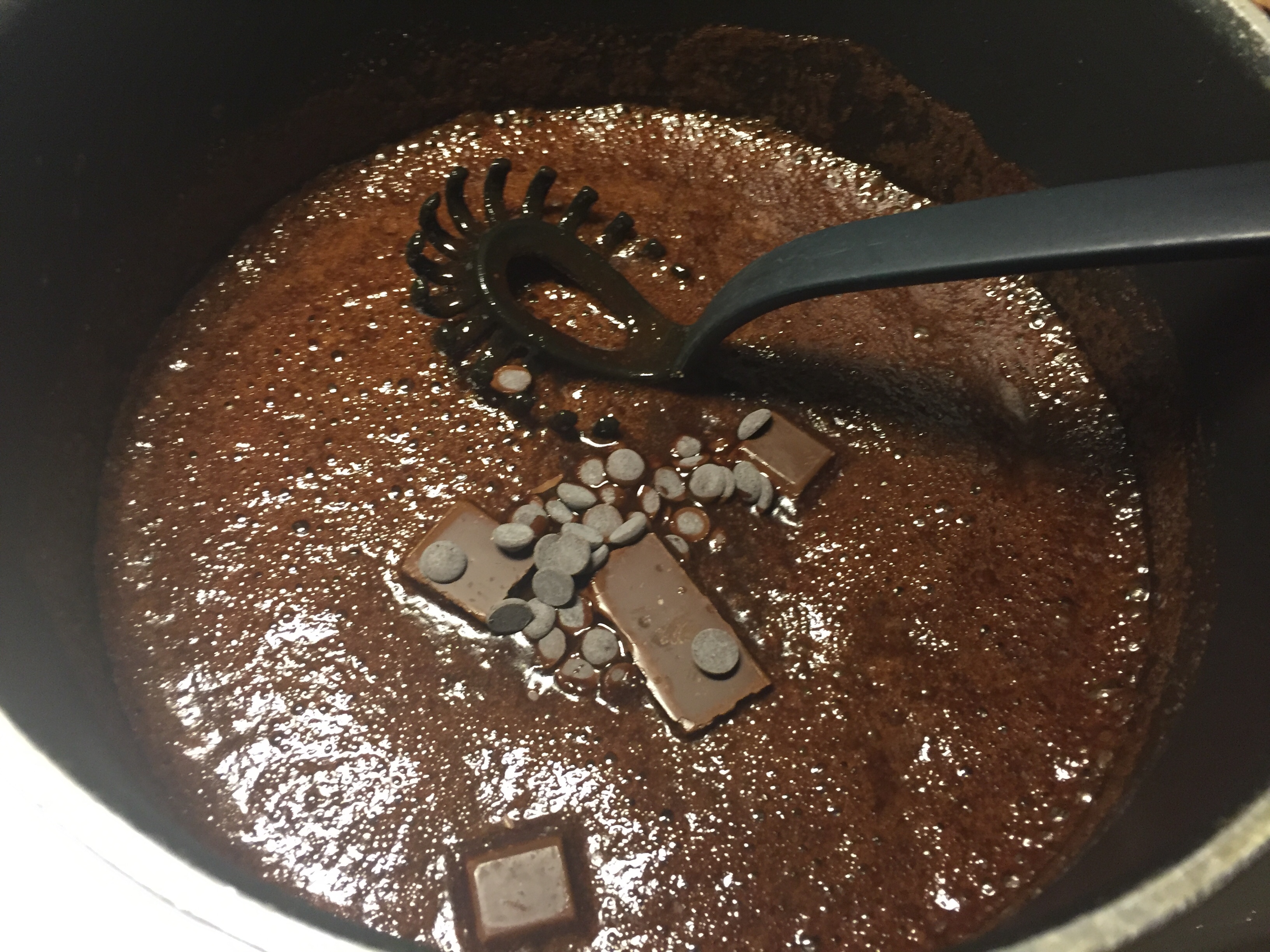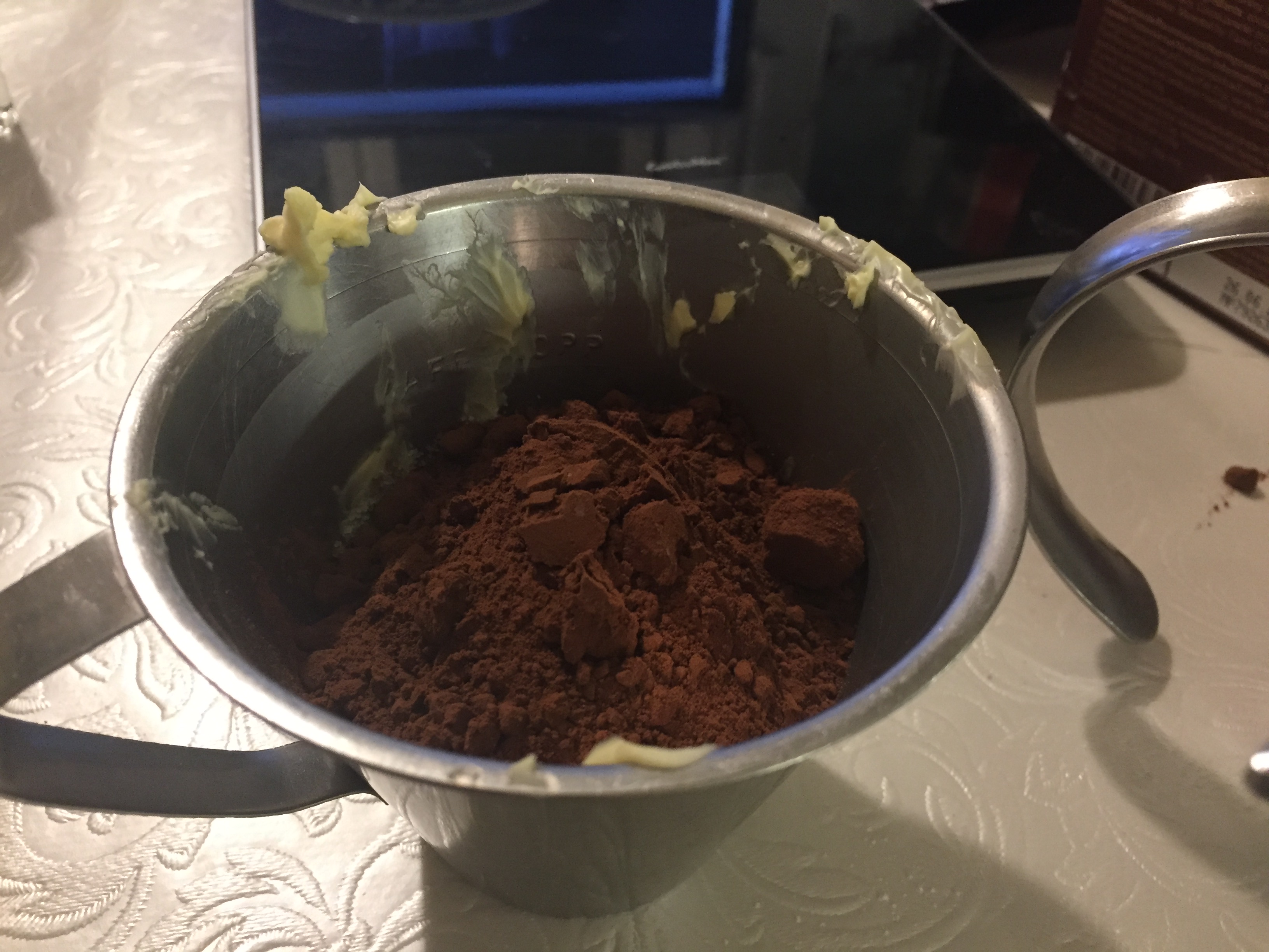 Boil without a lid, about 15 minutes in a wide saucepan or 30 minutes in a saucepan smaller bottom. Stir occasionally until the batter holds a ball test. (The ball test: Pour a few drops of the batter into ice-cold water and roll into one a ball. The bullet should become firm to hard. If you have a thermometer heat the mixture to 127 Celsius Degrees). When done remove from heat and mix in the cocoa.