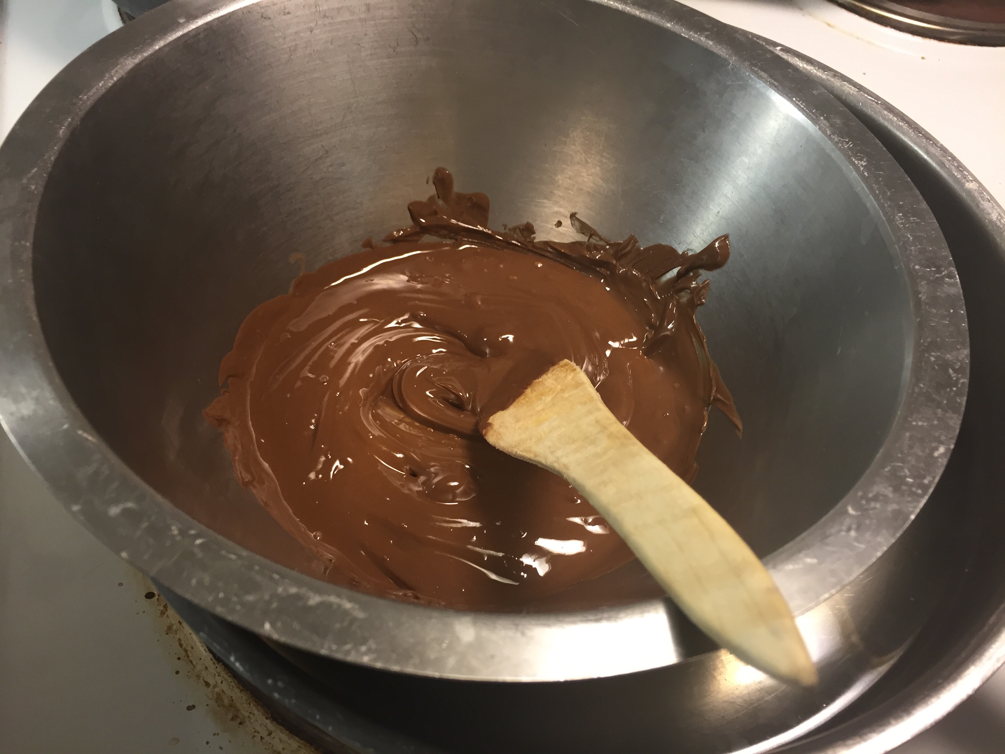 For filling melt chocolate in a bowl in a pan with boiling water. Do not get any water in the chocolate!