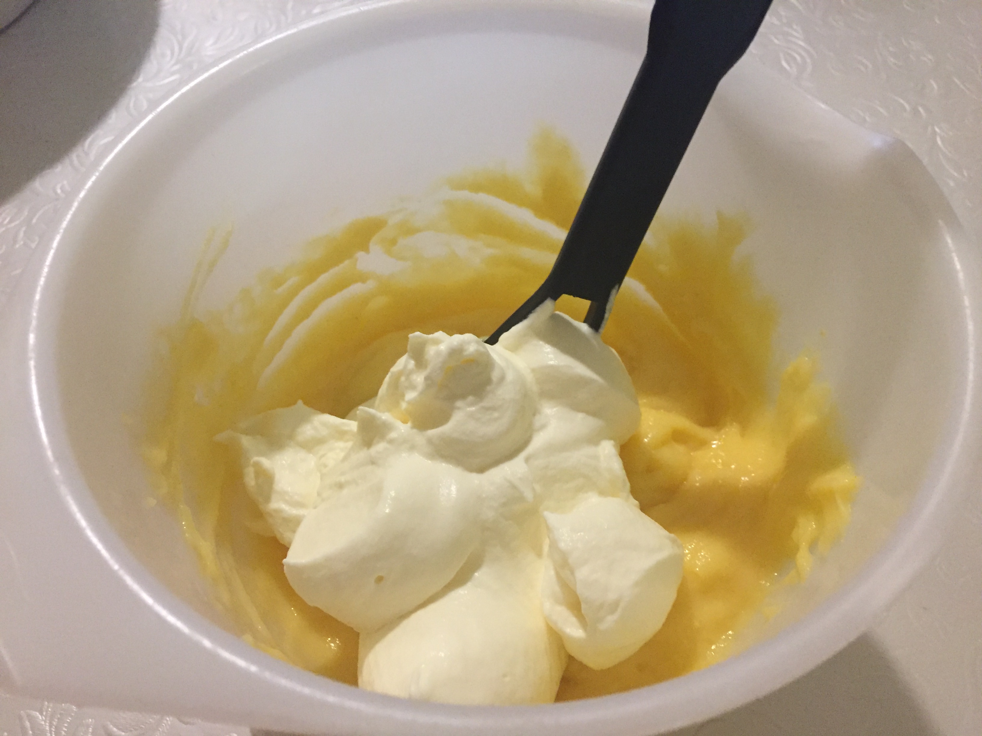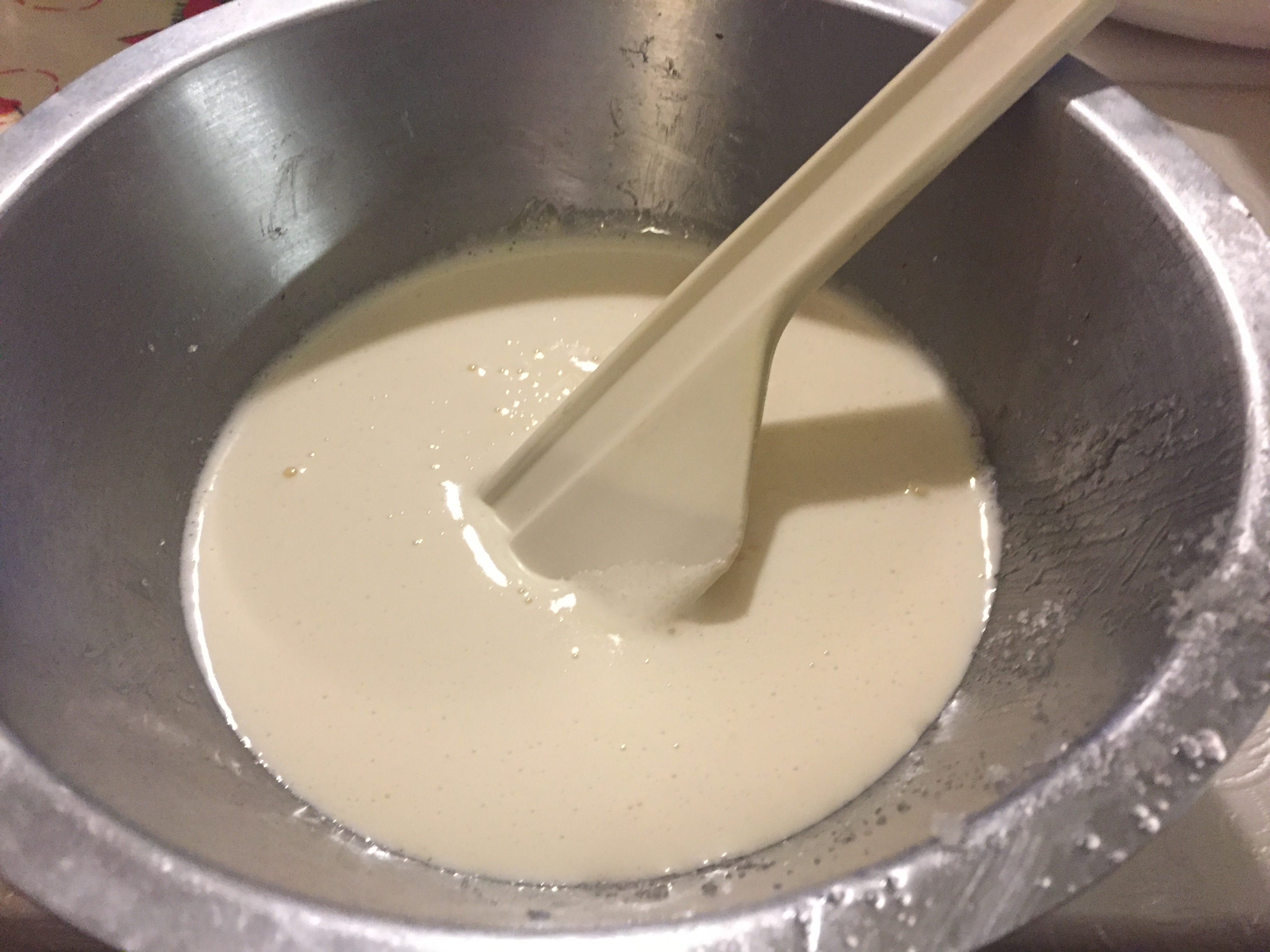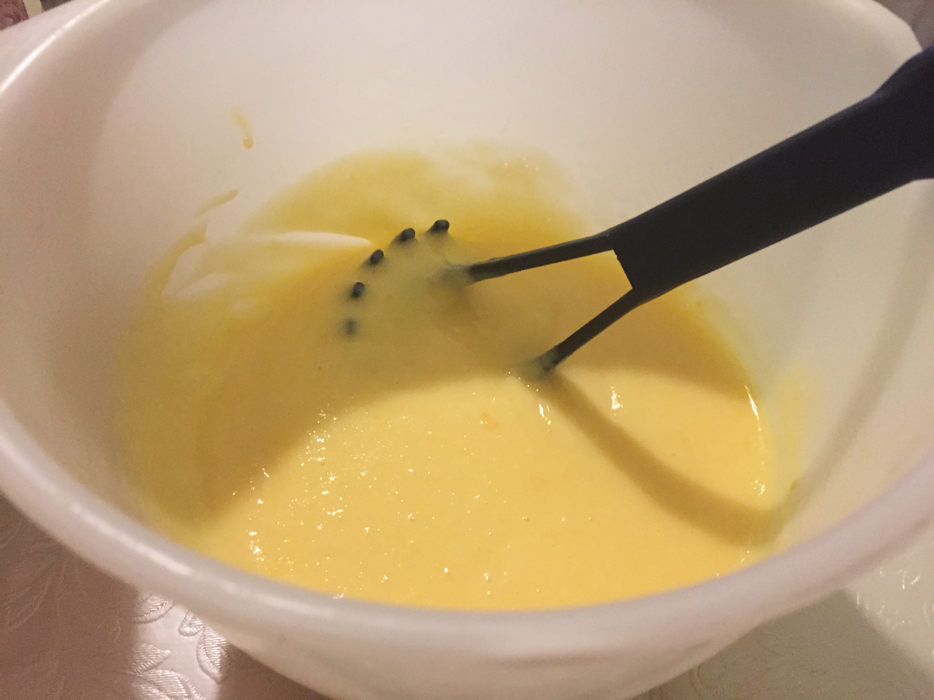 This recipe is for one normal size round cake, however since I am alone and cannot eat a whole big cake I made it into two small one´s that I can freeze and take out even if I am not going to have a party.