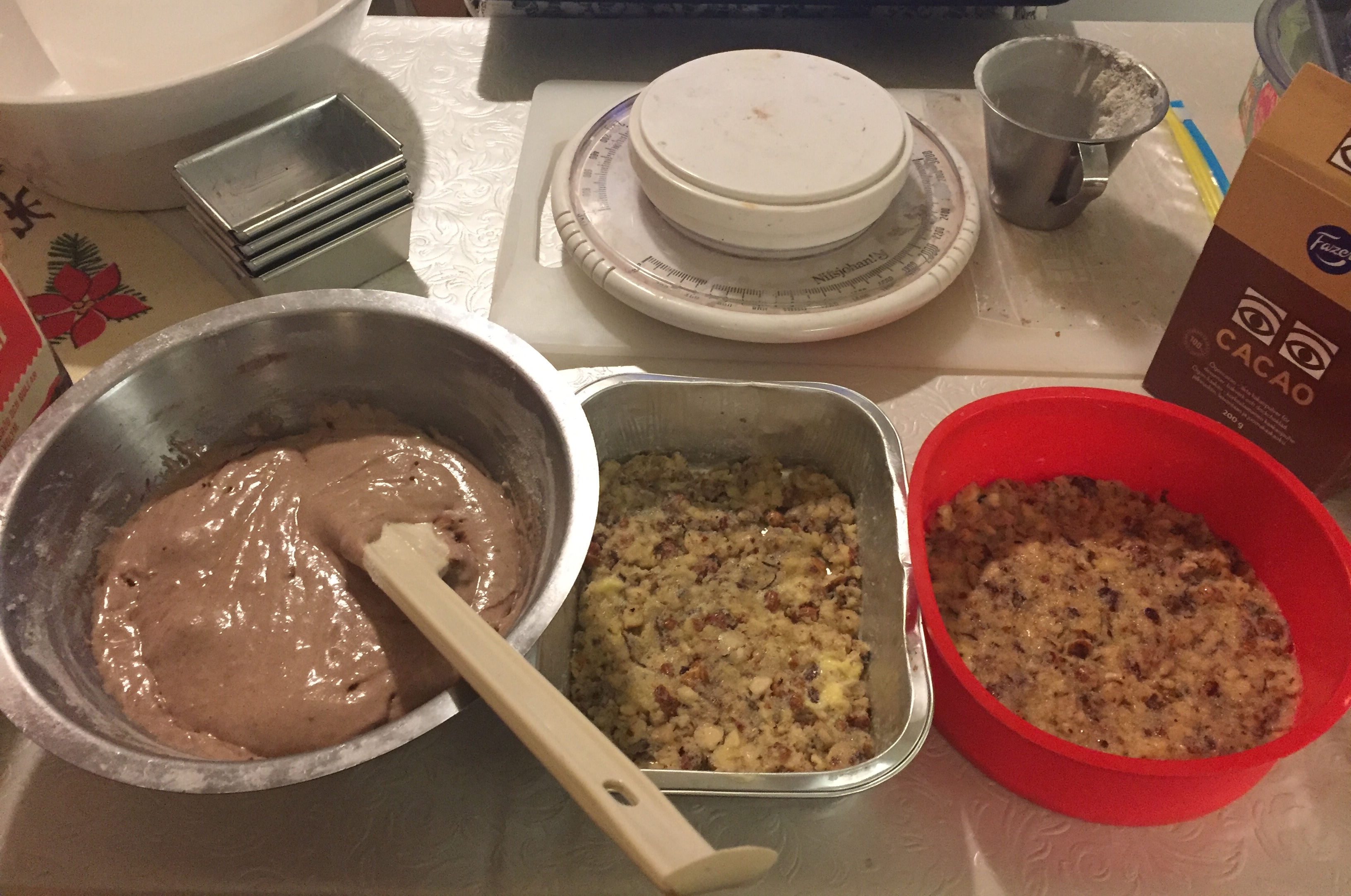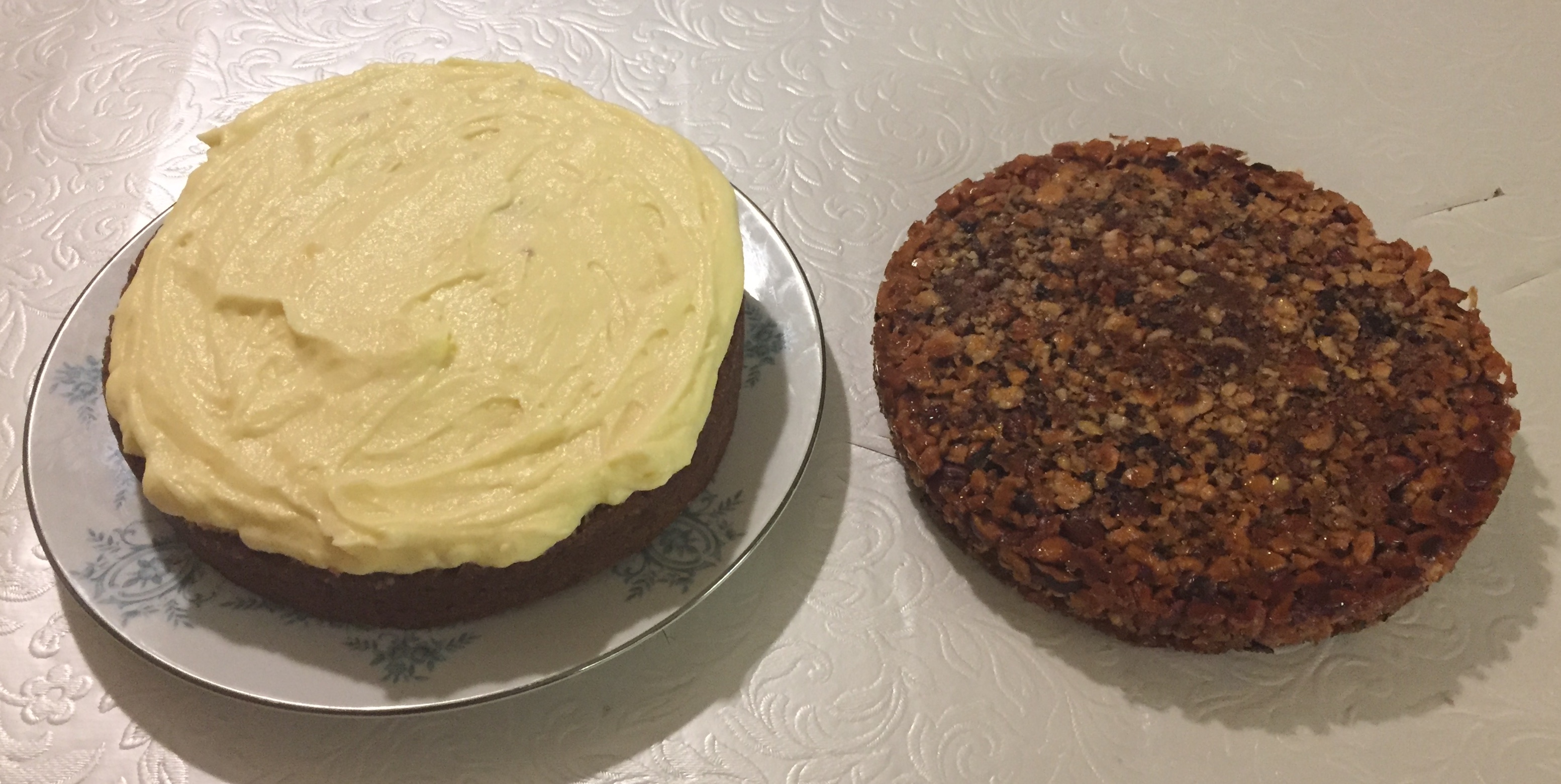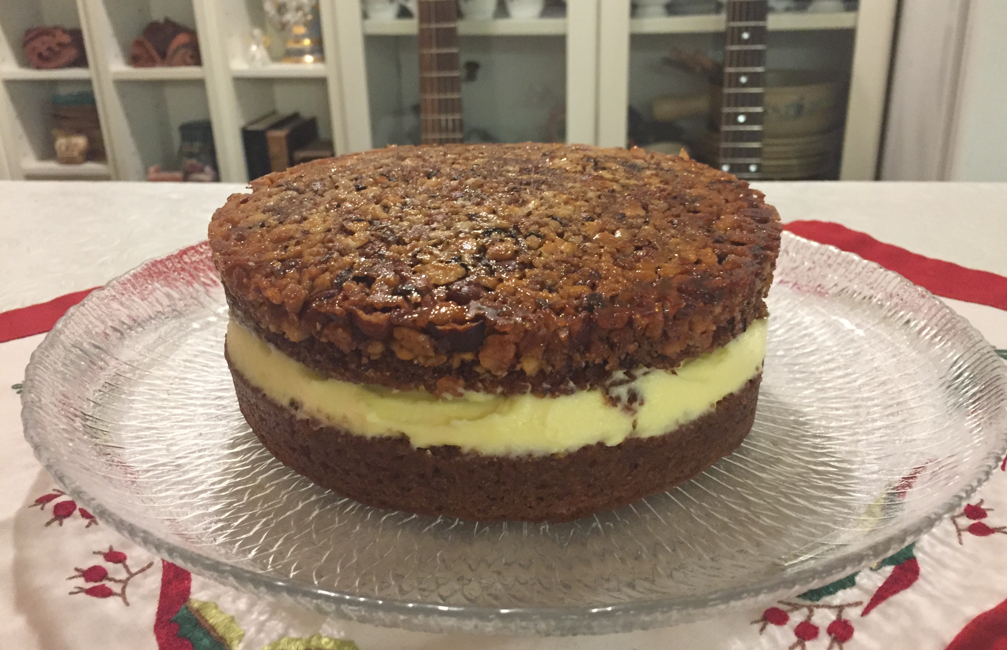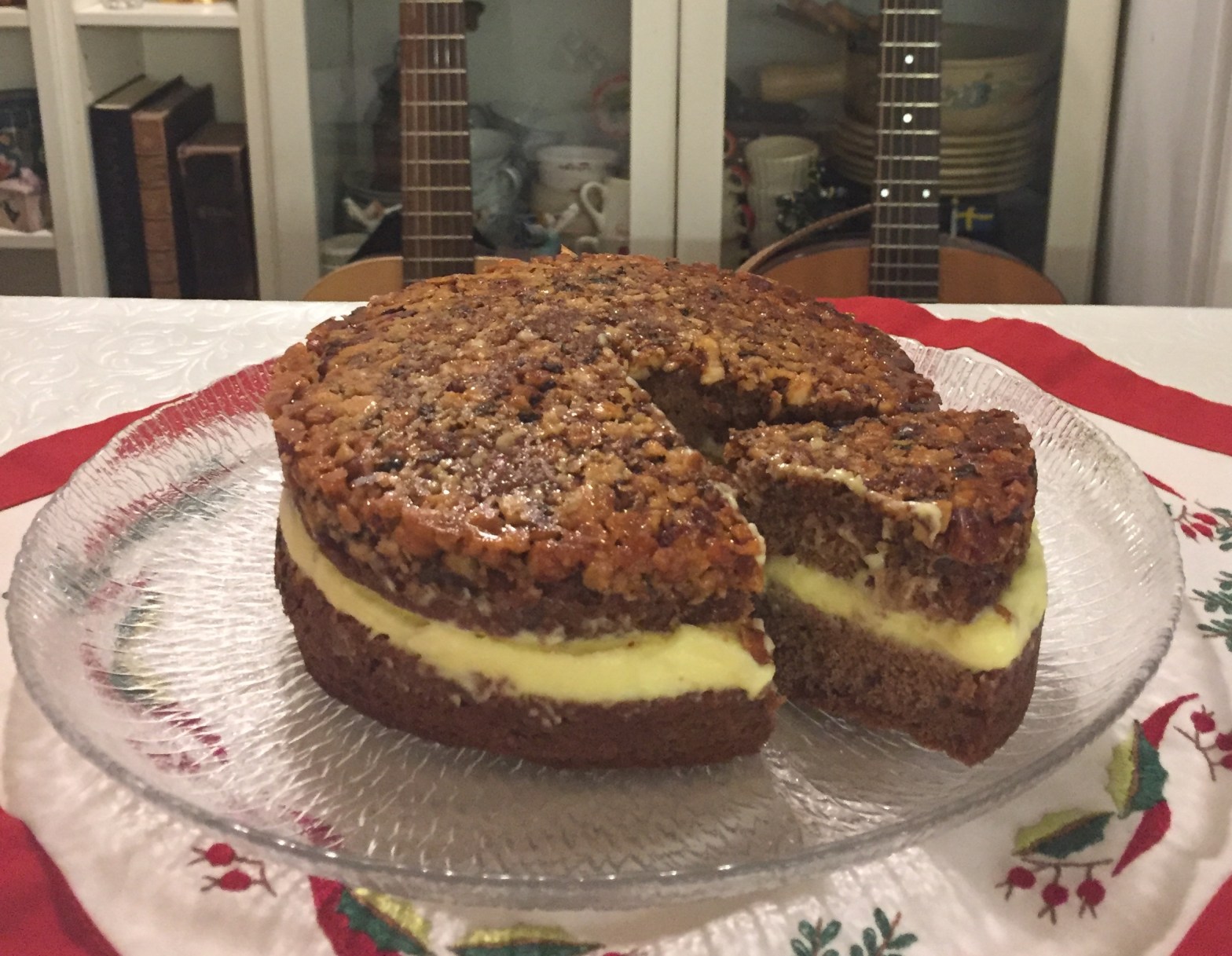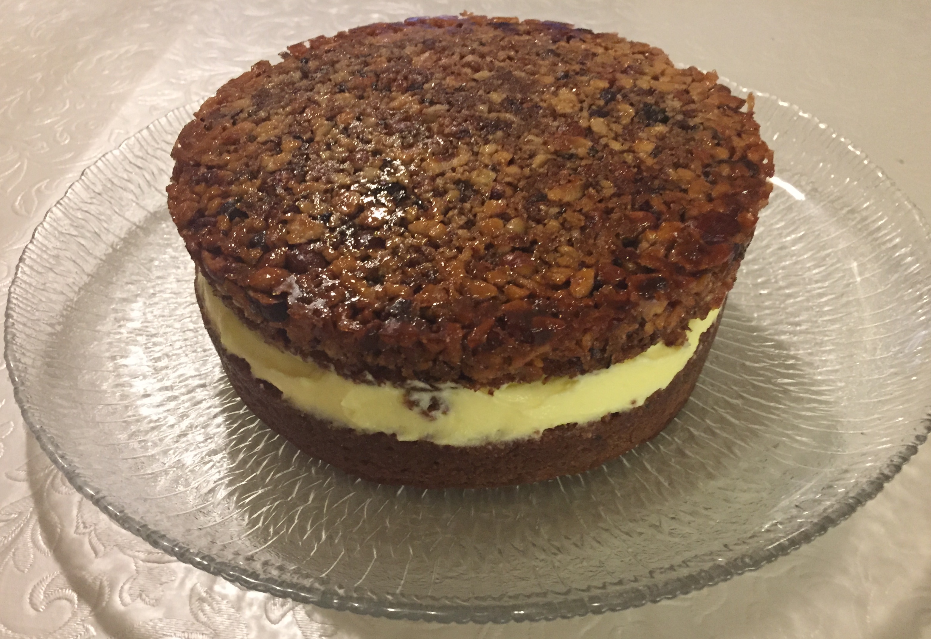 The 11th December was mom’s birthday. So I wanted to make a cake she used to make. I had not made this one in such a long time. I was looking through her recipes and remembered I loved this cake. It is a Chocolate cake with hazelnut caramel topping and vanilla cream filling. The cake is baked up-side-down. The bottom filling made with hazelnuts, butter and sugar becomes the top.