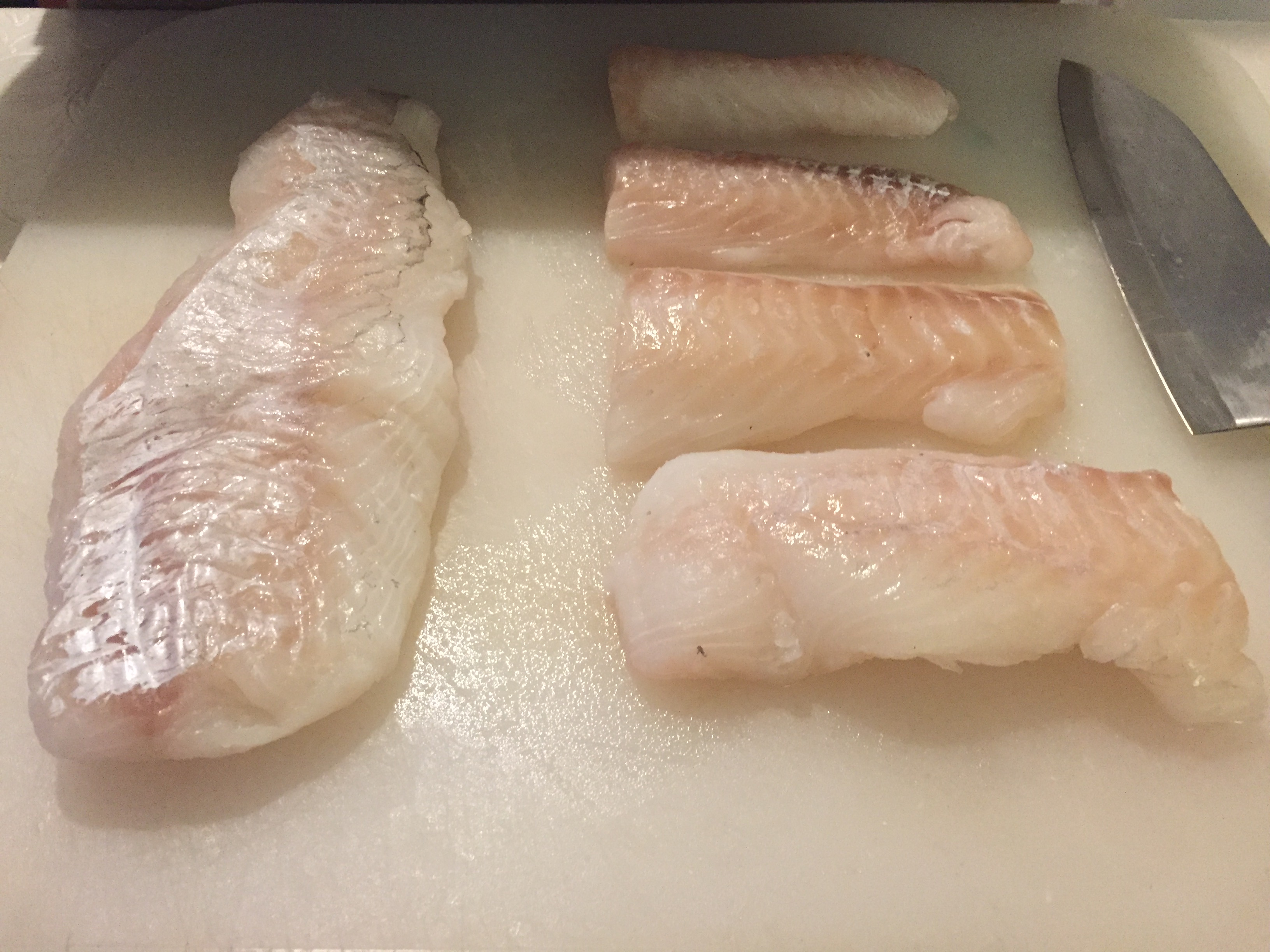- 400 g Pollock file cut in about 3 – 4 strips (I used Pollock since that is what I had. You can use Cod or other fish of course)