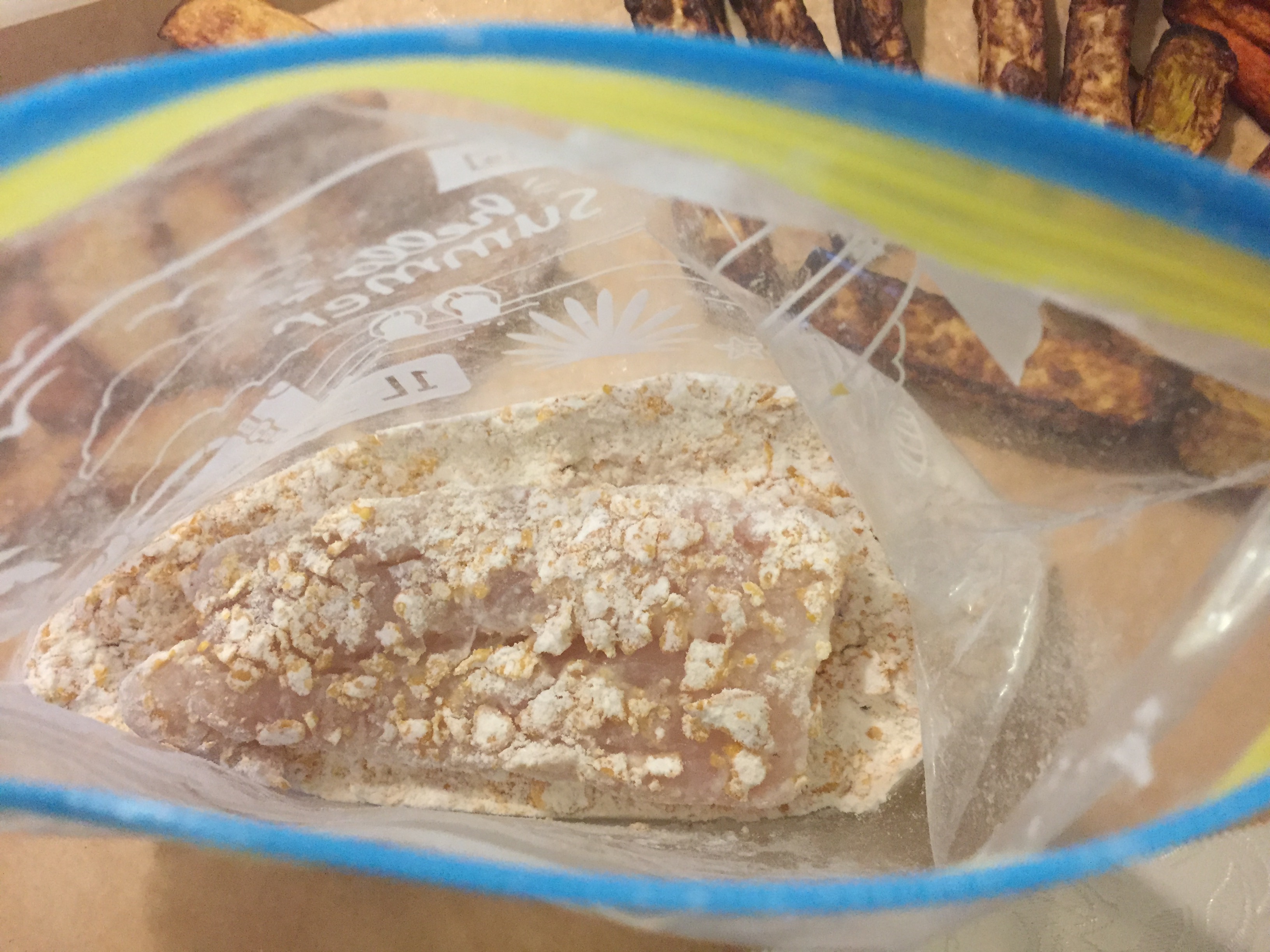 Mix flowers, crushed cornflakes and seasoning mix in a ziplockbag or another bowl.