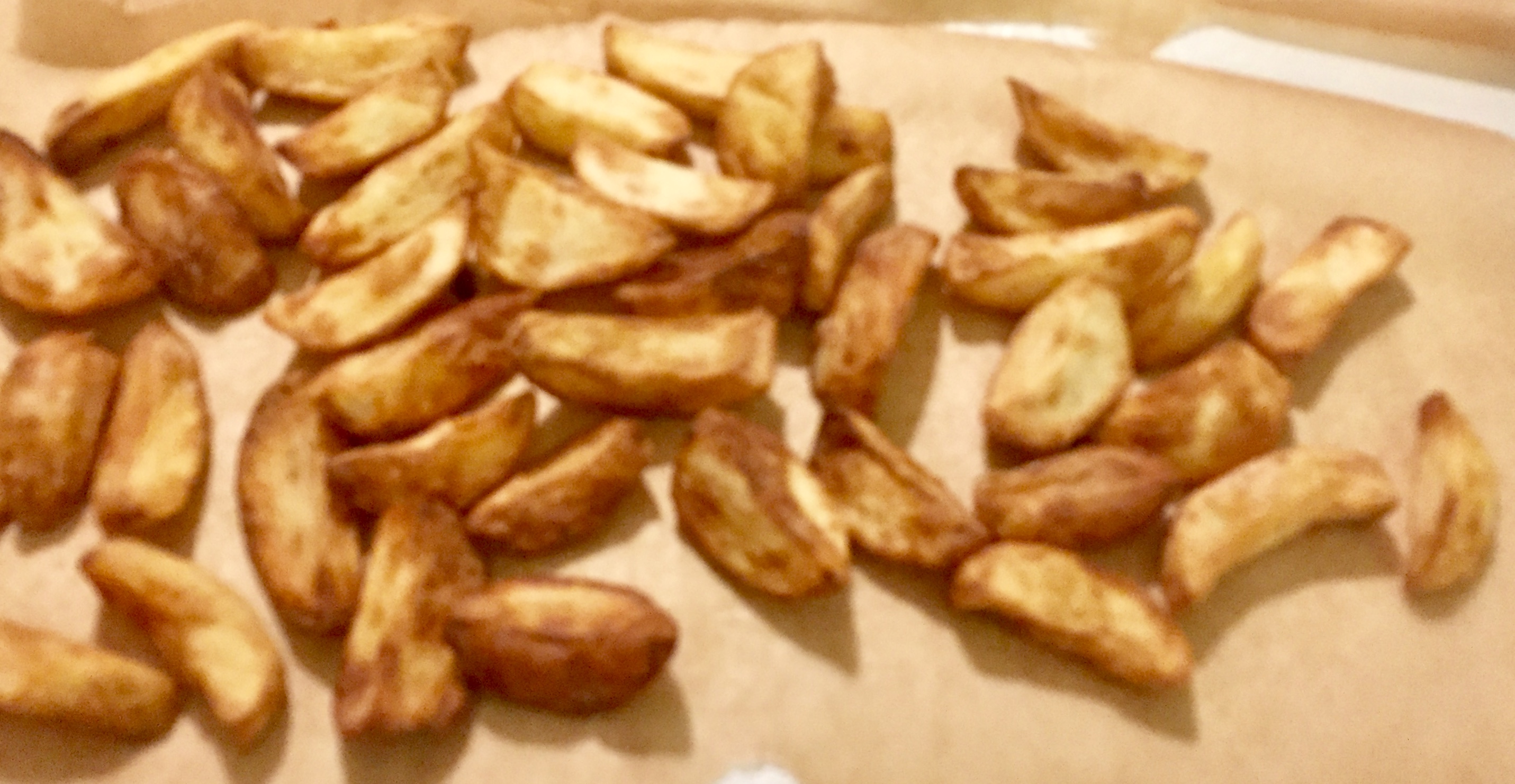 Cook about 10 minutes stir and toss and put back in for another 10 minutes, until crispy and golden brown. If you need more time, toss again and give more time. I watched mine carefully to not burn them and even tossed a little more often at the end. I think I gave them another 5 minutes.