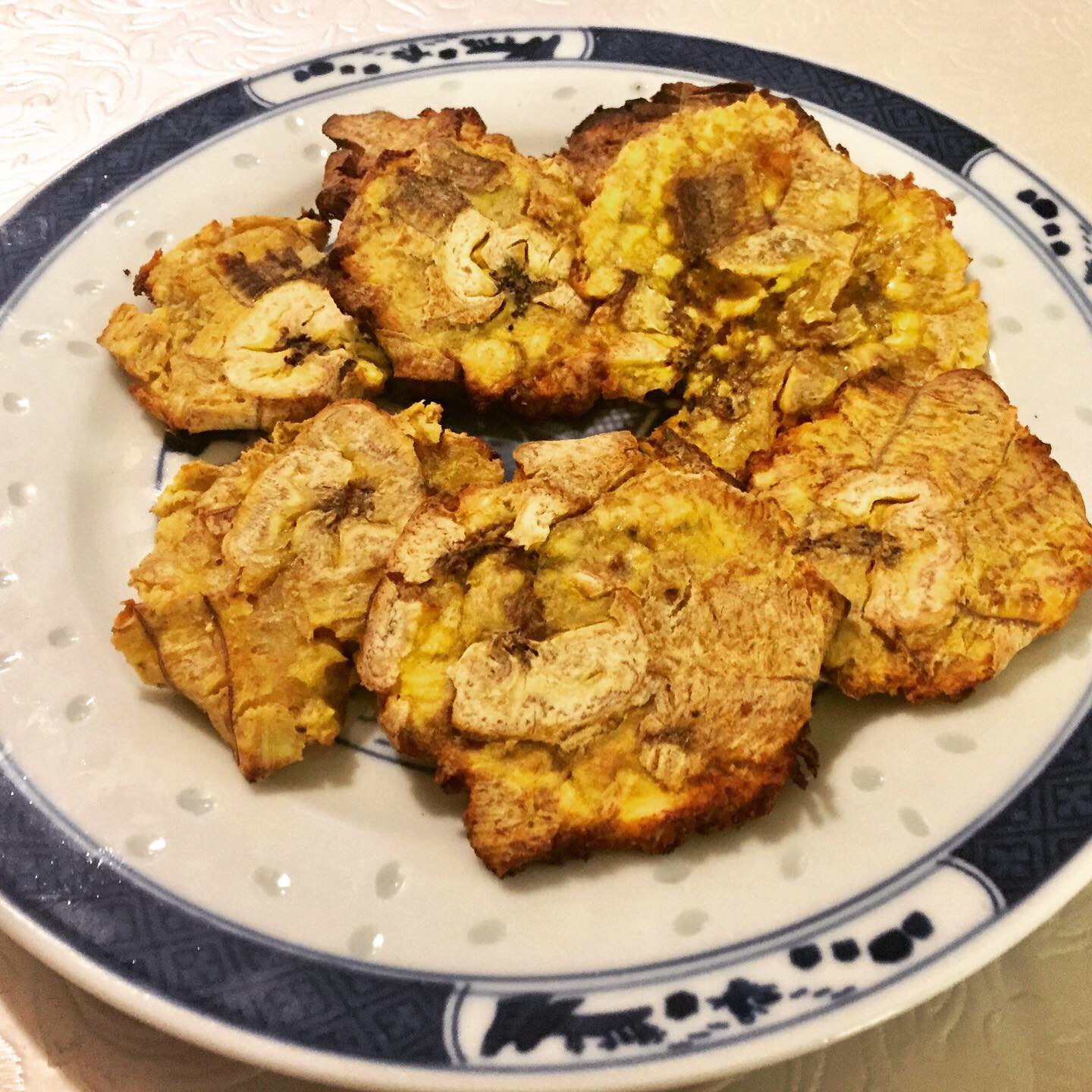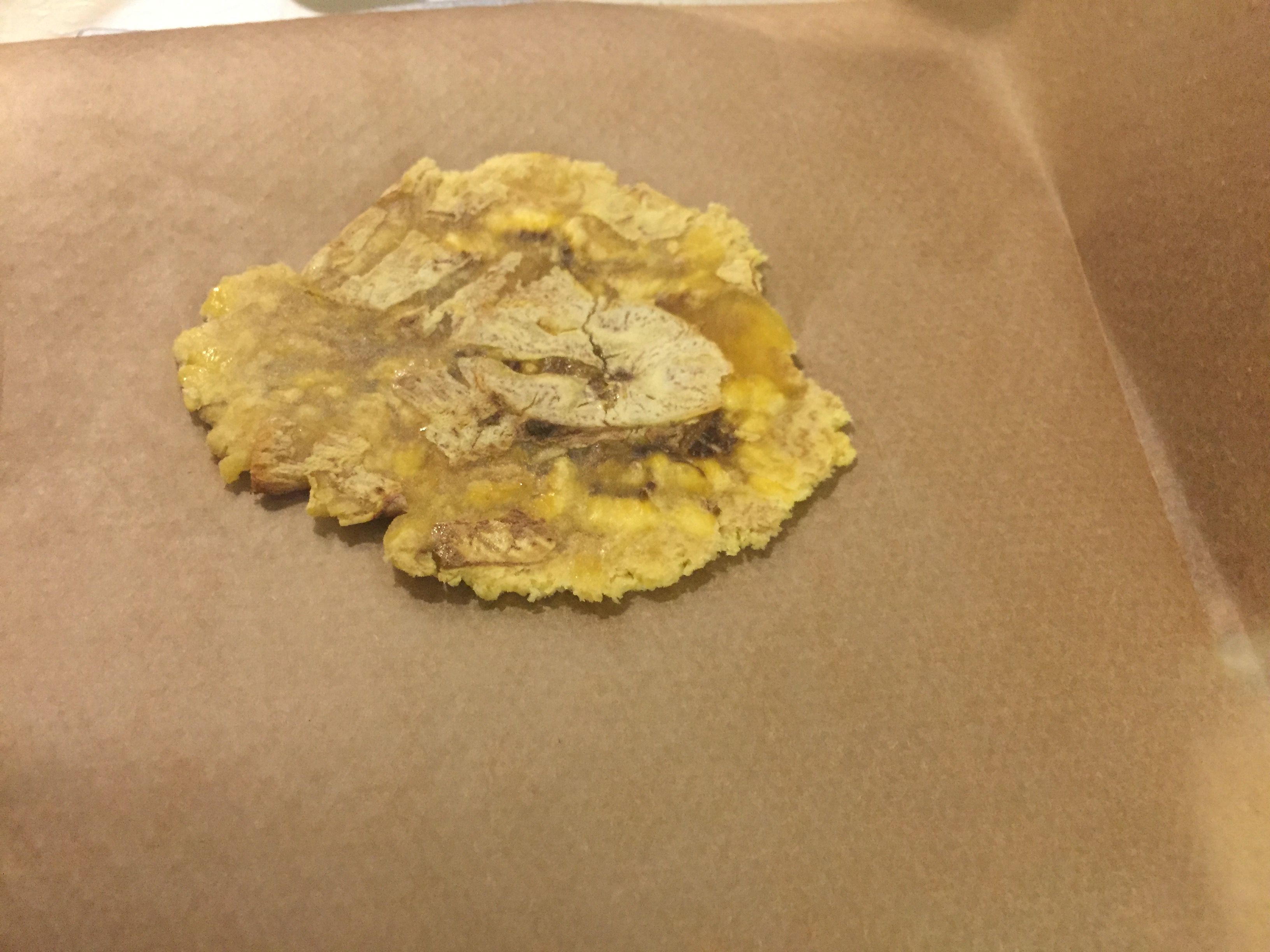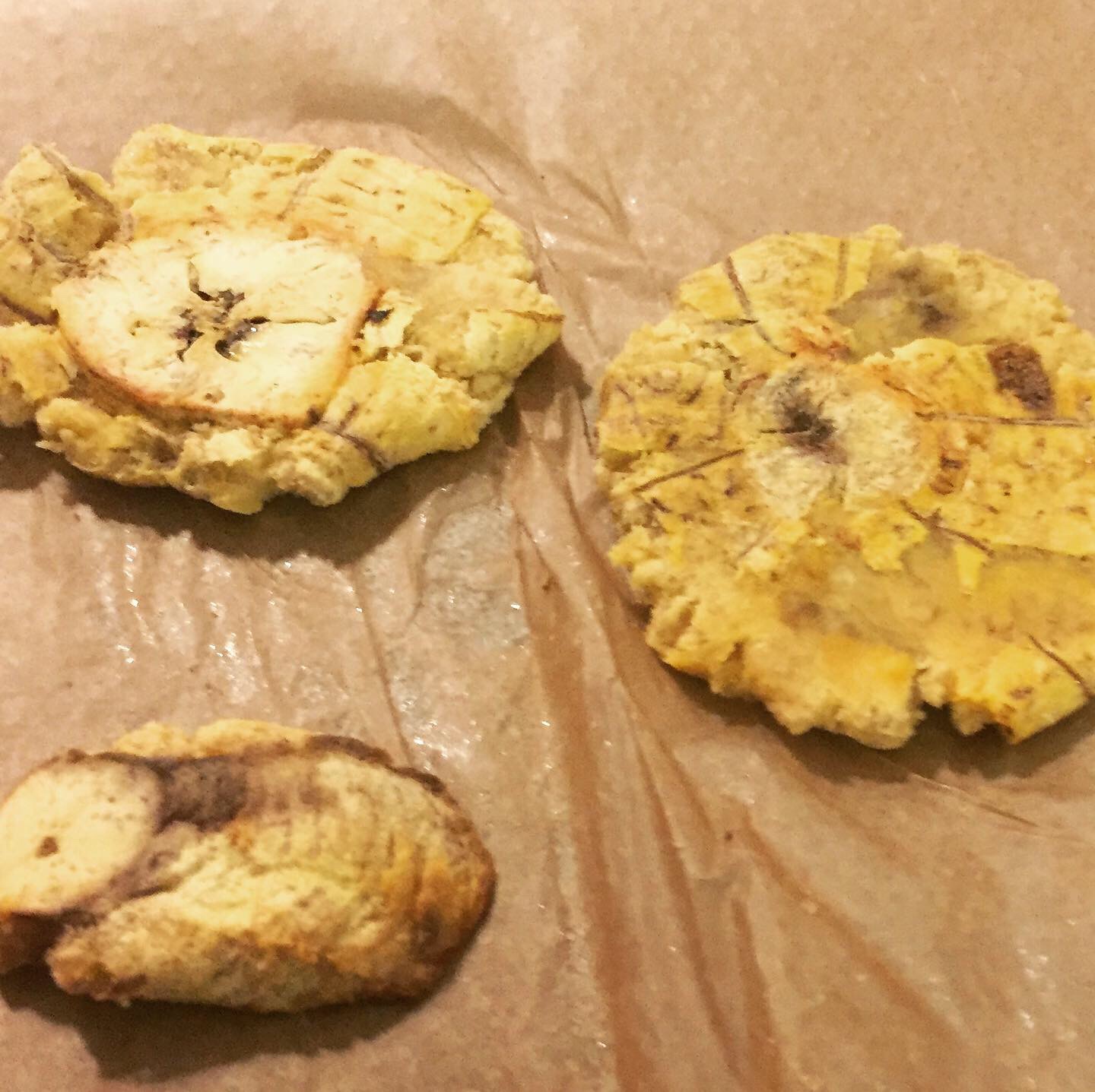 Remove the plantains from the airfryer or oil and flatten each plantain using a press. In Haiti it is called a tostonera. If you don´t have a plaintain press you can use a plate, or like me a Taco press.