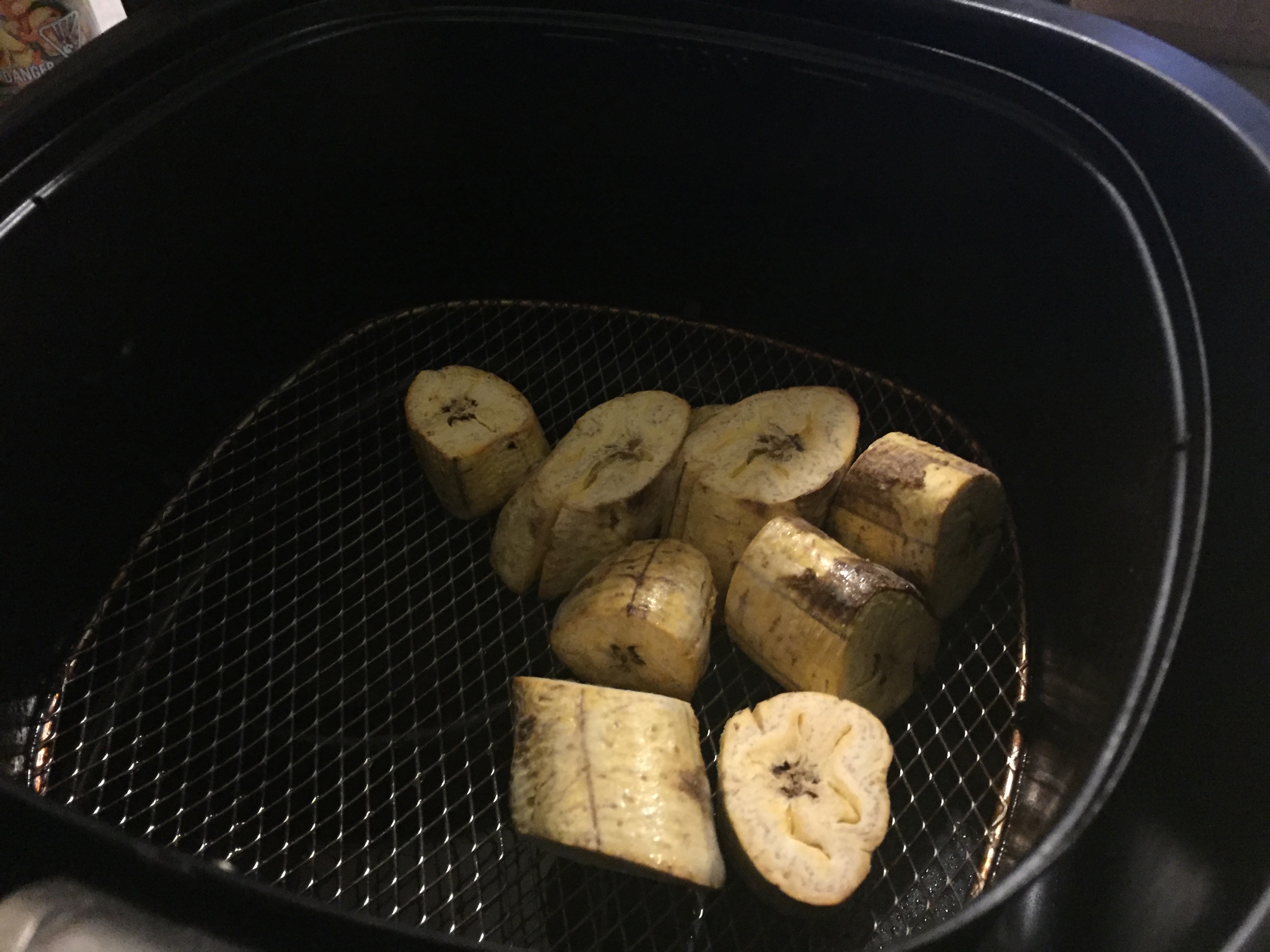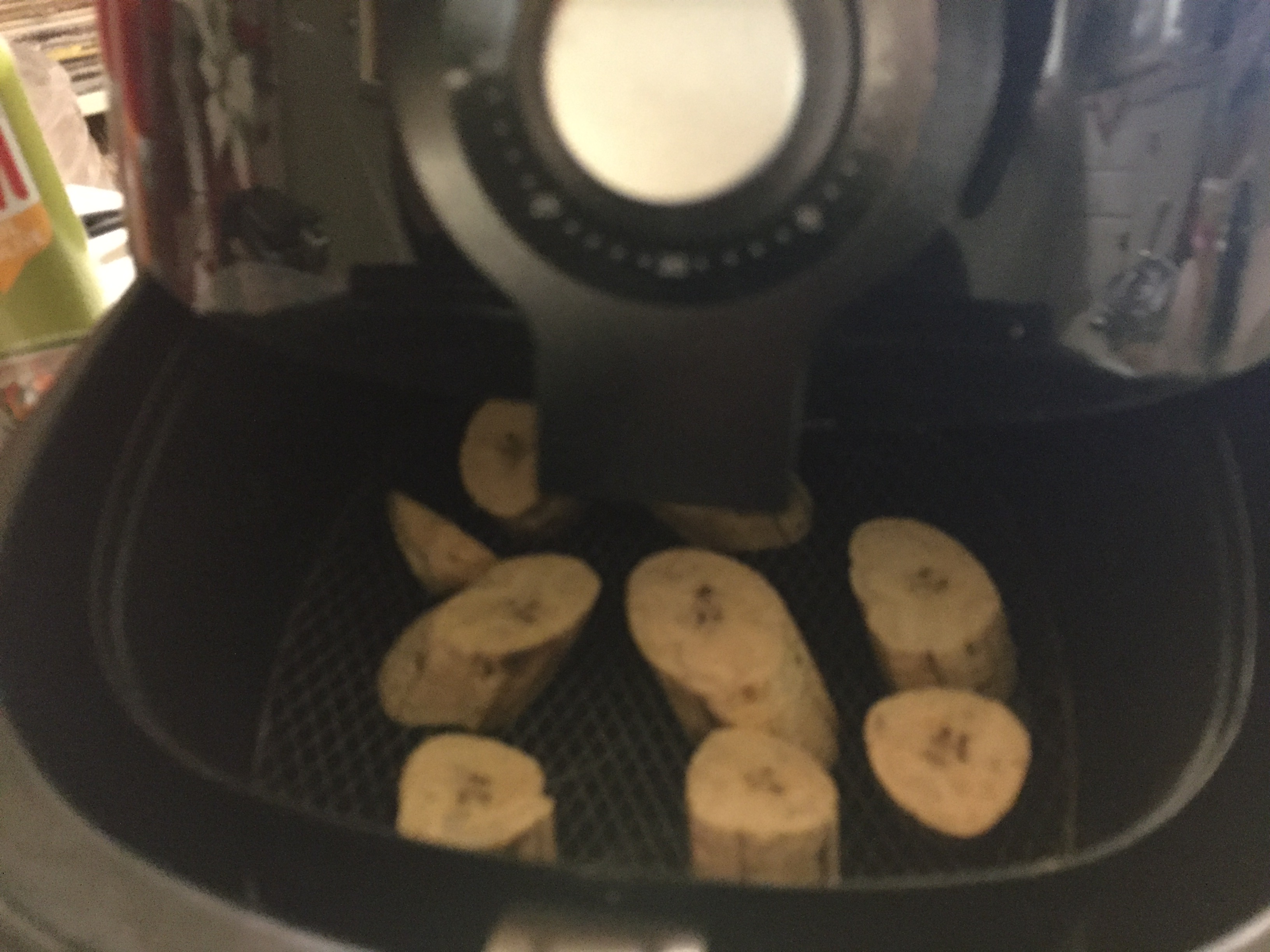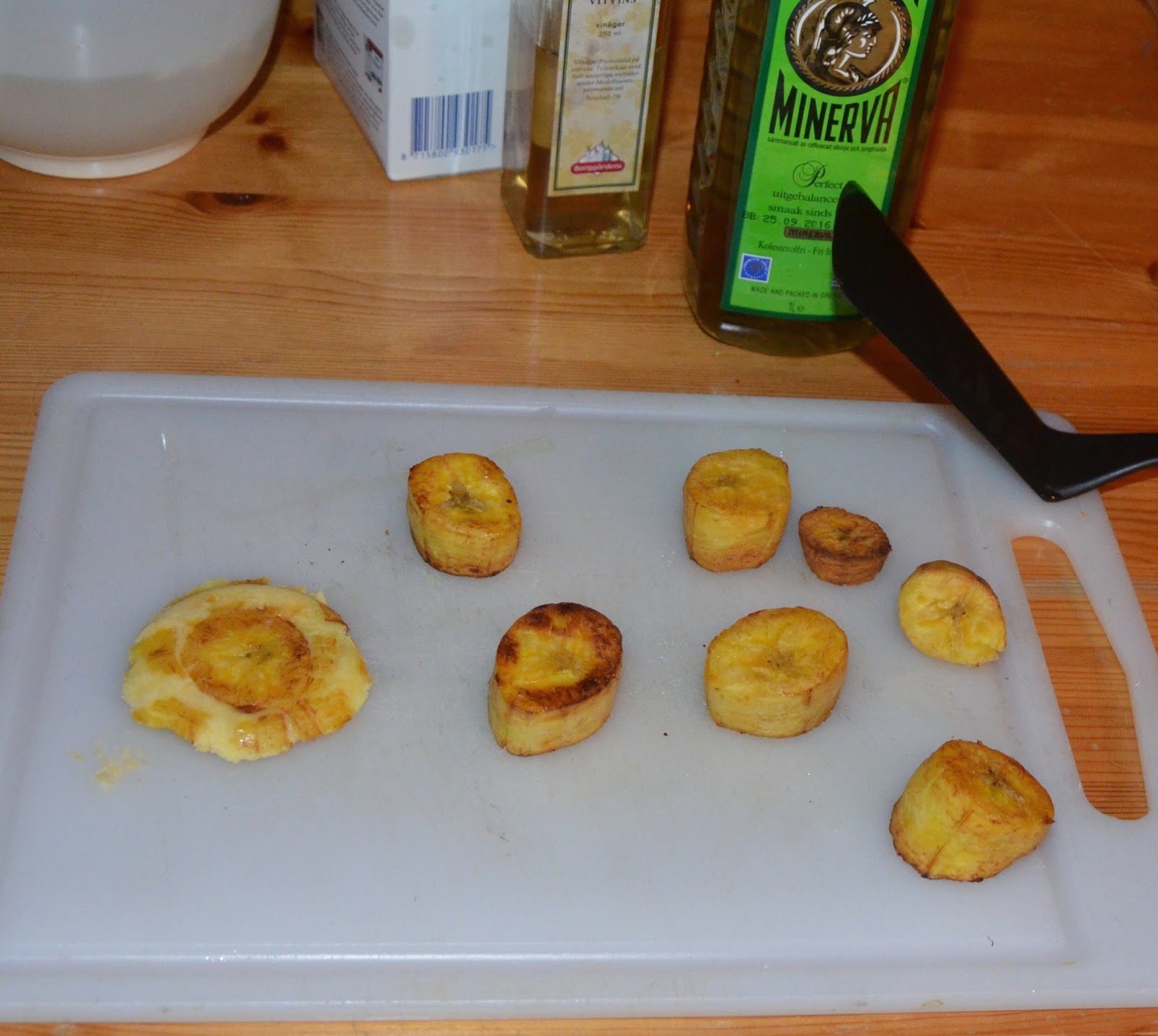 Lightly brown the plantains in the airfryer or in the oil in a pan (Approximately 5 min). Turn after half time.