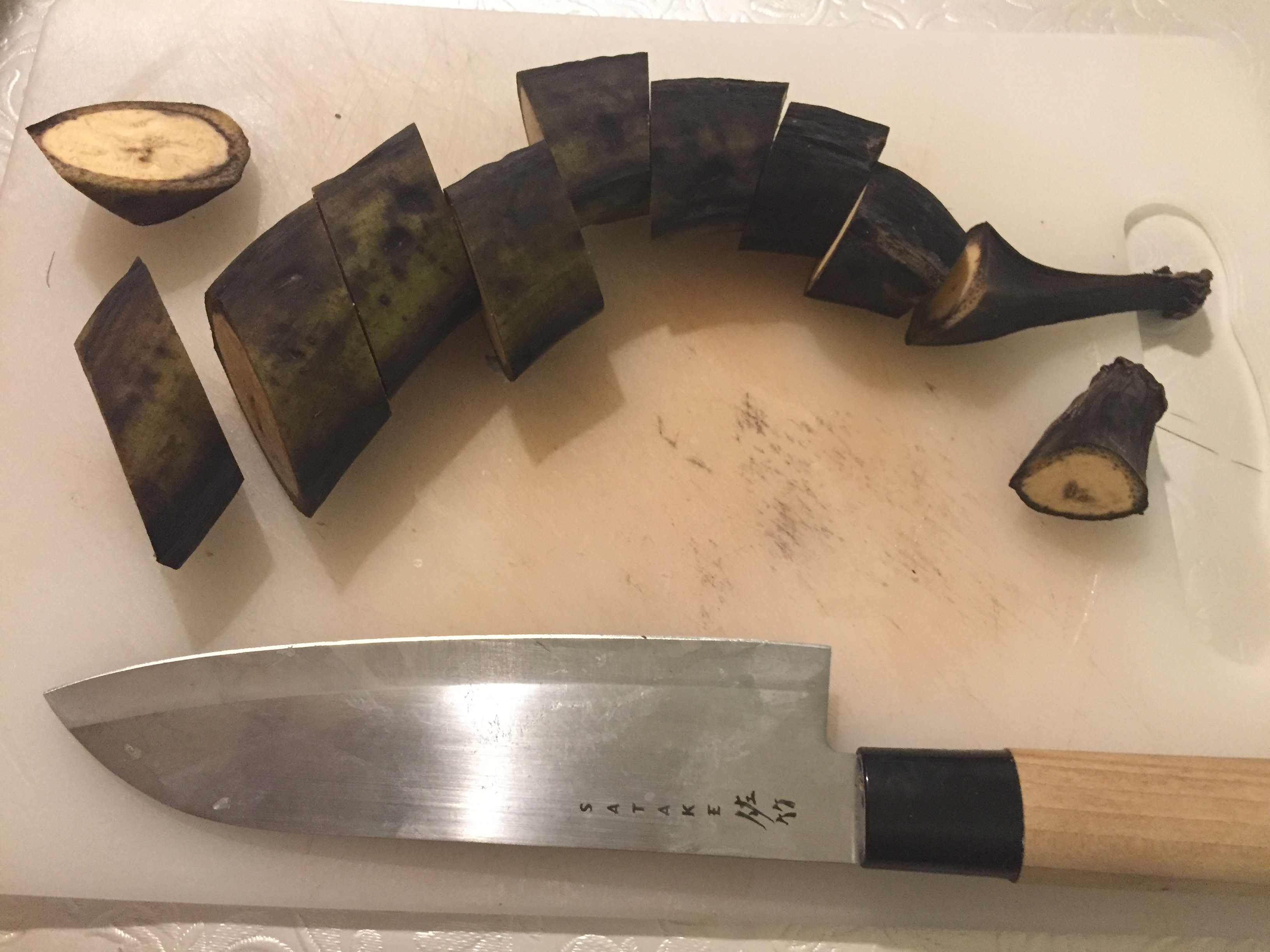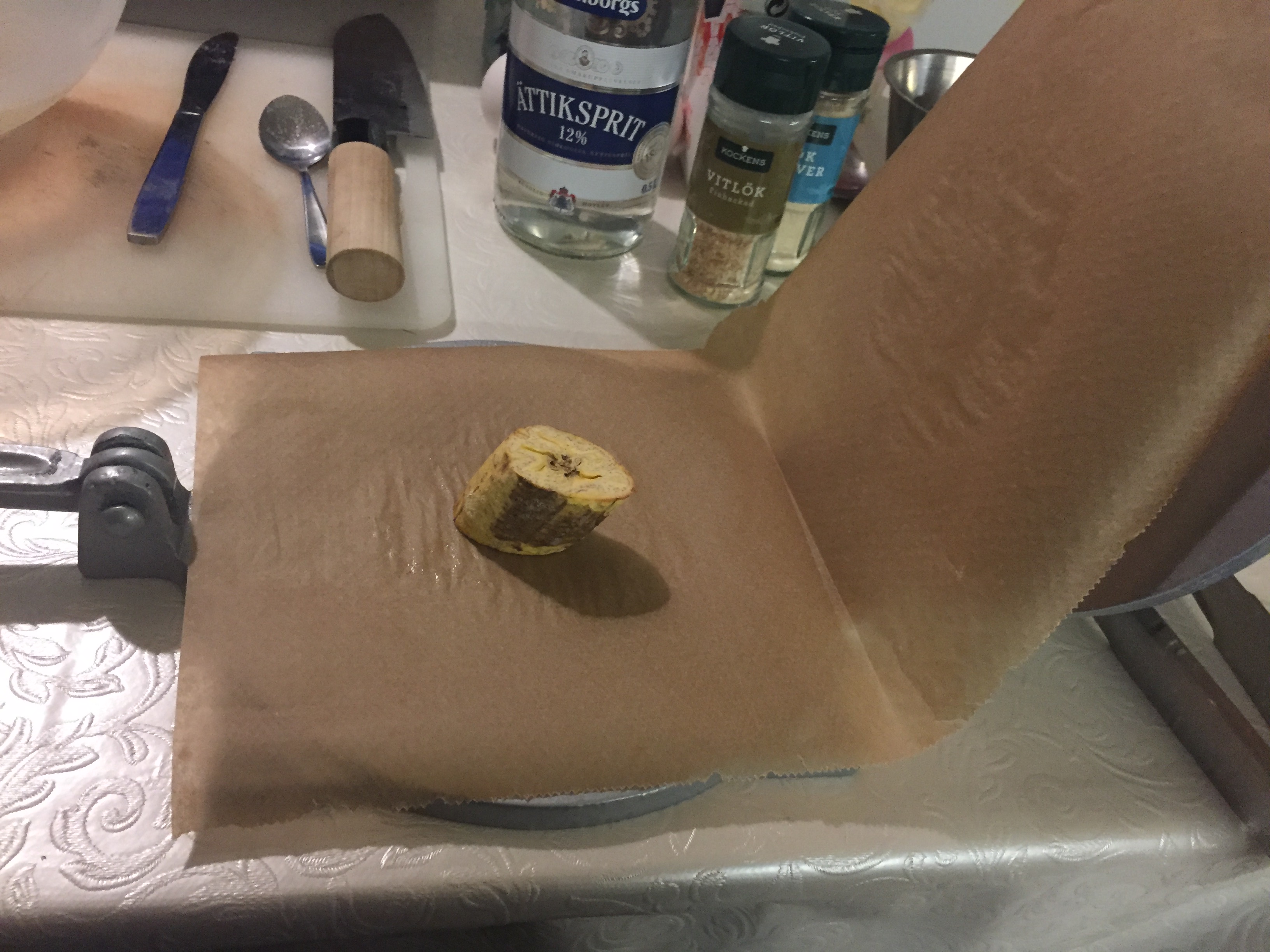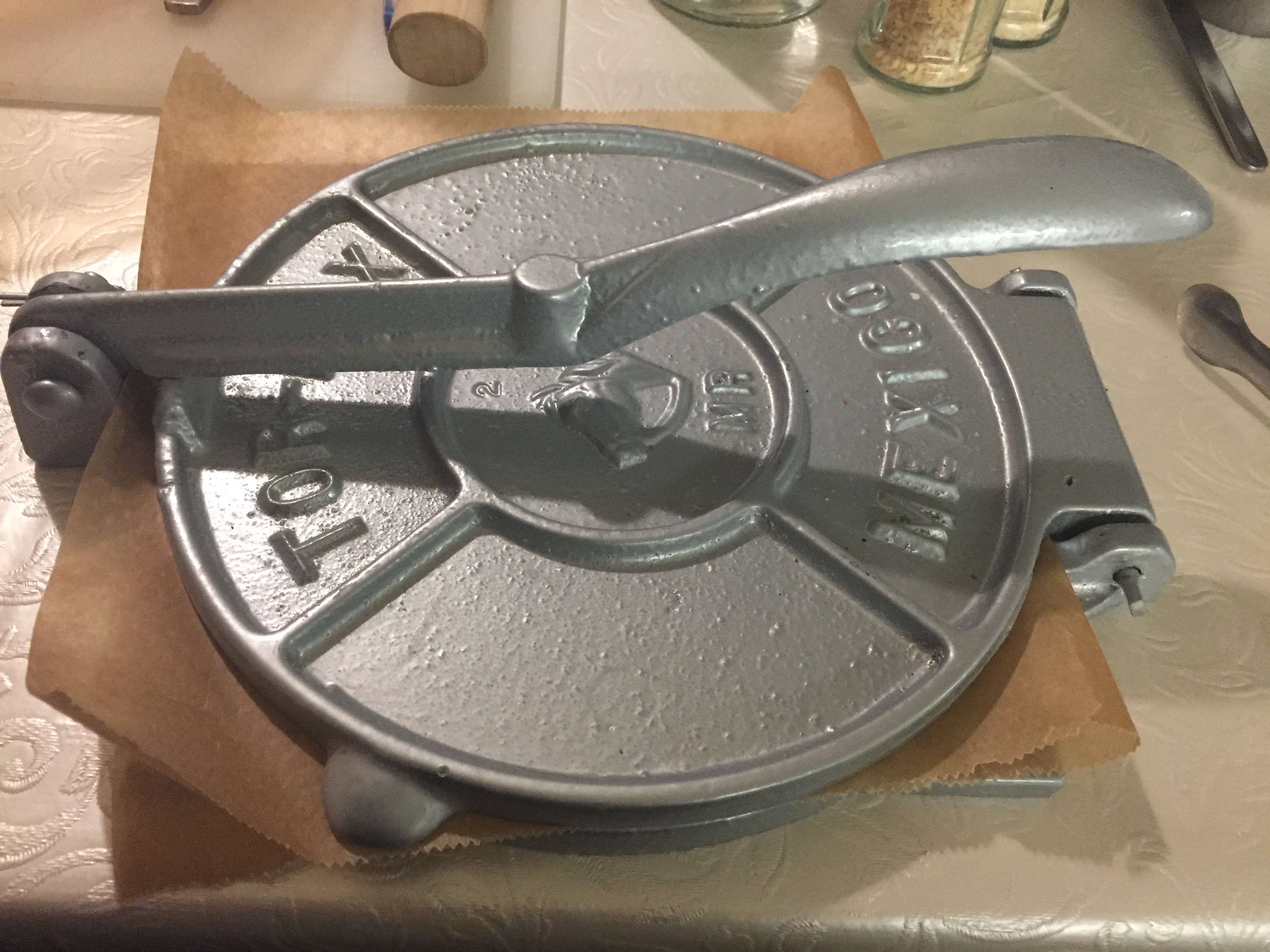 This is what a plaintain press looks like. There are so many different kinds. This is the most simple one, Who would have known there is a whole world out there with so many delicious and fancy dishes where you use the plaintain. Here I just made the most simple one. And as varied as the dishes are also the presses in the Caribbean.