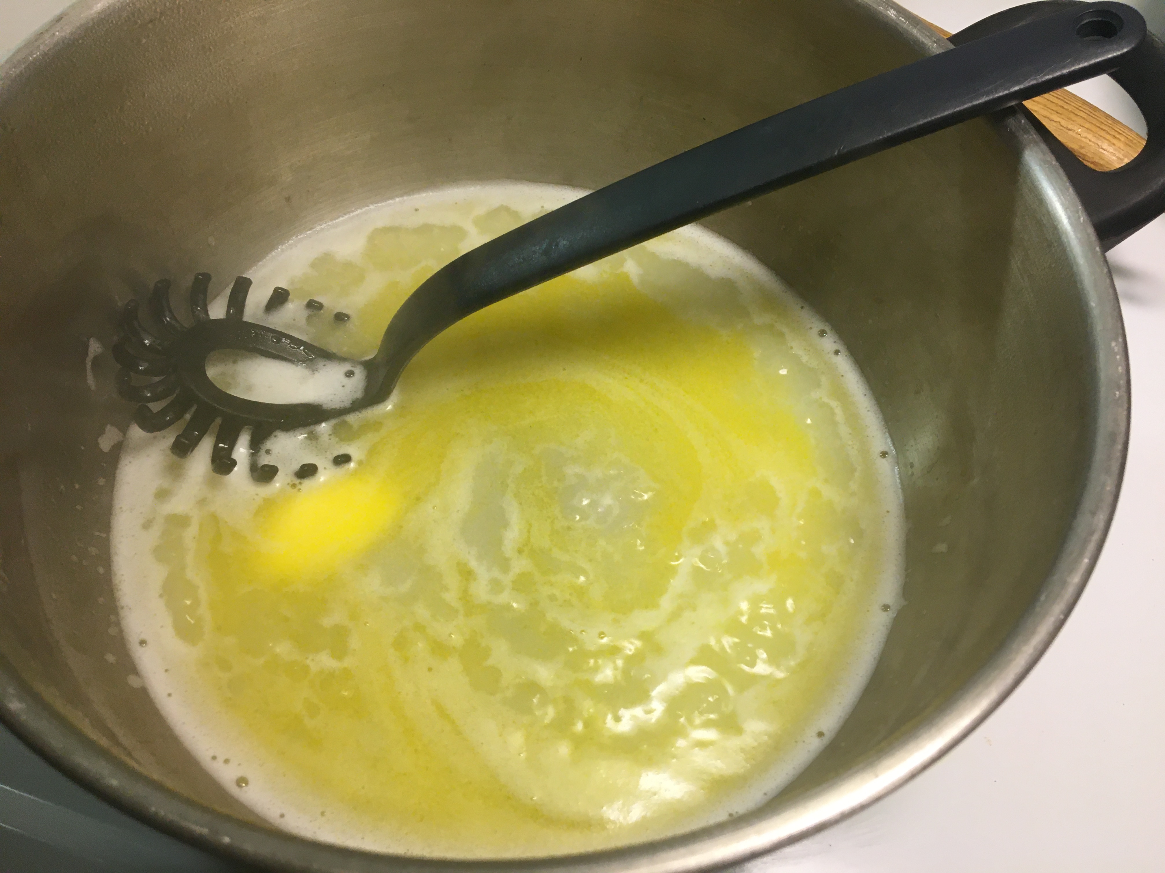 Boil water and butter.