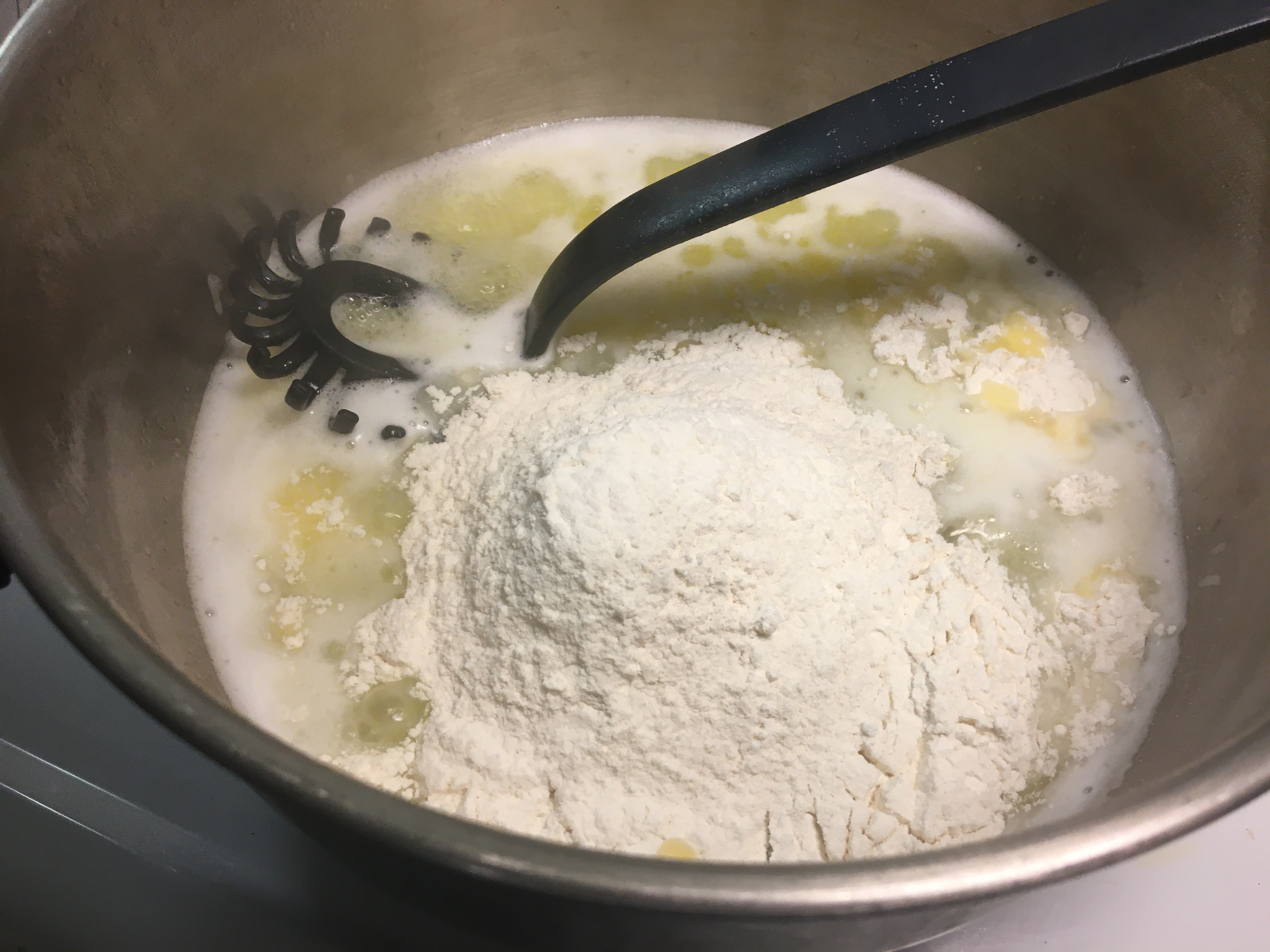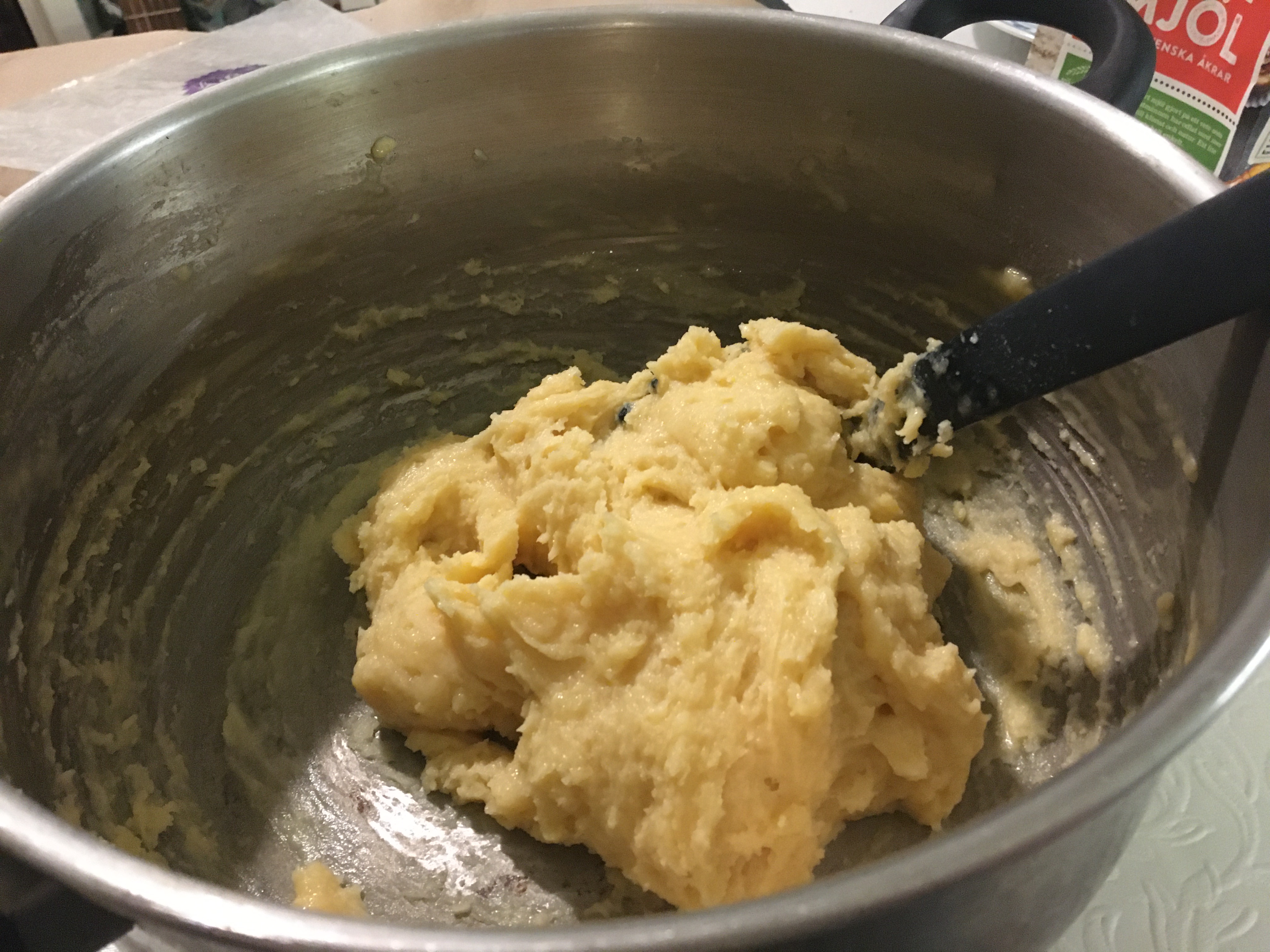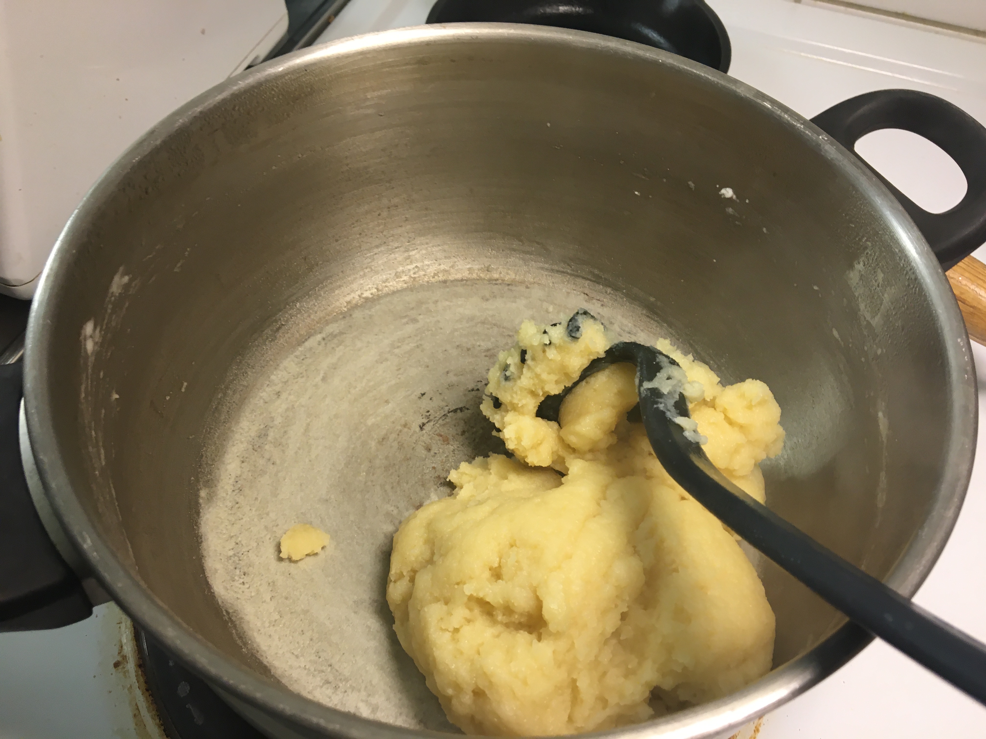 Whisk until the dough let go of the pan and forms a smooth lump.