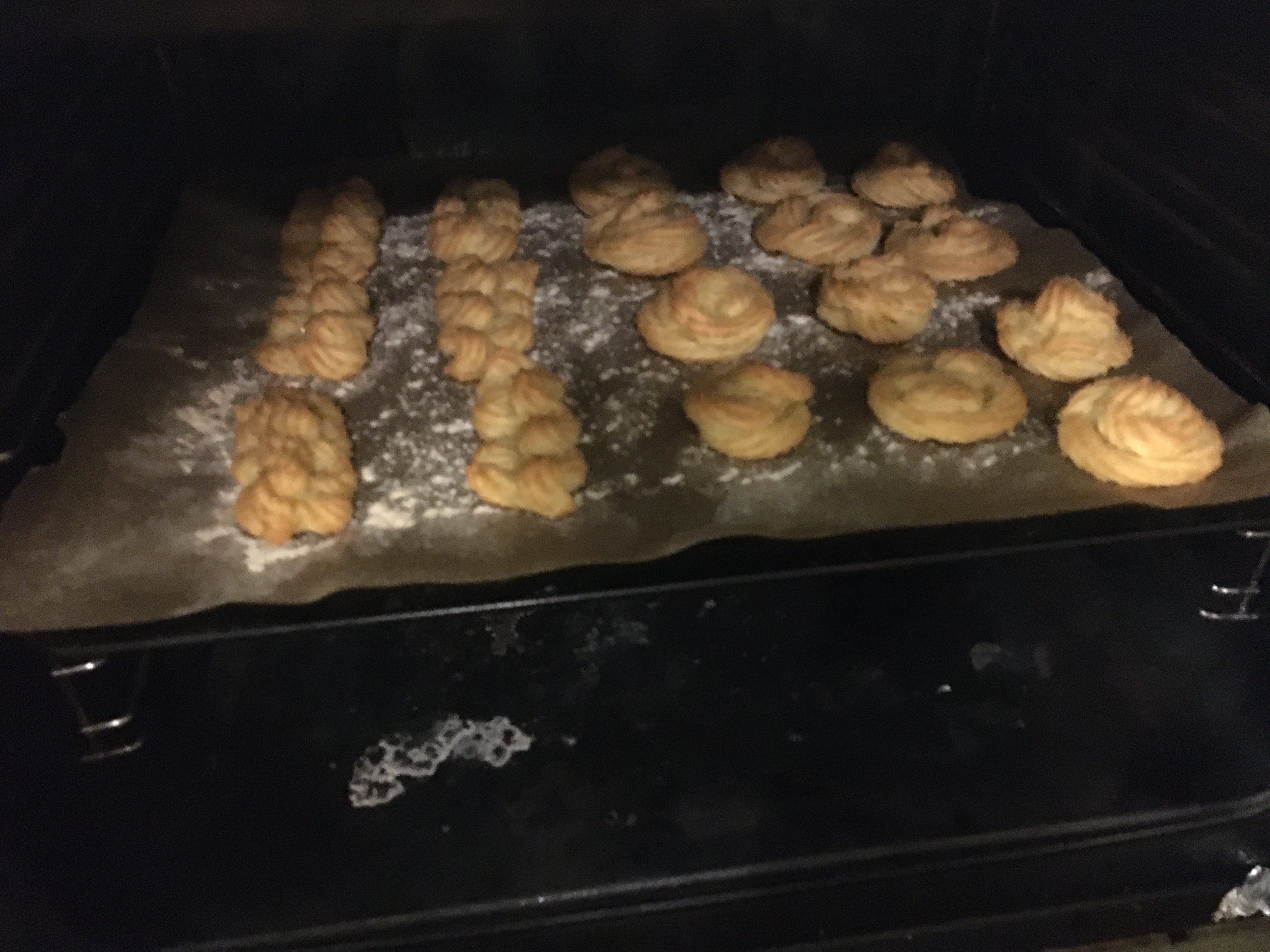 When they are golden turn off the oven and open the oven door a little and leave the “Vannbakkels” inside for a few minutes to start cooling down.