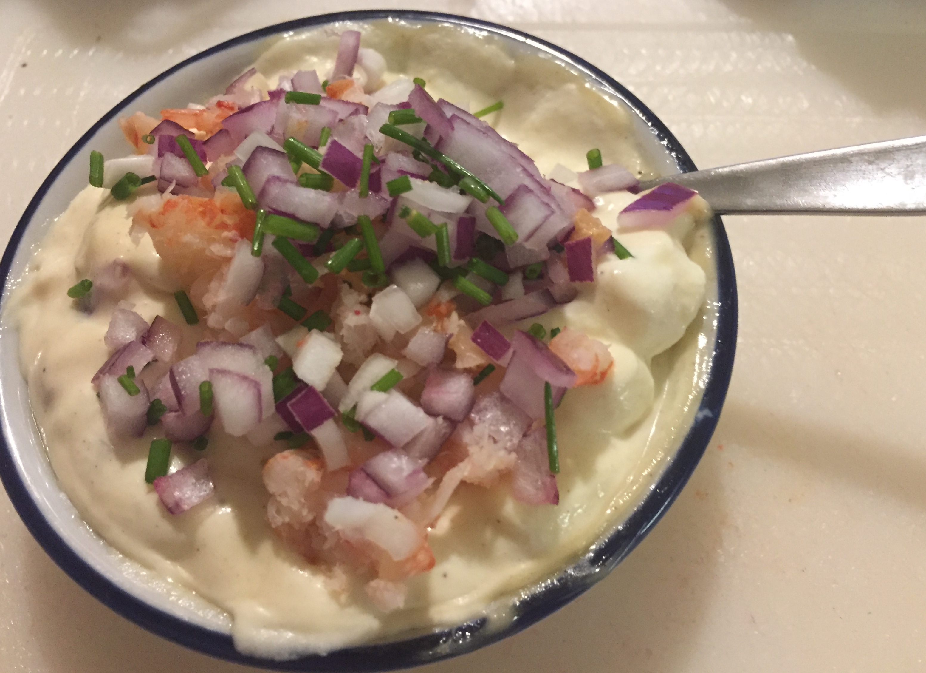 - Shrimps (chop some to mix in the mayo and keep some whole to place on top)