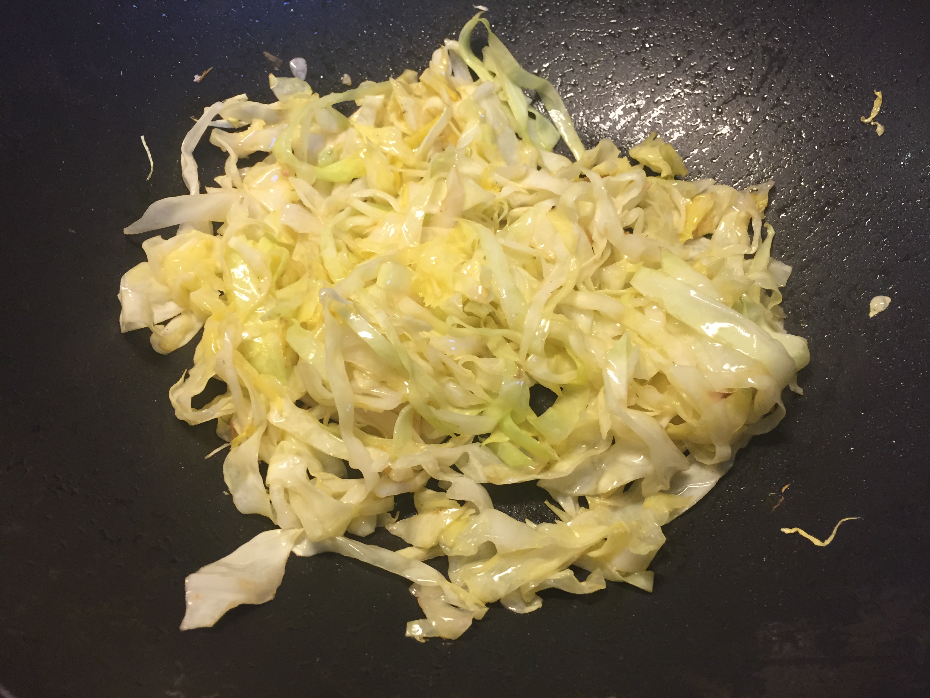 I had some cabbage I wanted to use. So I have been wondering today what to make. And I decided to make several dishes actually. The first one was a warm wok salad with Vietnamese touch. I exchanged noodles for cabbage.