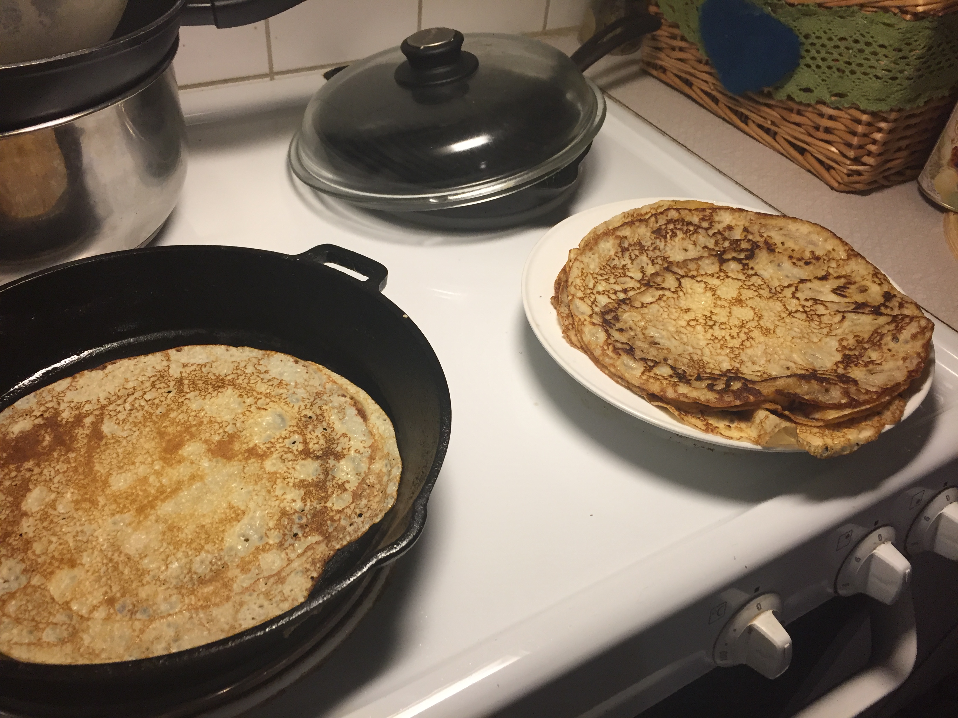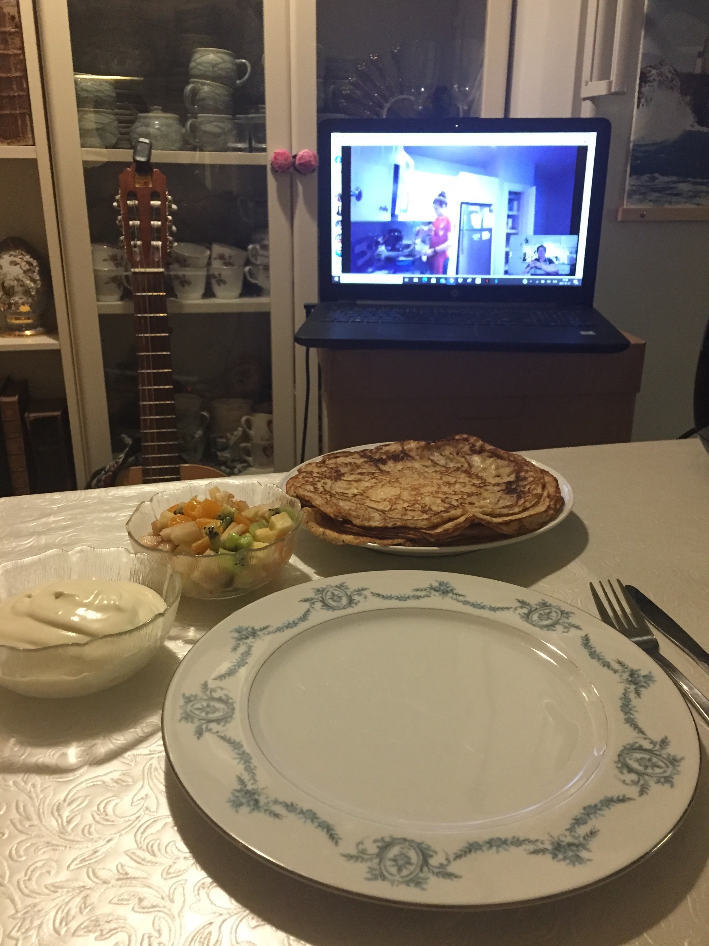 Cookalong sunday night with Frida and Ciana, they in Frisco, Dallas Texas, USA and me here in Sollentuna Sweden. This time we made thin pancakes that are common in Sweden and Norway. We usually eat them with butter and sugar or butter and jam. However they can also be filled with savory filling or sweet like the french crepes.