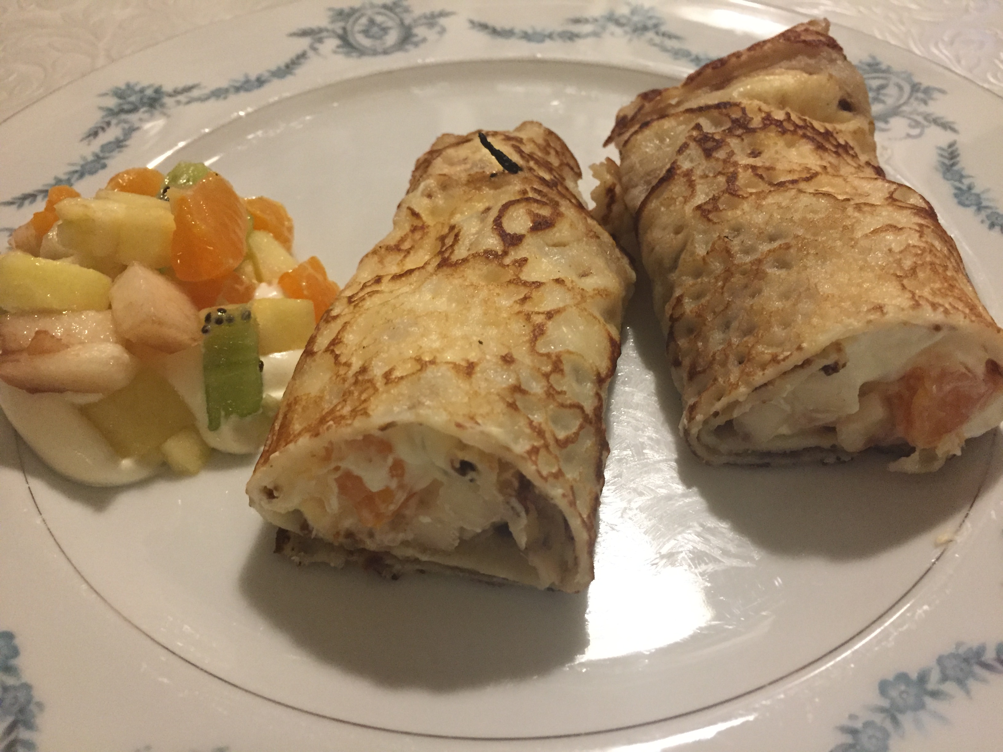 Pancakes are also a traditional thursday dish in Sweden and served with yellow pea soup. However today I made mine with filling of fruits and whipped cream, while Frida and Ciana ate it as traditional with butter and sugar.