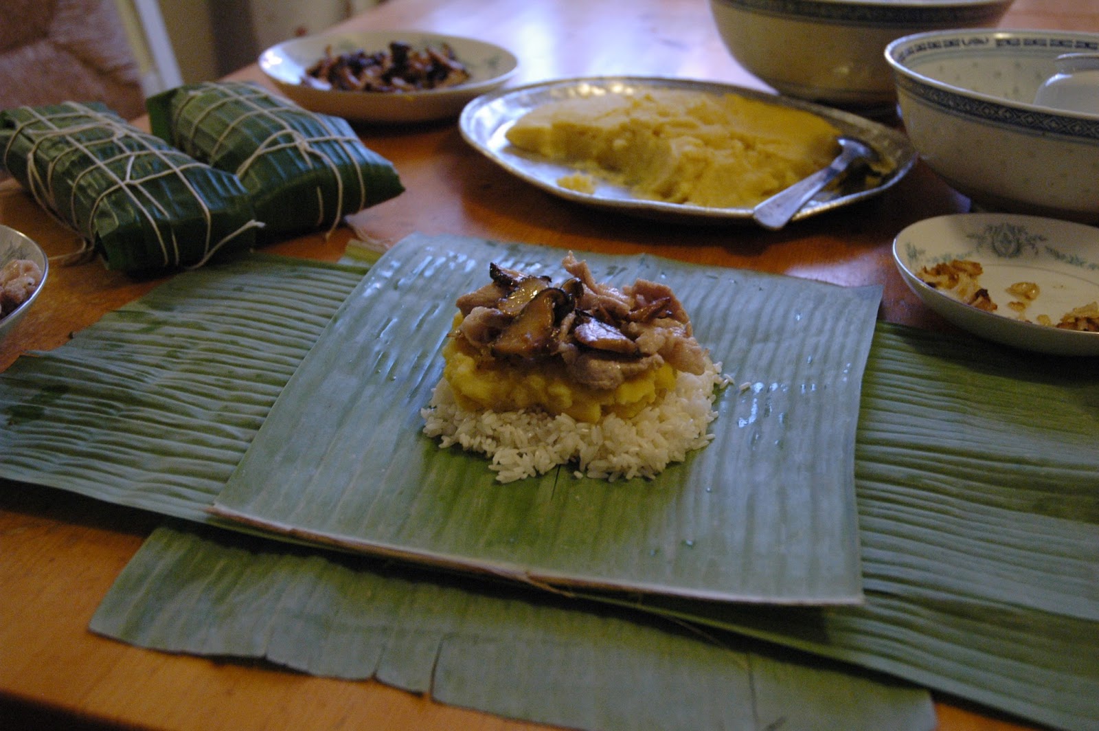 To make this dish in the traditional Vietnamese way I studied for a long time videos I could find with old people making them in the villages in Vietnam. I did want to make it the authentic way. I do not have pots and open fire outside, but except from that I wanted it to be as authentic as possible. To find ingredients was hard here in Stockholm when I first started making Vietnamese dishes. Especially banana leaves. However now I know every Asien Market in my area.
