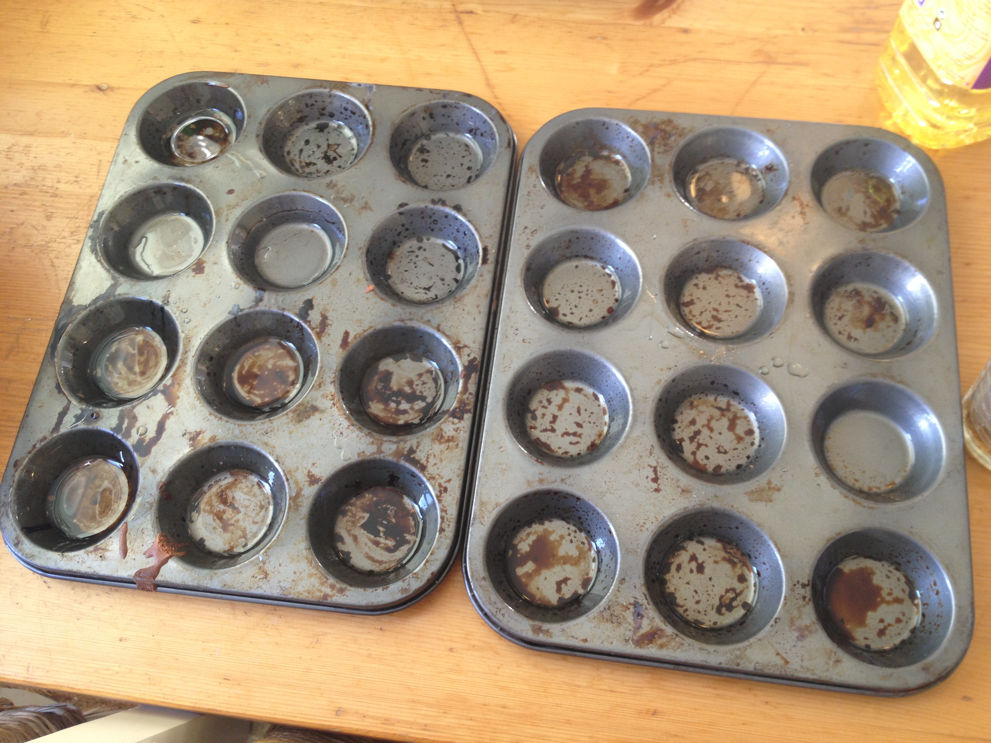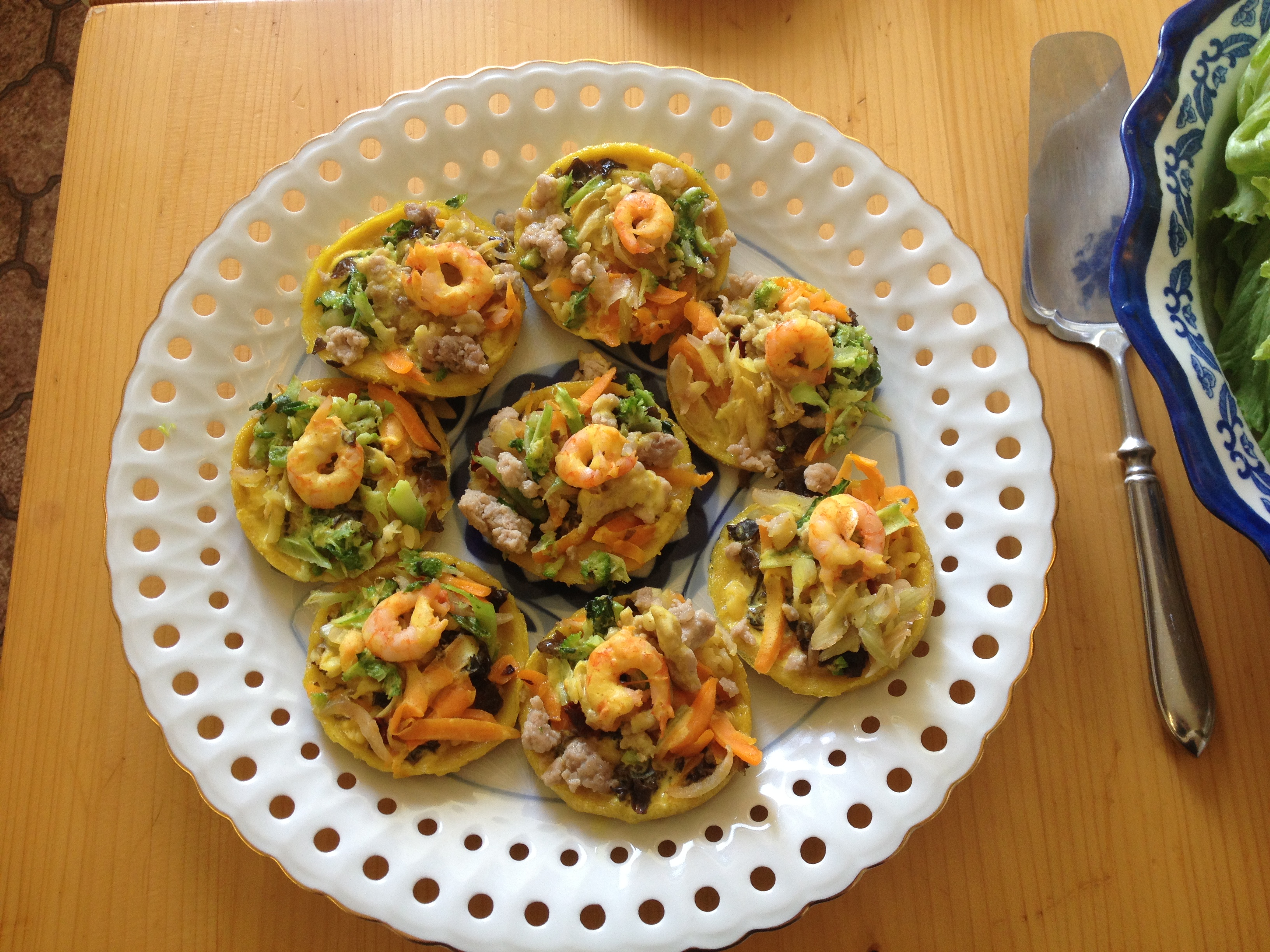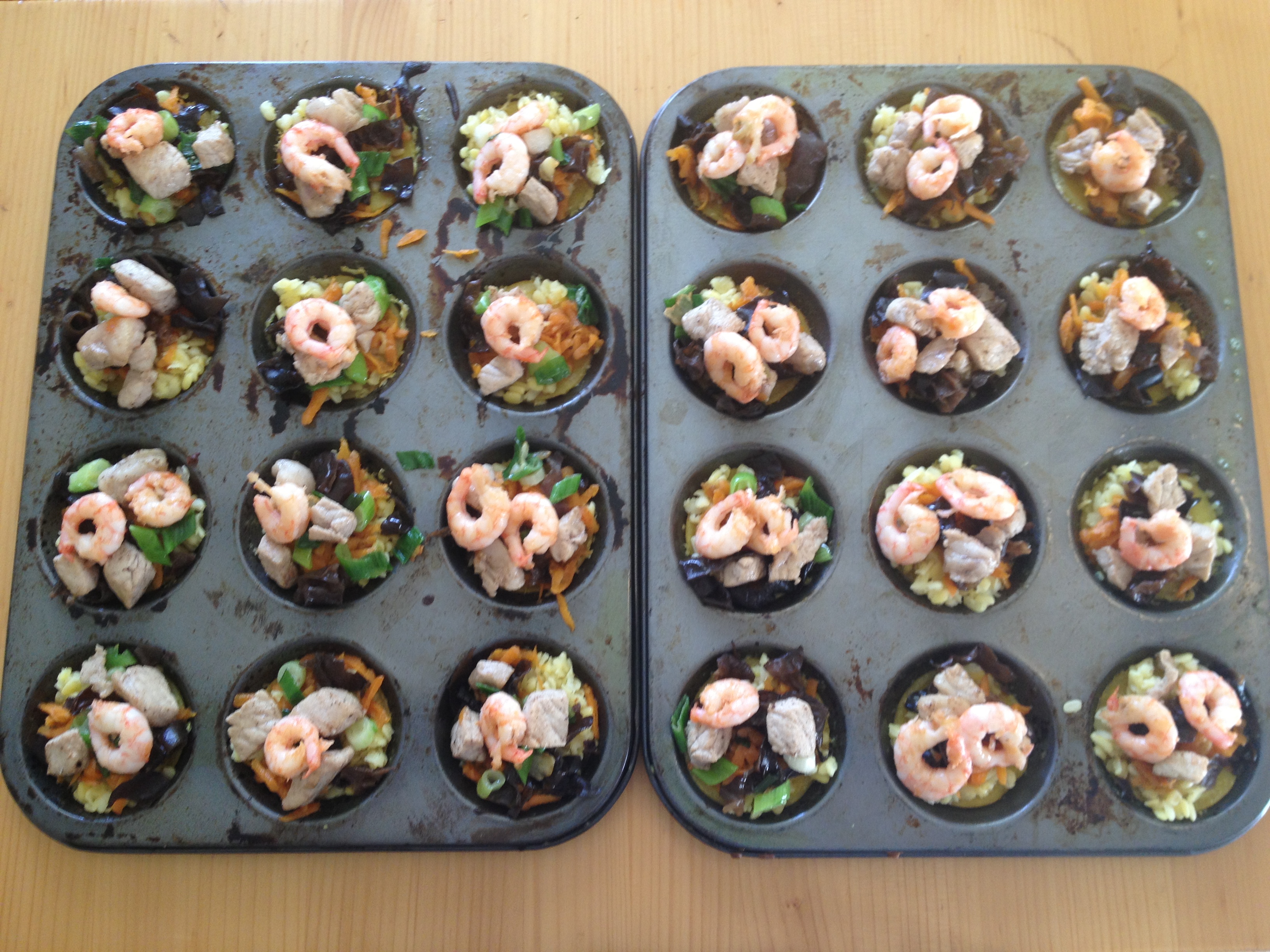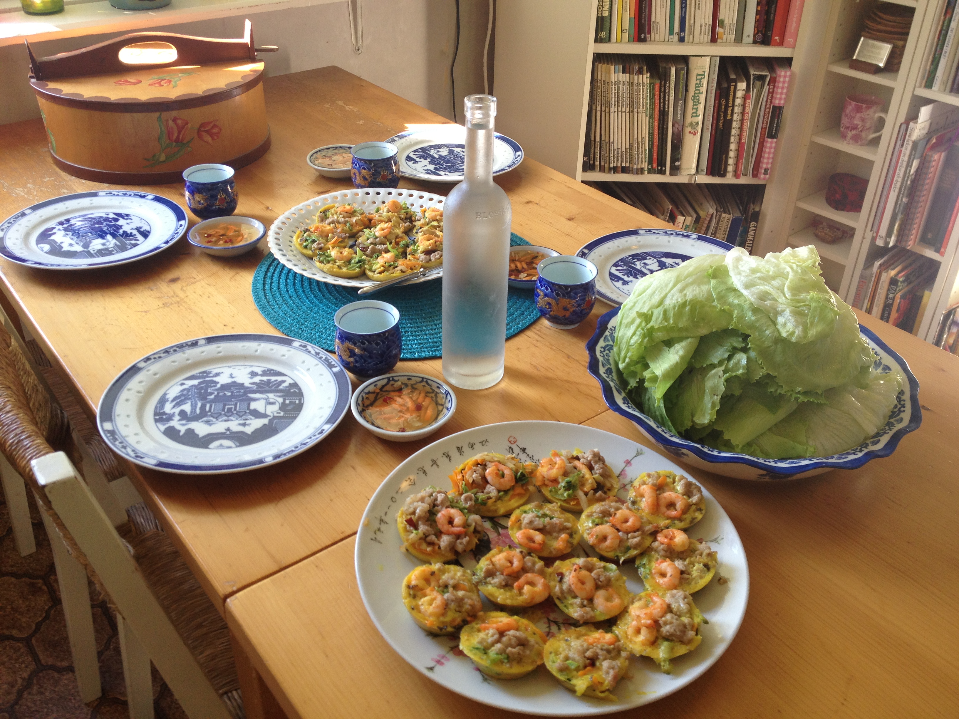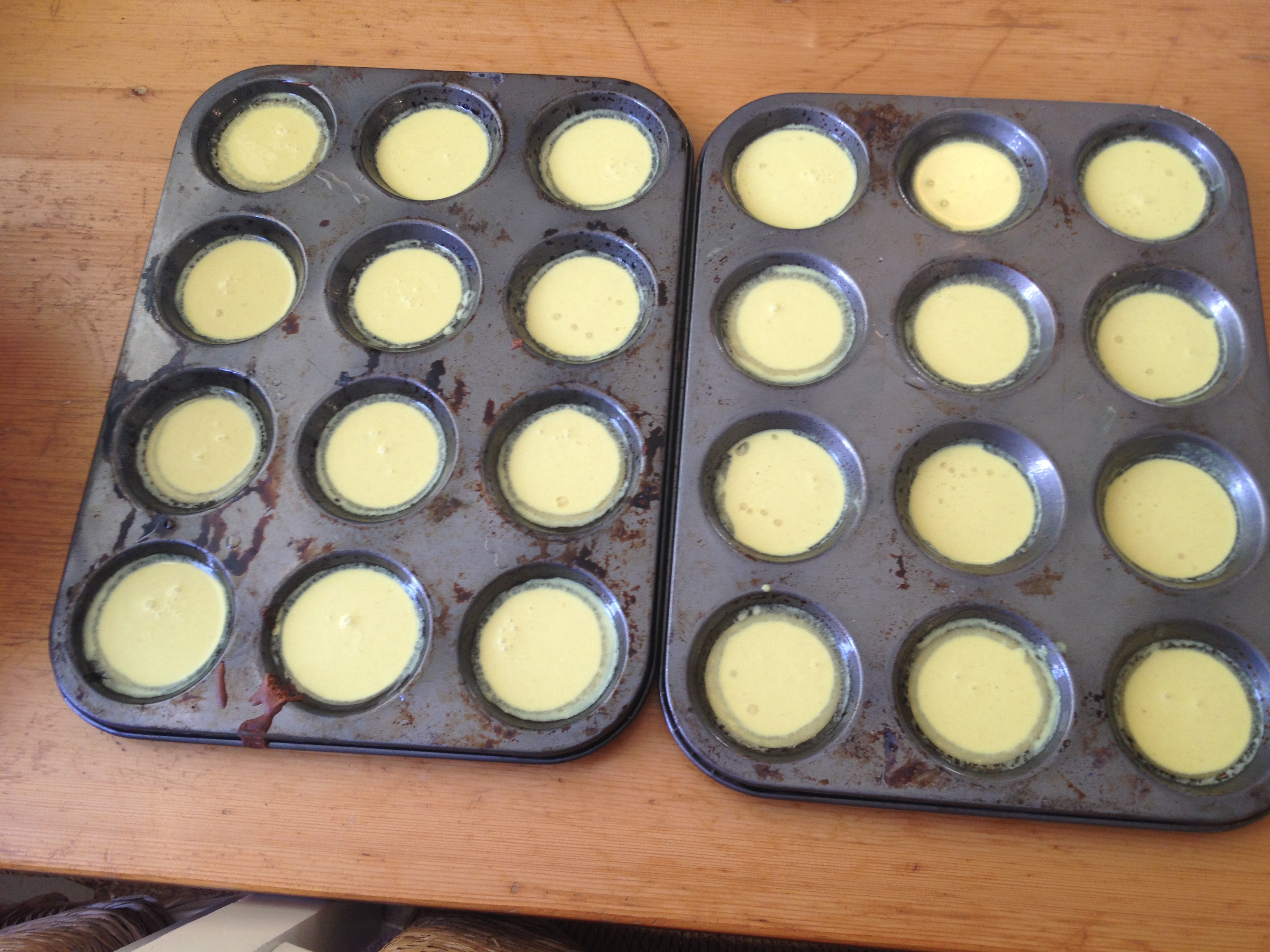 Banh Khot pan (I don´t have this and they require a gas stove which I also don´t have, so I used my cupcake pans and put in the oven at 250 Celcius degrees for a few minutes until the pancakes fried. And this worked great as well. Still I didn´t get the crisp outside I would have with a real frying pan. A Japanese Takoyaki pan could also be used or an Danish Aebleskiver pan.