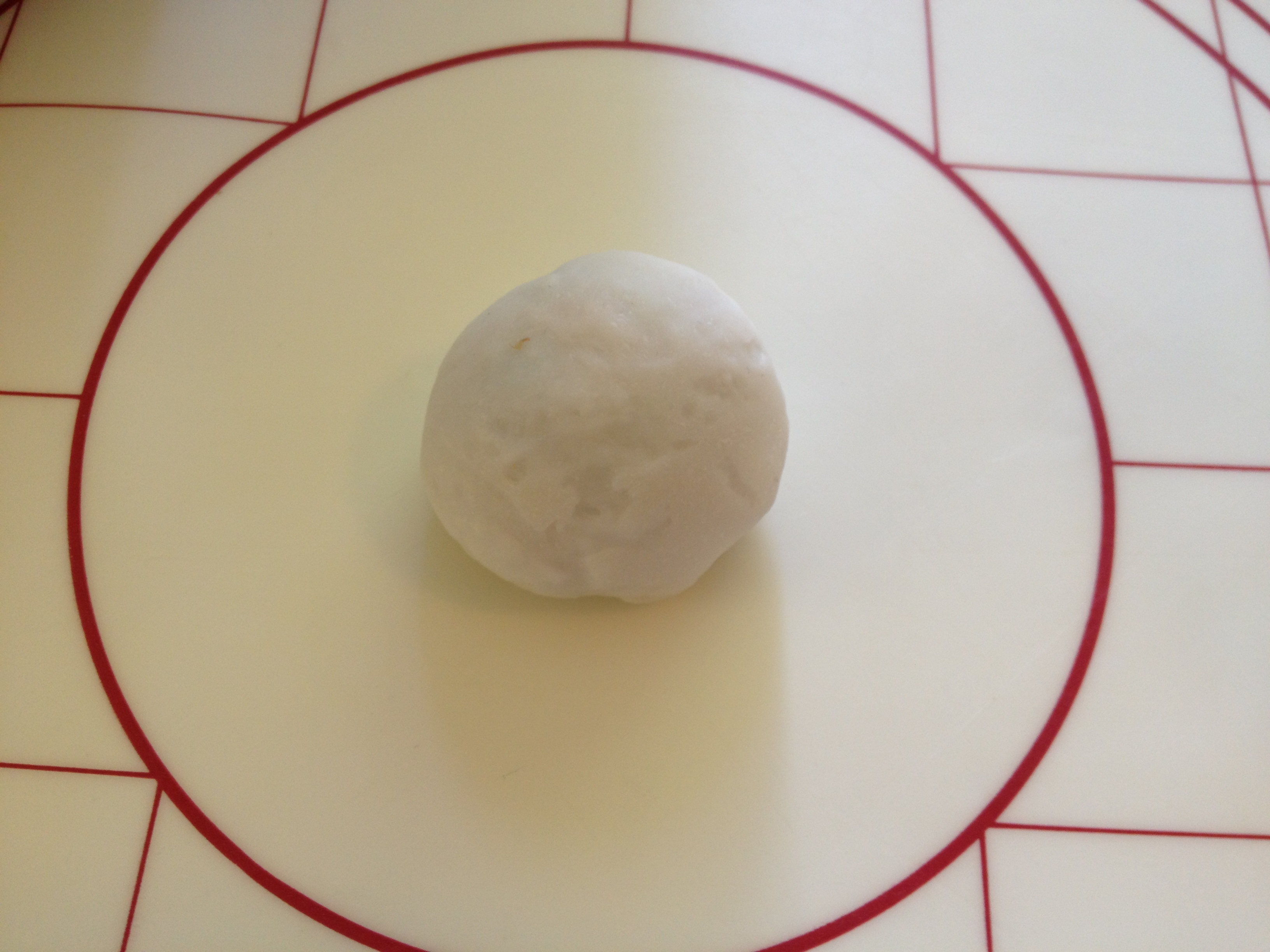 Mix the tapioca flour with the hot water and add the cold water. Work the dough until it is smooth like play dough. Let it rest for 30 minutes.