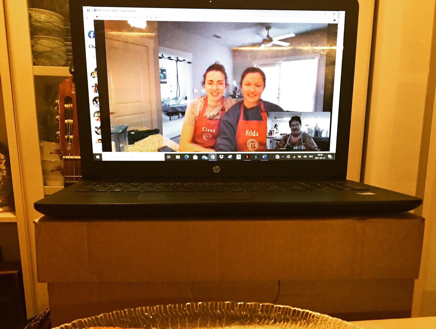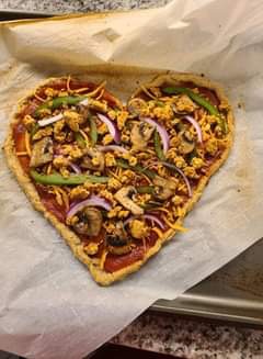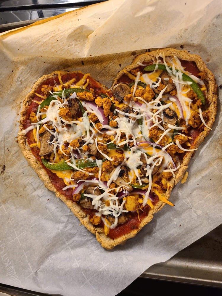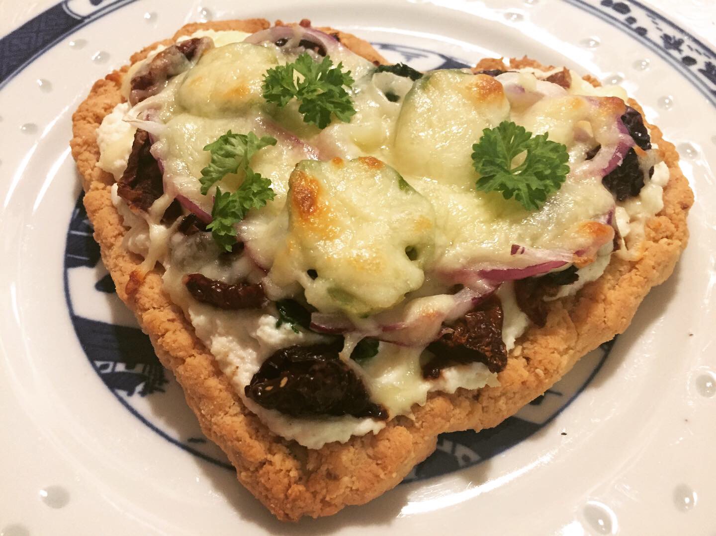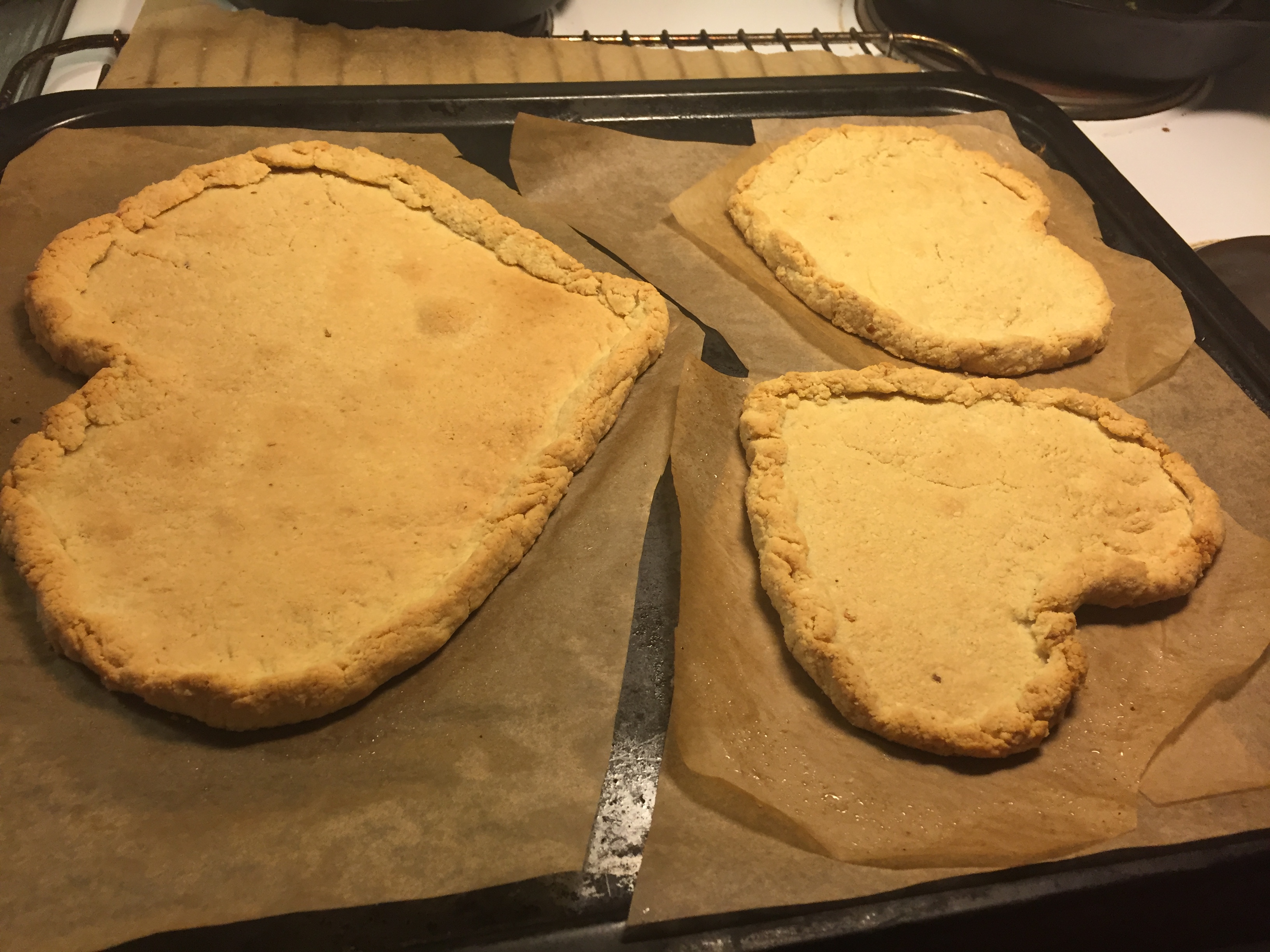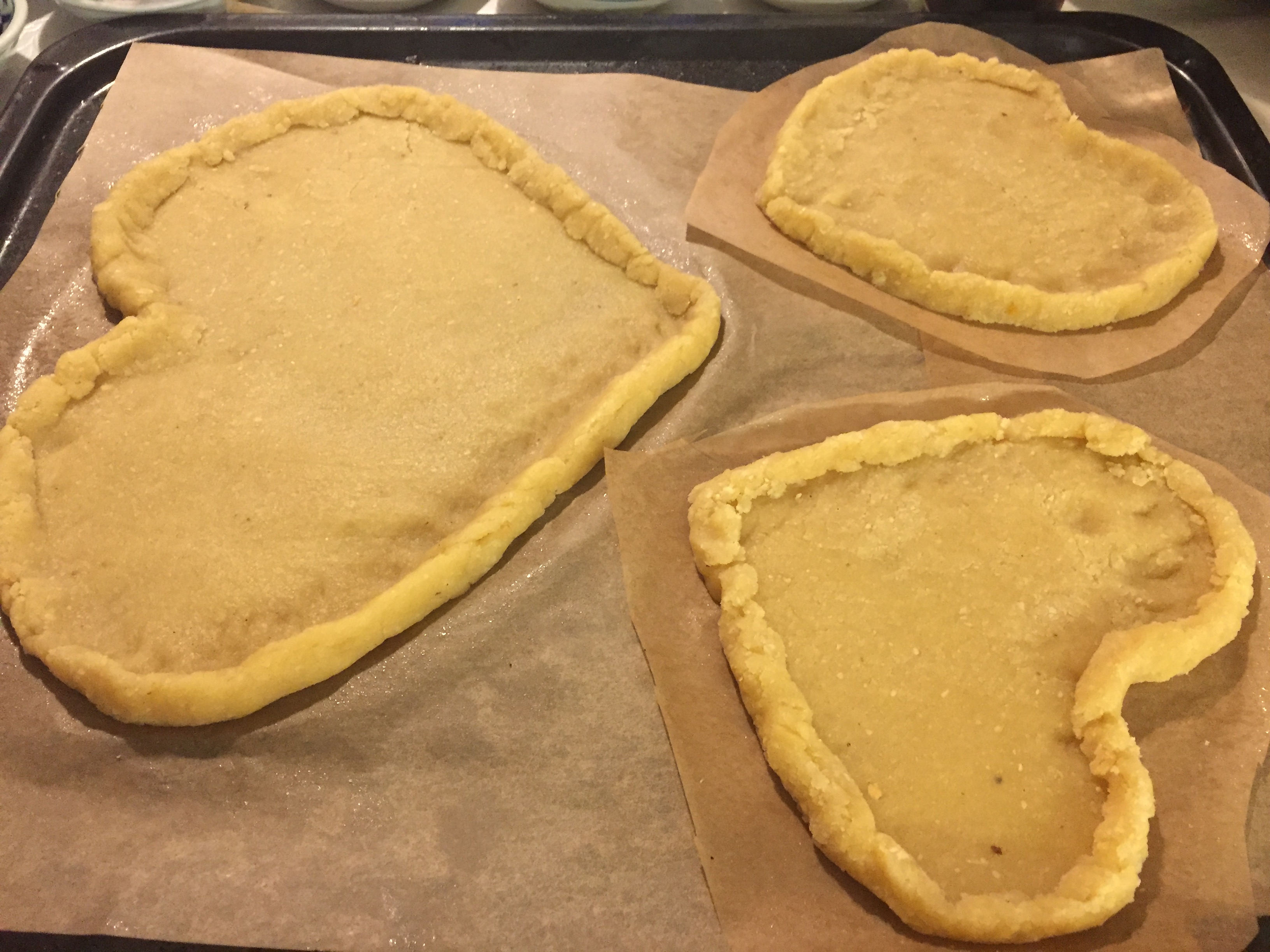 Cookalong on Valentines Day with Frida and Ciana in Frisco, Dallas, Texas USA and me here in Sollentuna Sweden. On Valentines day we made pizza. The crust glutenfree, made with almond flour. Frida and Ciana made their pizza vegetarian with mushrooms and bellpeppers. I made three different toppings. One with white sauce from ricotta cheese and topped with spinnach, onions and brusselsprouts. Another with tomatoesauce, onions and chorizo sausage. The third with tomatoe sauce, ham, shrimps and onions. I mixed mozzarella and parmesan cheese on all three.