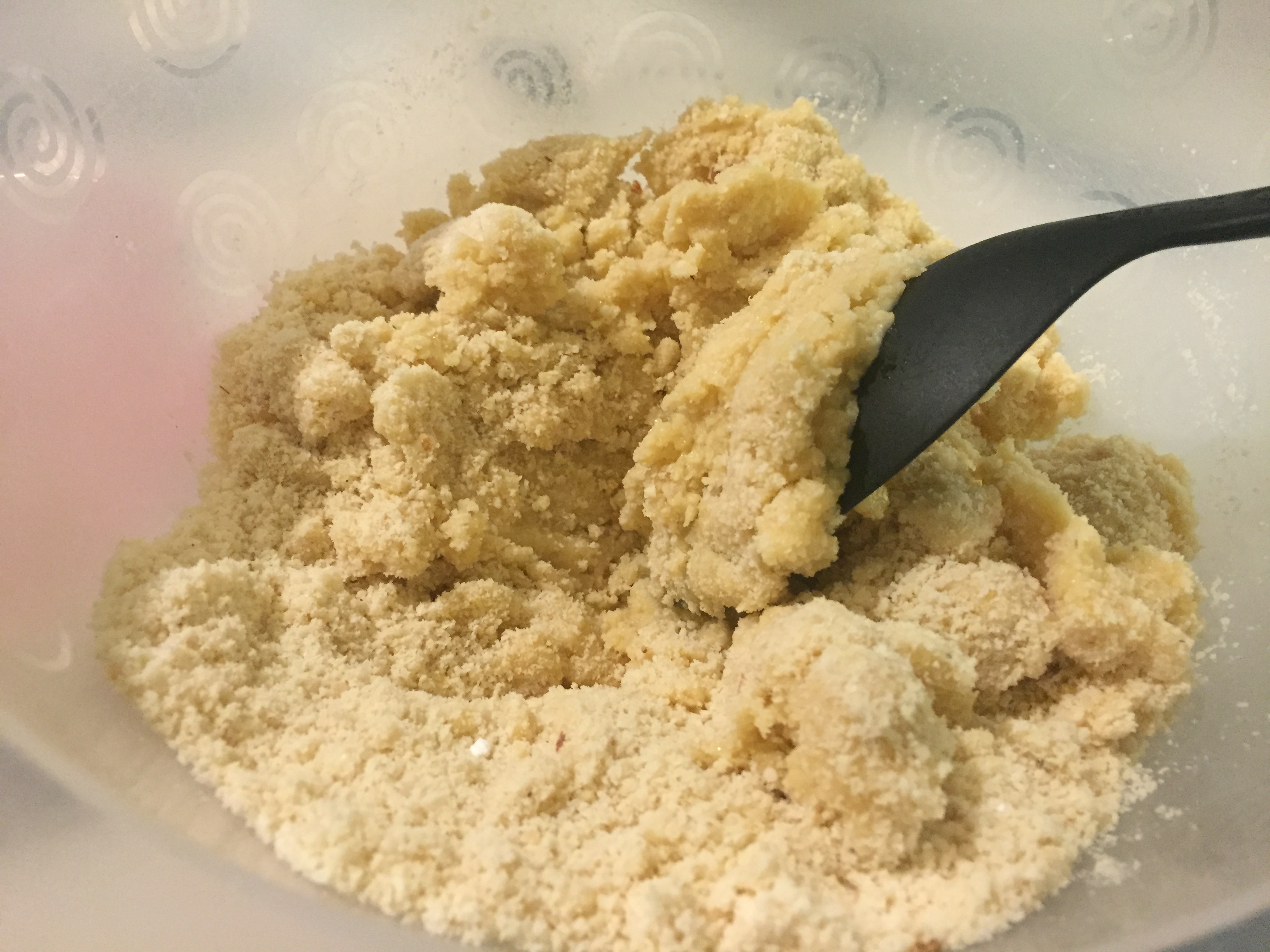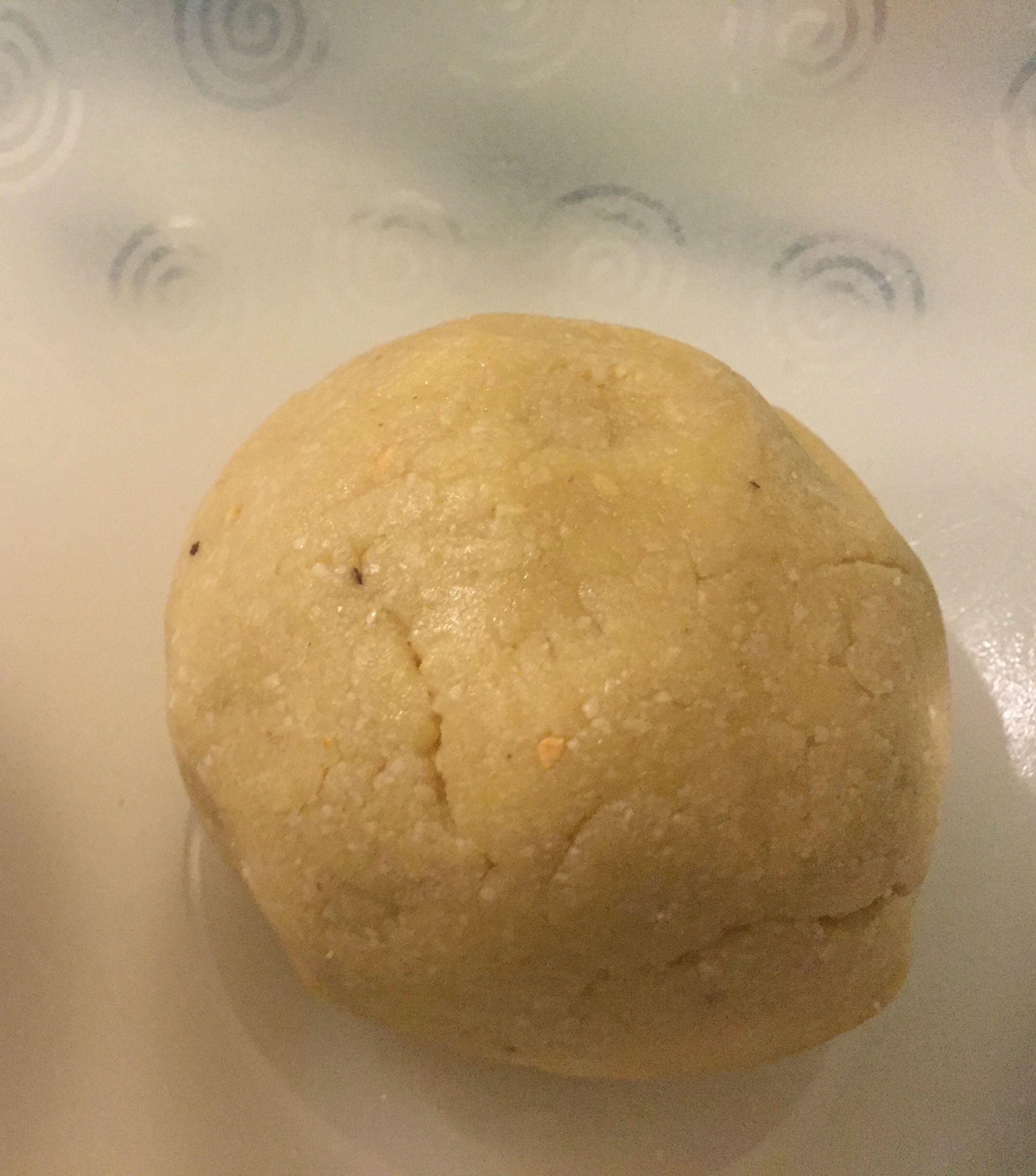 Combine with a spatula at first, then use your hands to form a ball of pizza dough.