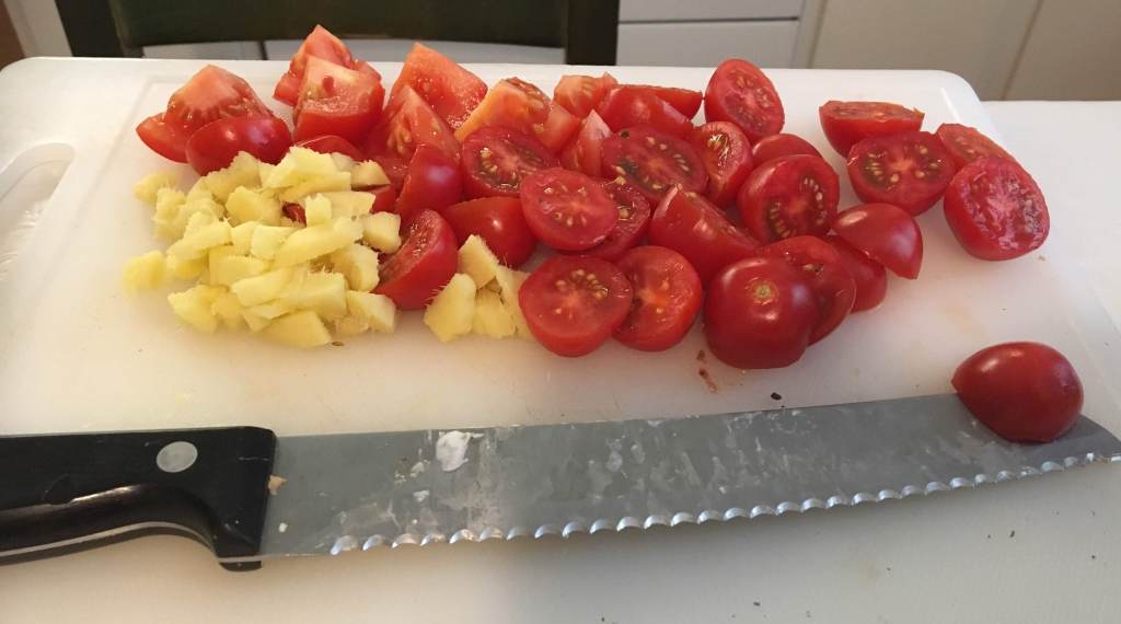 Let it all boil and simmer for about 30 minutes. Then, sift so the soup is clear, without the pieces of vegetables. Then it’s real light soup. But personally I like the pieces and they are good and filling, so if you have not been in Ghana and eaten real Fufu with light soup and know how it should look, it is not wrong if you don´t sift, it is good.