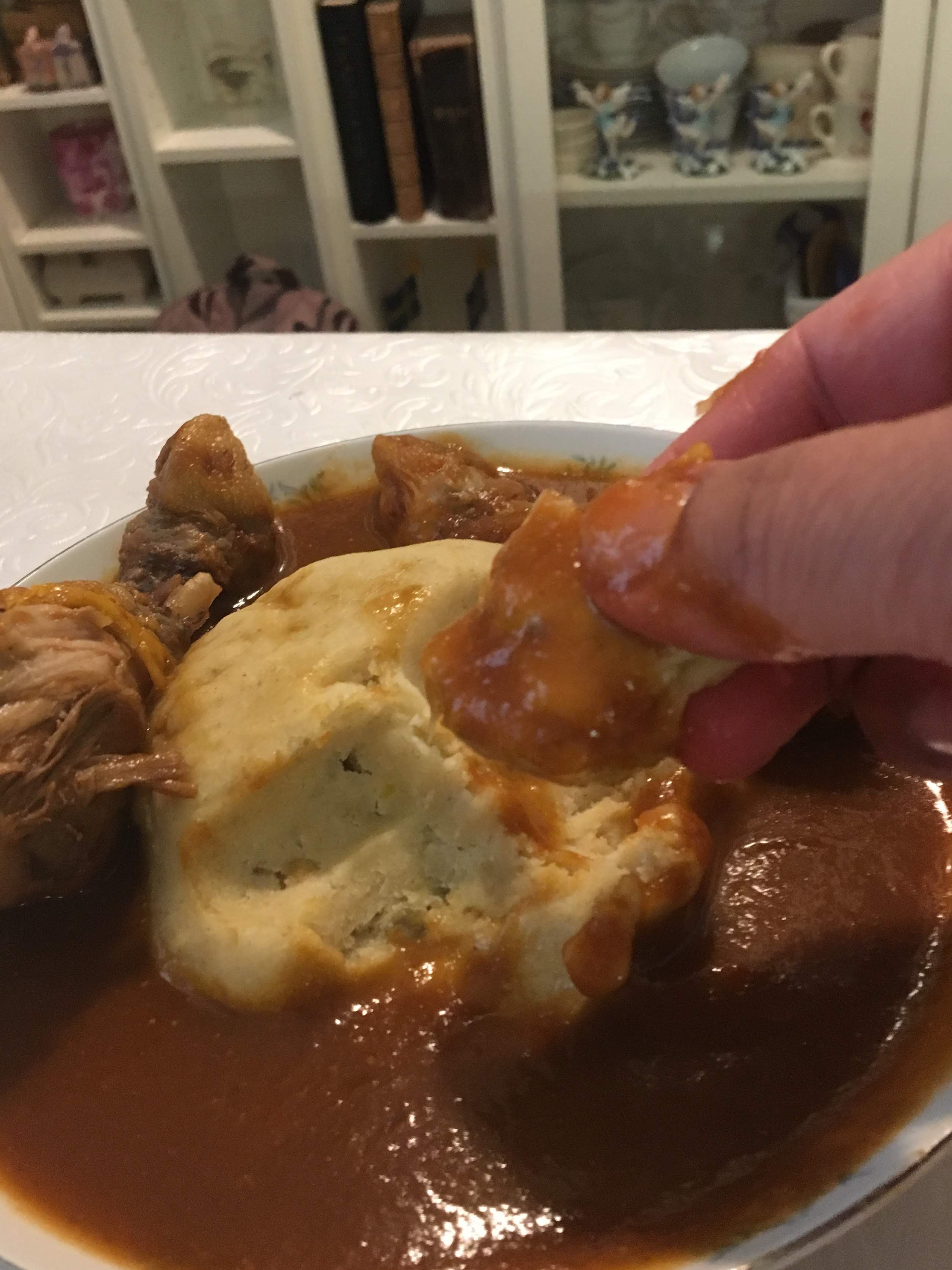 Fufu is considered the National Dish of Ghana. Fufu is a staple food in Ghana. It is eaten with soup. You eat with your hands. Fufu can be made of different ingredients. In northern Ghana you make Fufu from yam´s roots. In southern Ghana you make it from cassava and plantain. There are also powder to buy nowadays, which is made of one or the other and you just mix it with water.