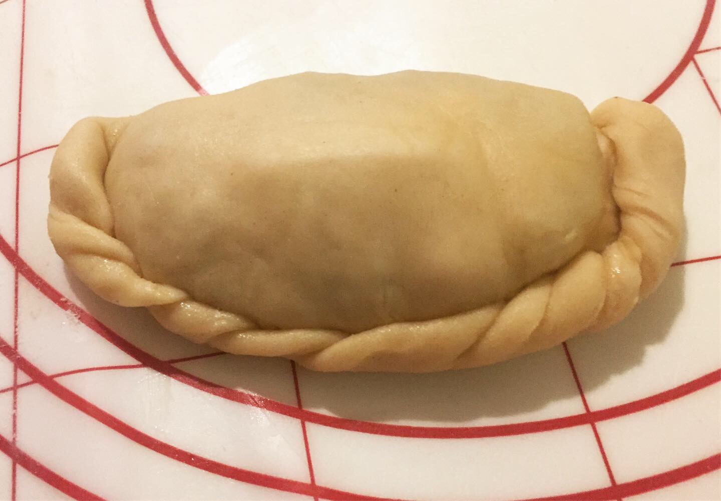 Fold the half without filling over the other half with the filling and close the Empanada so it looks like a half moon. Press the edge and fold the edges to make a pattern. If not folding press with a fork around the half to close.