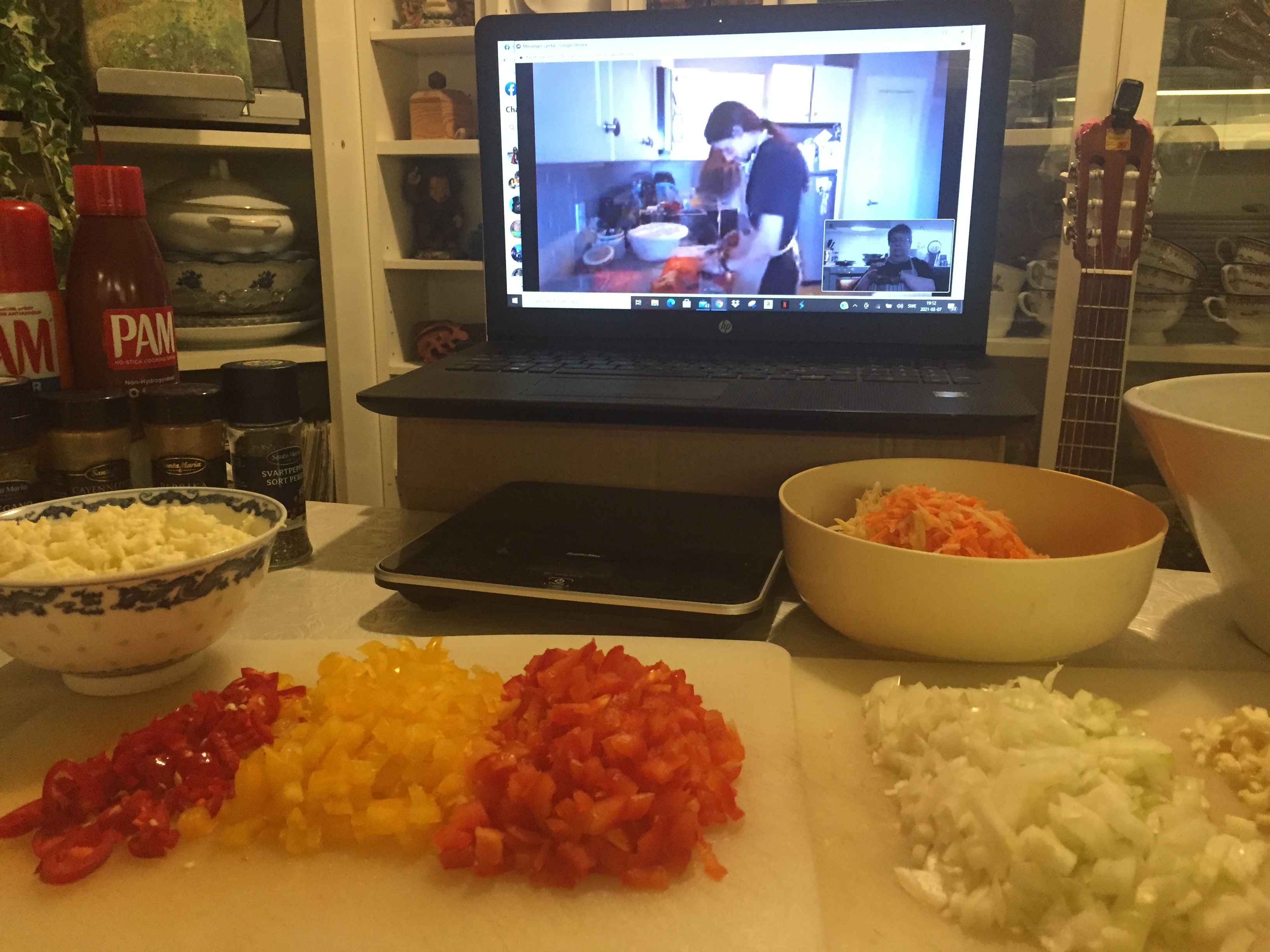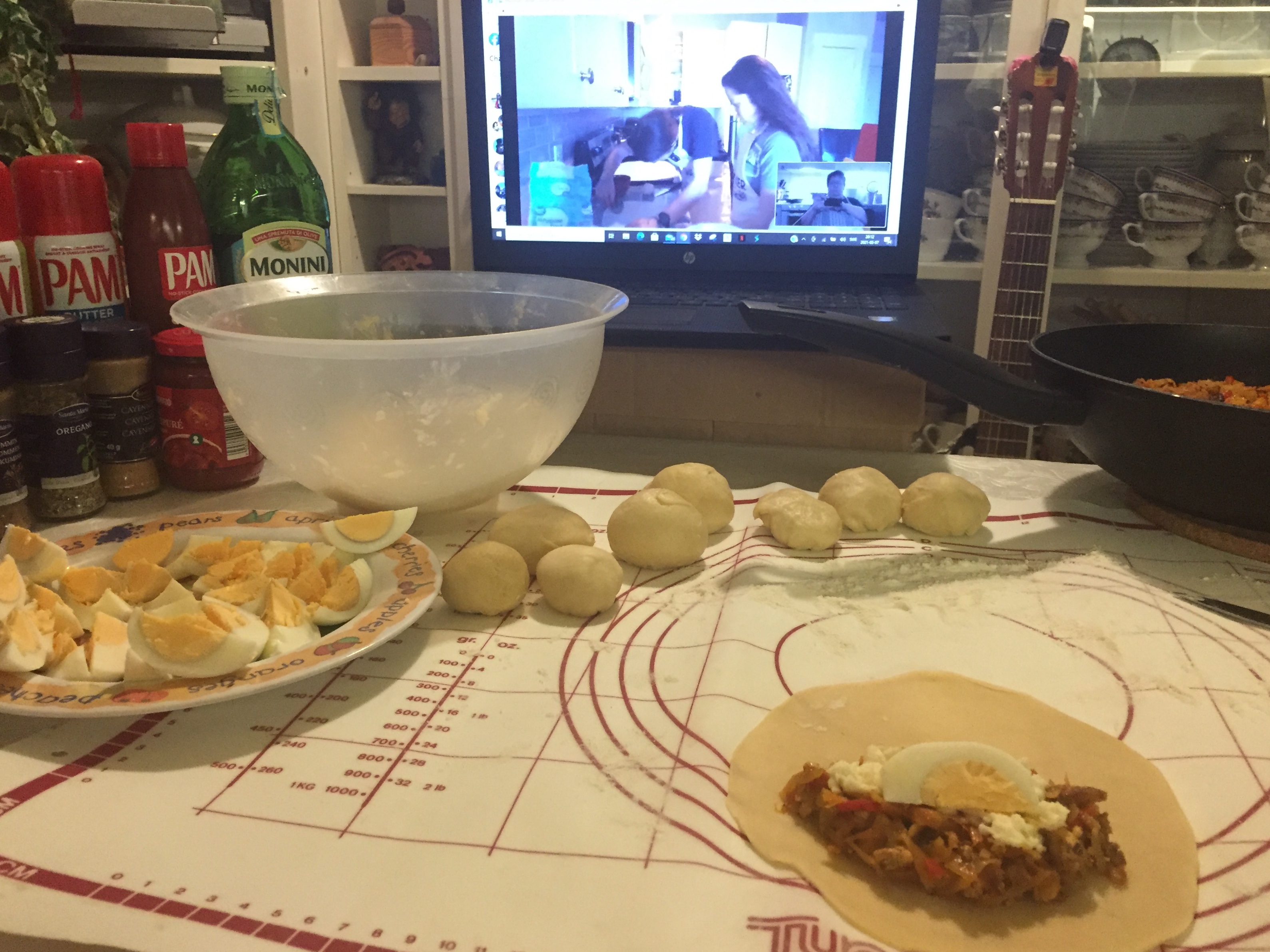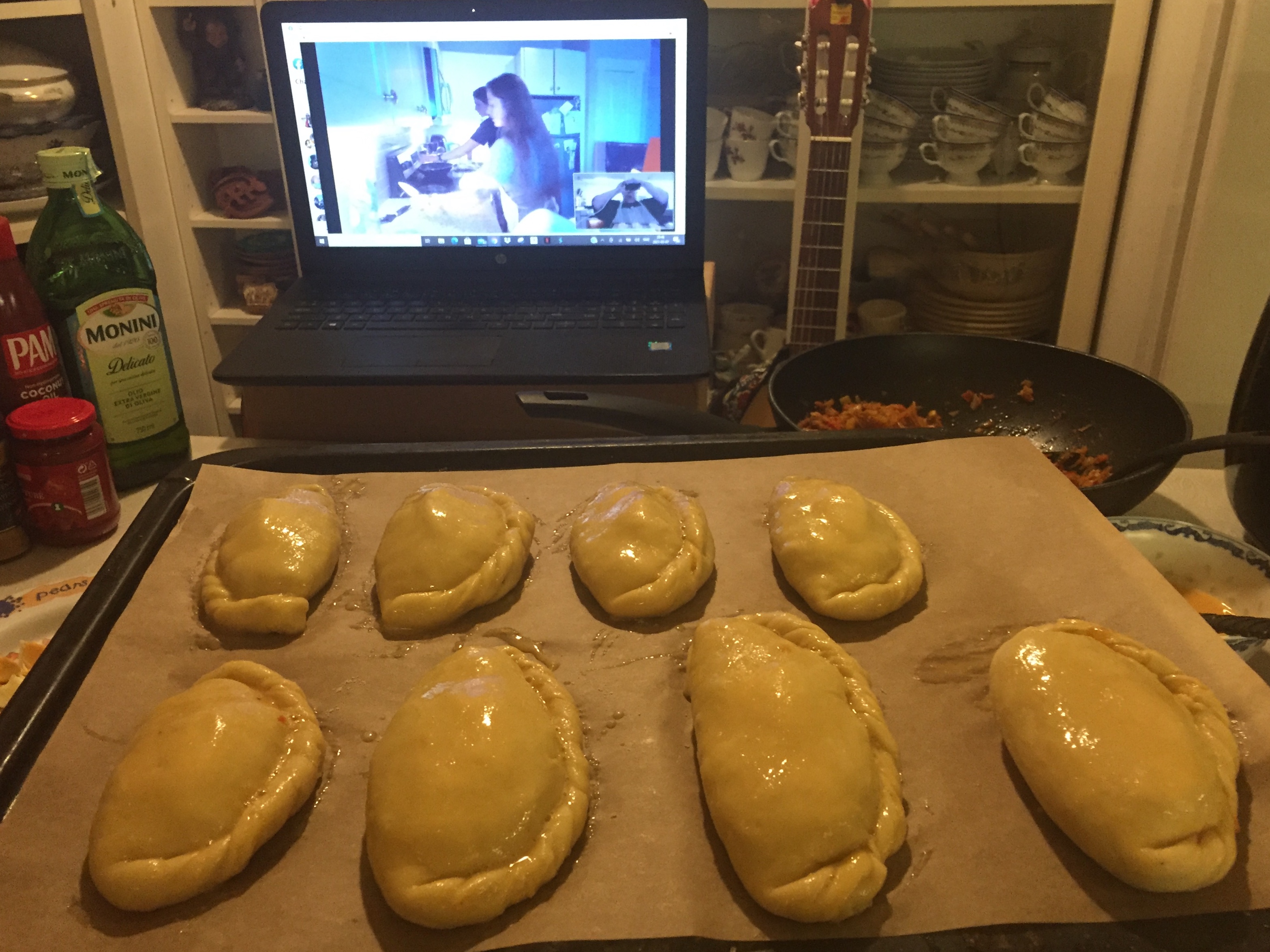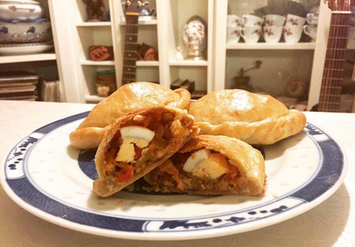 Last sunday was another great Cookalong with Frida and Ciana. They in Frisco, Dallas Texas, USA and me here in Sollentuna Sweden. This time we made Argentine Vegetarian Empanadas. Empanadas can be found everywhere in Argentina. The most common filling is with beef, but it can really be anything you like and prefer. We made ours vegetarian. Instead of ground beef we used crumbled, marinated and baked Tofu and added that to a filling with onion, garlic, chili pepper, bell pepper, shredded carrots and potatoes. We also added the traditional hard boiled eggs. In Argentina they even use olives however I we did not have that at home so we made without.