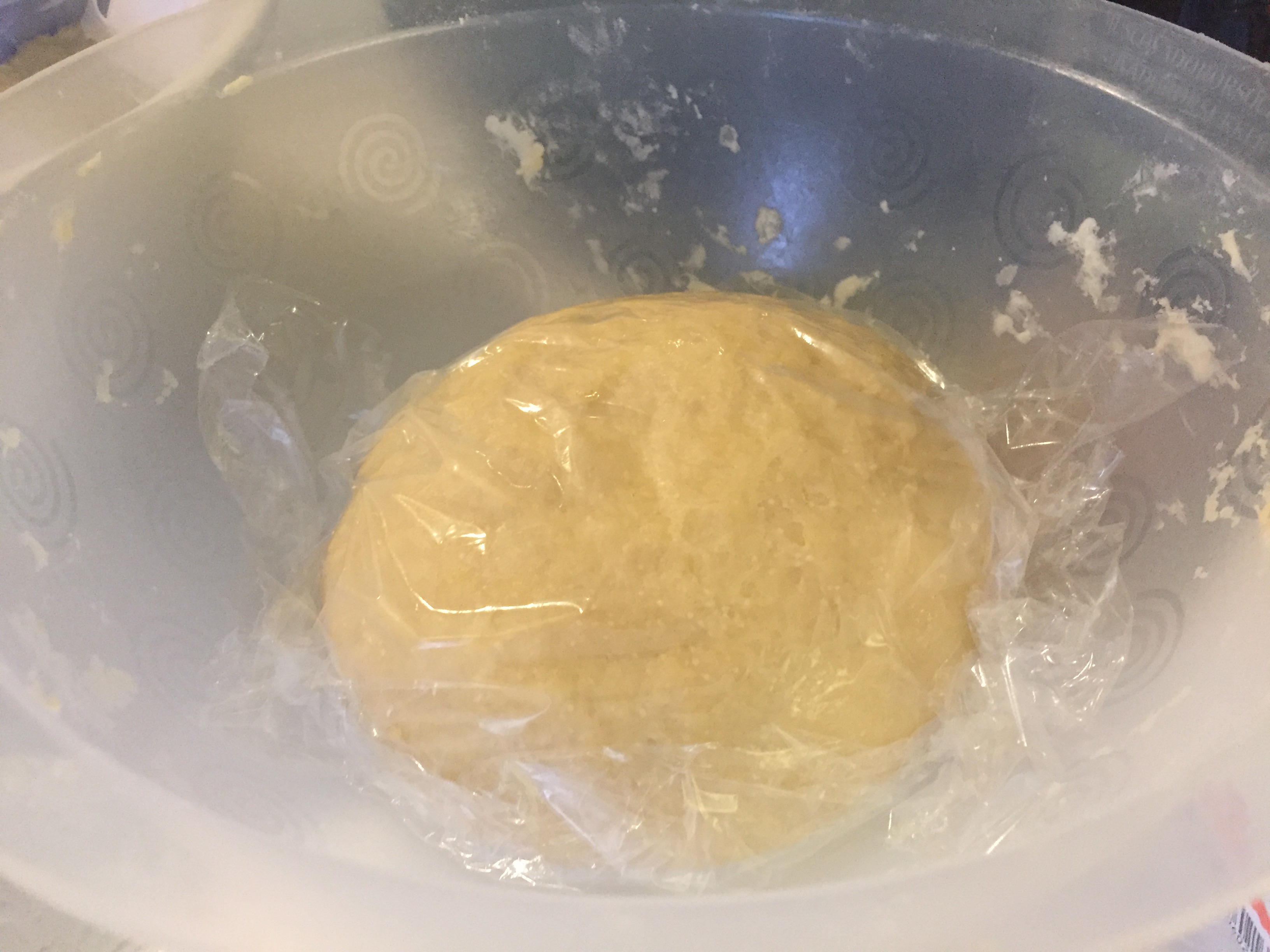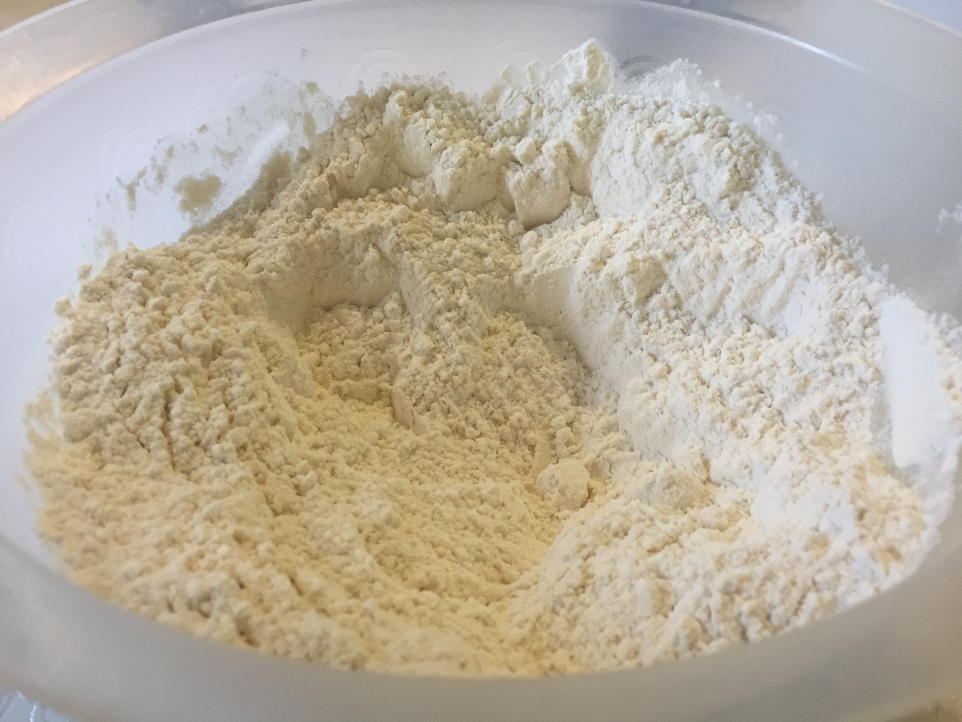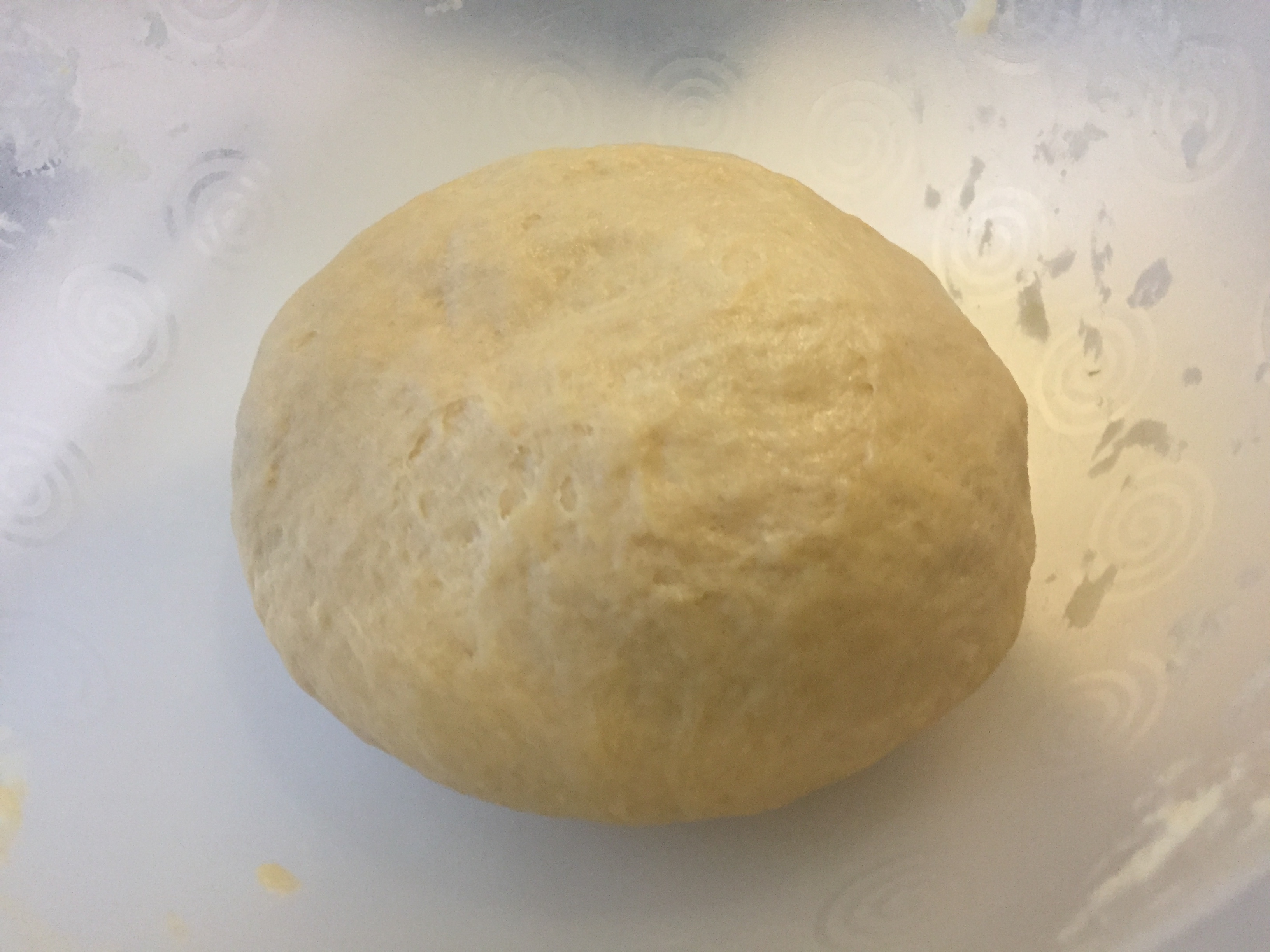 Mix everything using a fork at the beginning and then the dough can be kneaded together with your hands.