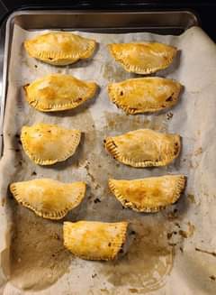 Place Empanadas on a tray with parchment paper and bake in the middle of the oven at 400 Fahrenheit degrees/200 Celsius Degrees for about 20 minutes or until your empanadas have a nice golden color.