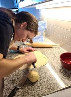 Roll out the dough until it is about 2-2, 5 mm thick. Take out rounds of about 13 cm in diameter (use a lid or cup).