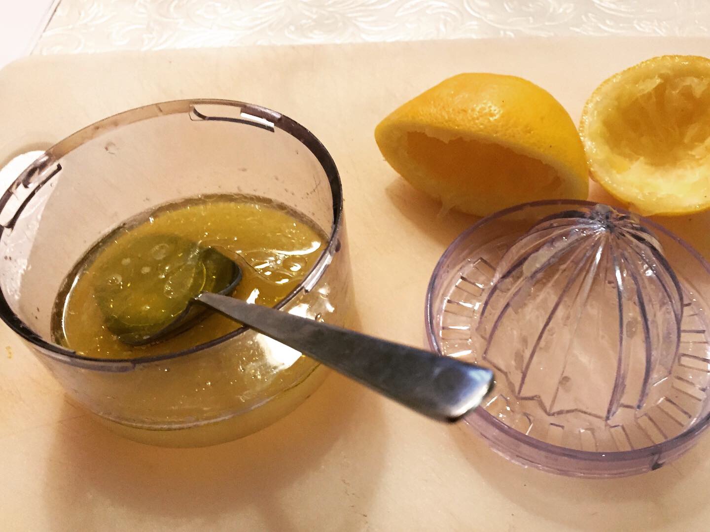 Before serving scatter your mix of lemonjuice mixed with parsley and oil over the whole top, and garnish with olives, if desired. You could even garnish with green peas.