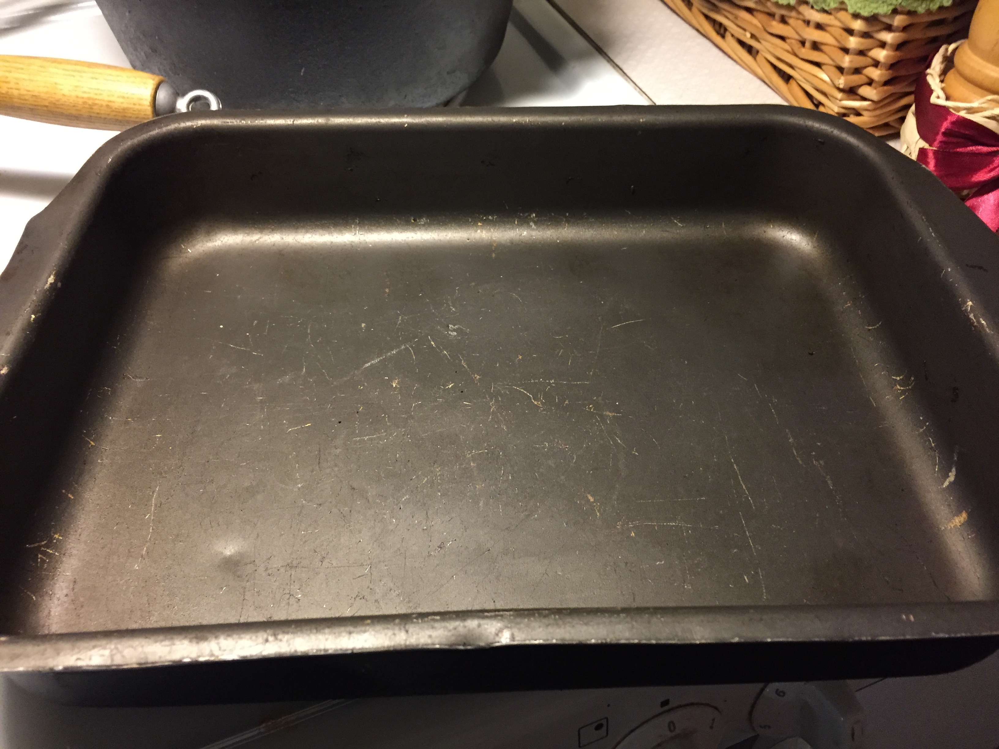 I poured the soffrito (that is the name of the vegetable mix) in the oven pan and spread it all out evenly. Beforehand I had heated the oven to 450 Fahrenheit / 230 celsius degrees with the oven pan inside. So I poured my mix into a hot oven pan. Then sprinkle the rice evenly over the whole pan and stir a bit all over so the rice sinks to the bottom. Place parchmentpaper on top so the liquid will not evaporate too quickly.