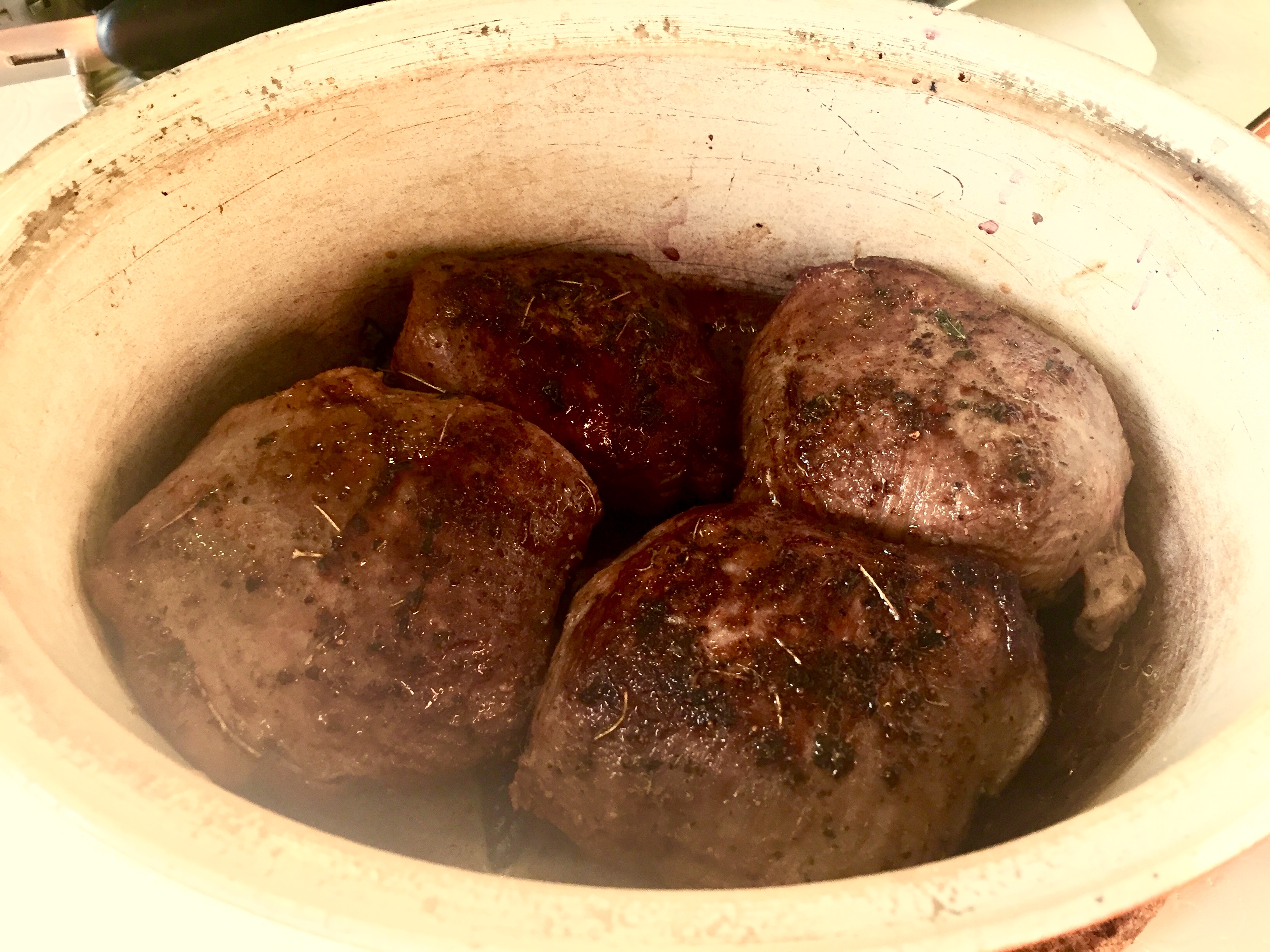 Place the fried pieces in an Oven Pan with Lid. I used my Dutch Oven. Sprinkle the lemon juice over.