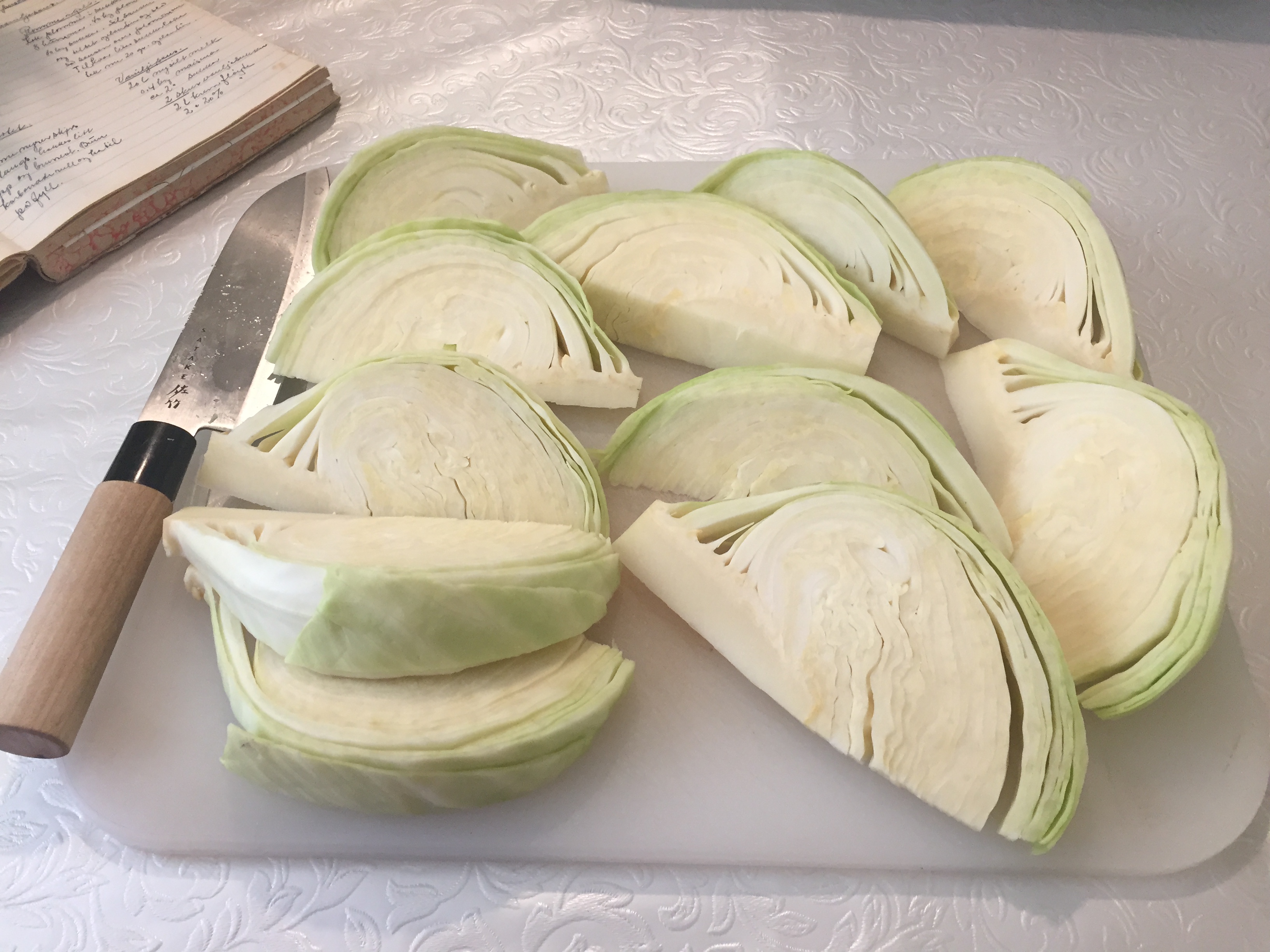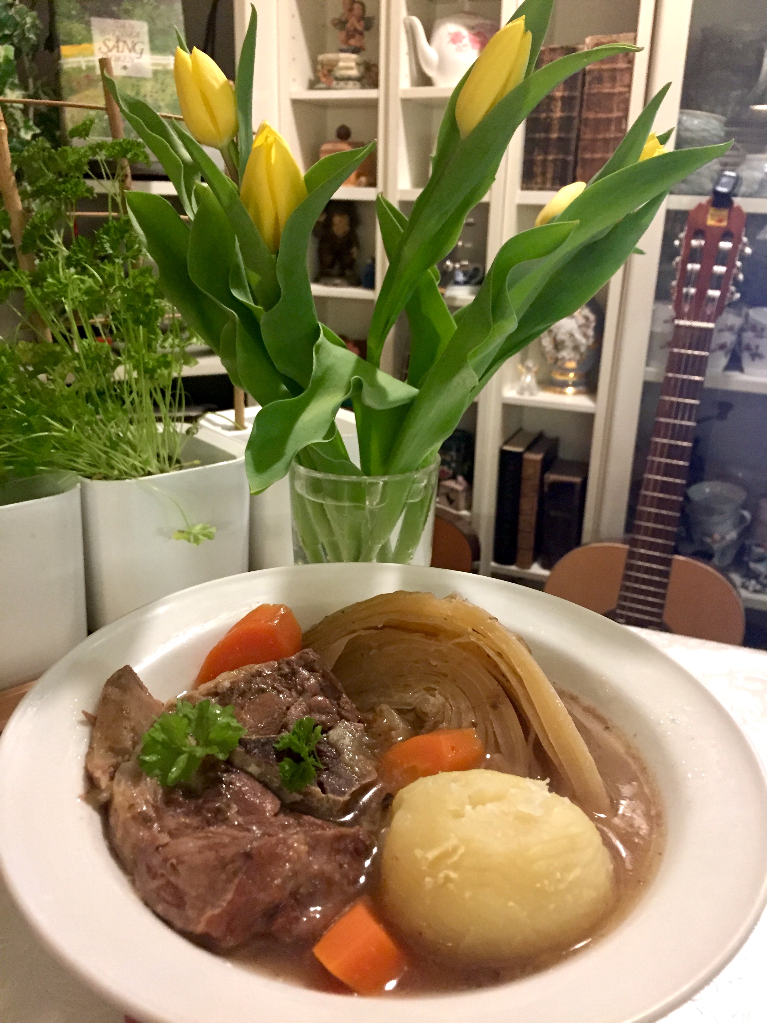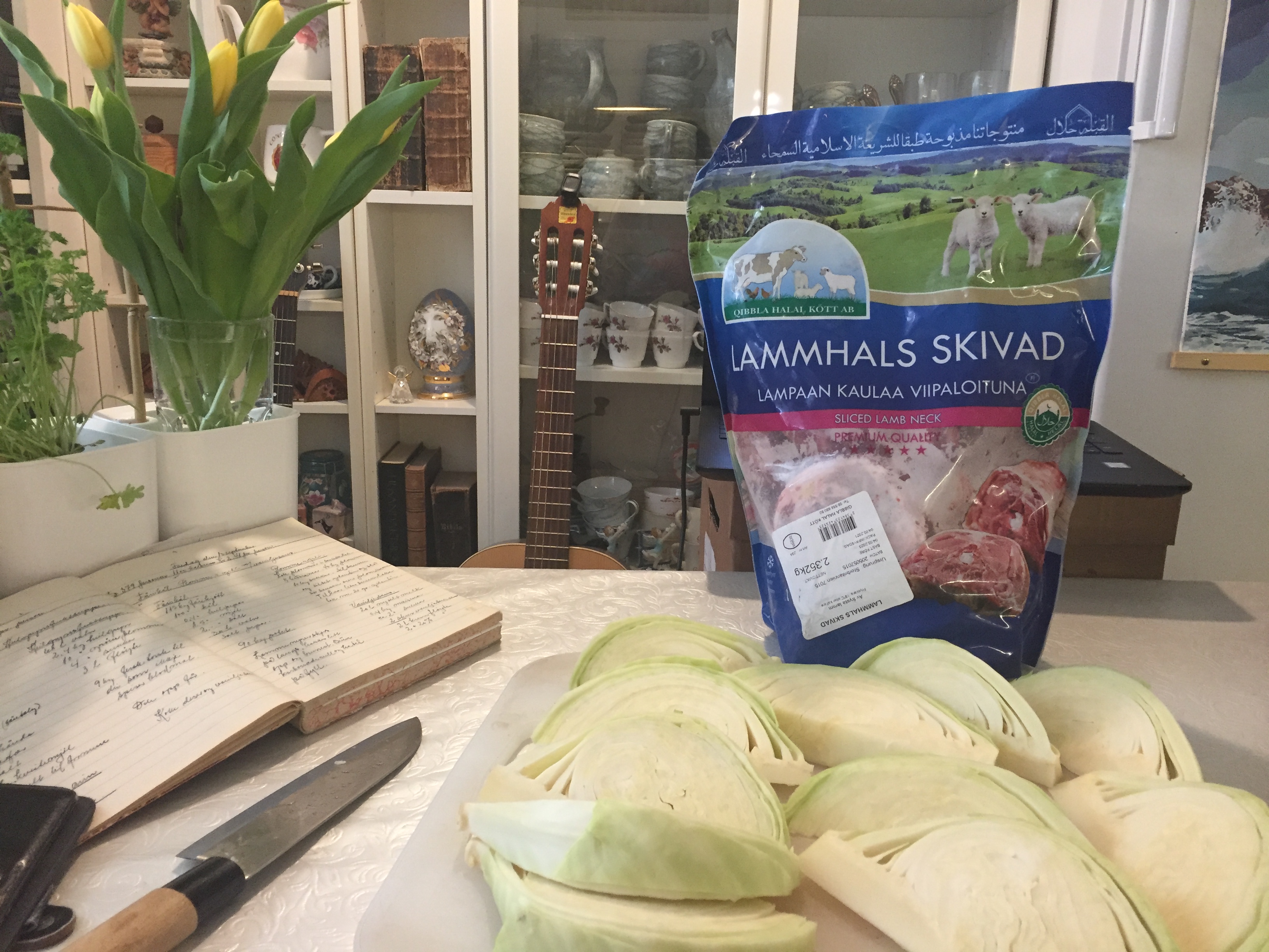 “Fårikål” is my own home country´s National dish. This is a lamb and cabbage stew. Mostly Norwegians like to prepare ”Fårikål” to welcome fall season. It even has it’s own day in the fall. ”Fårikål” is prepared with few ingredients, cabbage, lamb or mutton meat, peppercorns, flour, water, salt. It is slow cooked just simmering for hours. Make no mistake, it is delicious and very comforting. Why did I decide to make it in spring? Well it was Easter and lamb is quite traditional to eat. And shame on me, I have made National dishes from so many countries, but never my own countries National dish. I remember I ate it visiting my aunt Martha when living in Norway. They had sheep. I grew up on a dairy farm so we had cattle meat and we had pigs. That might be the reason why we did not have it often.