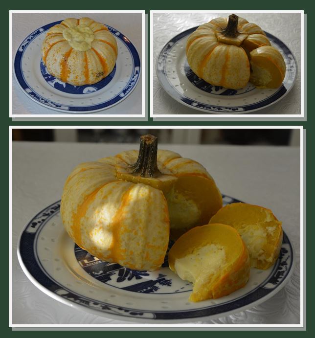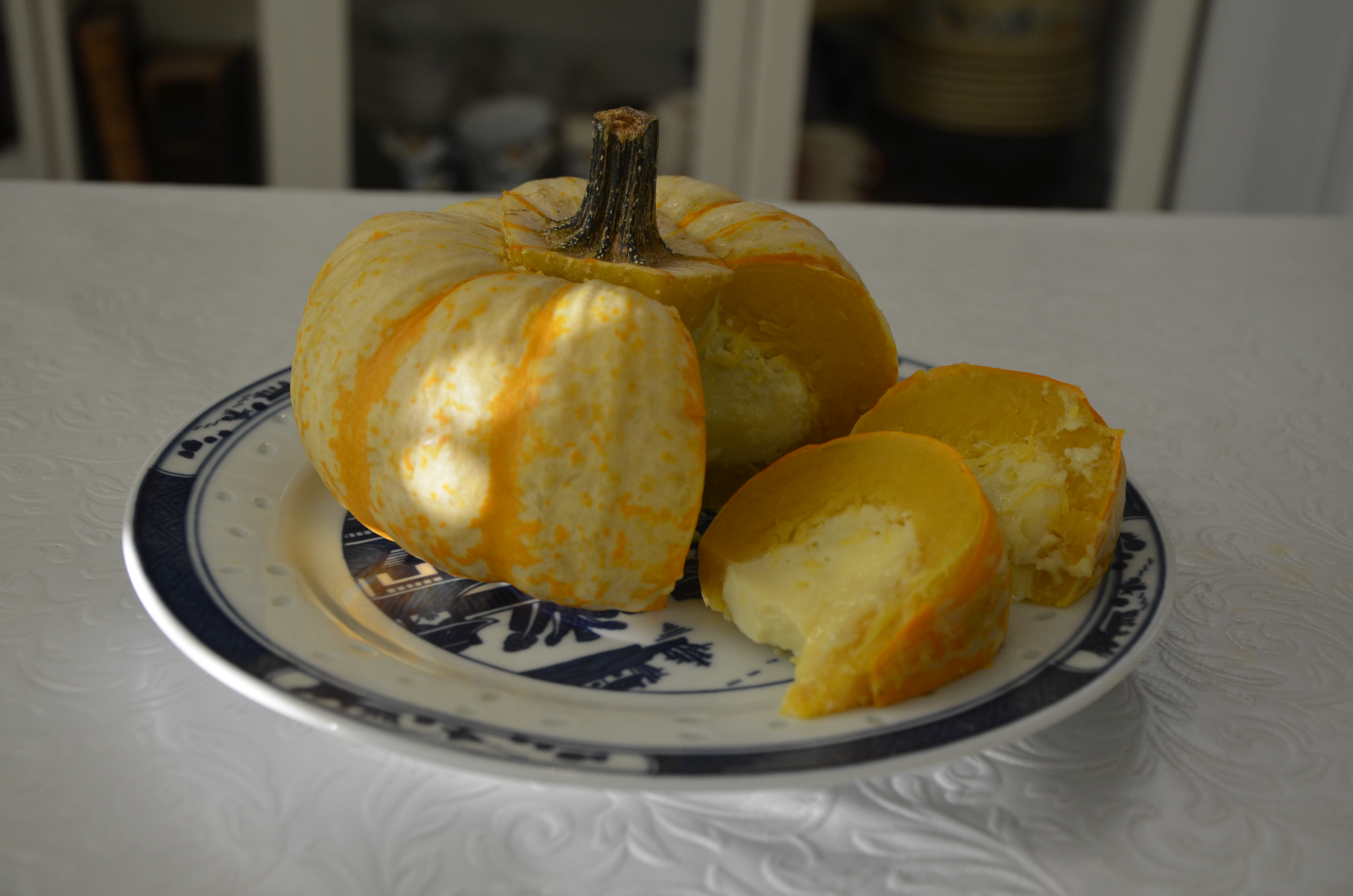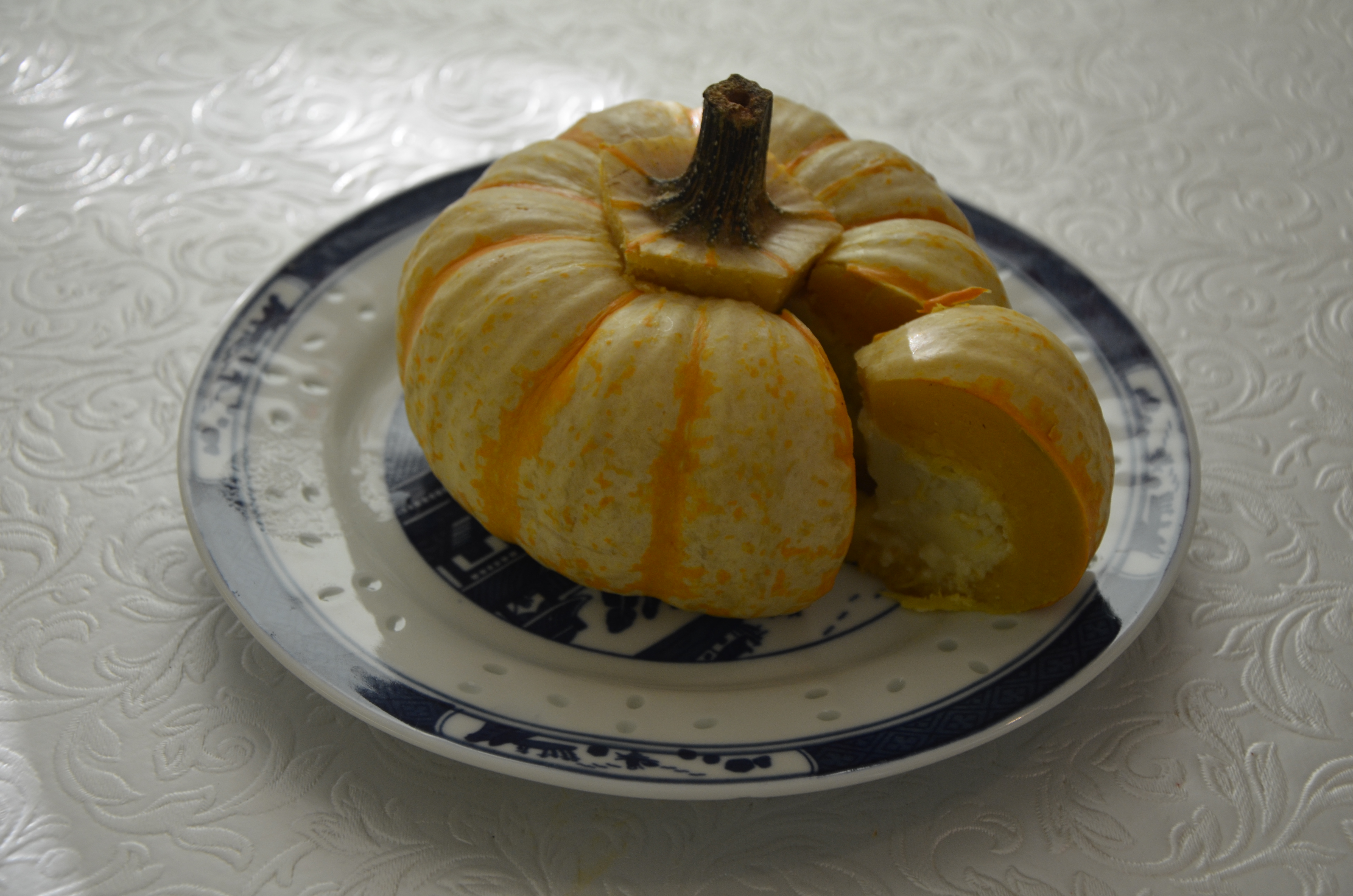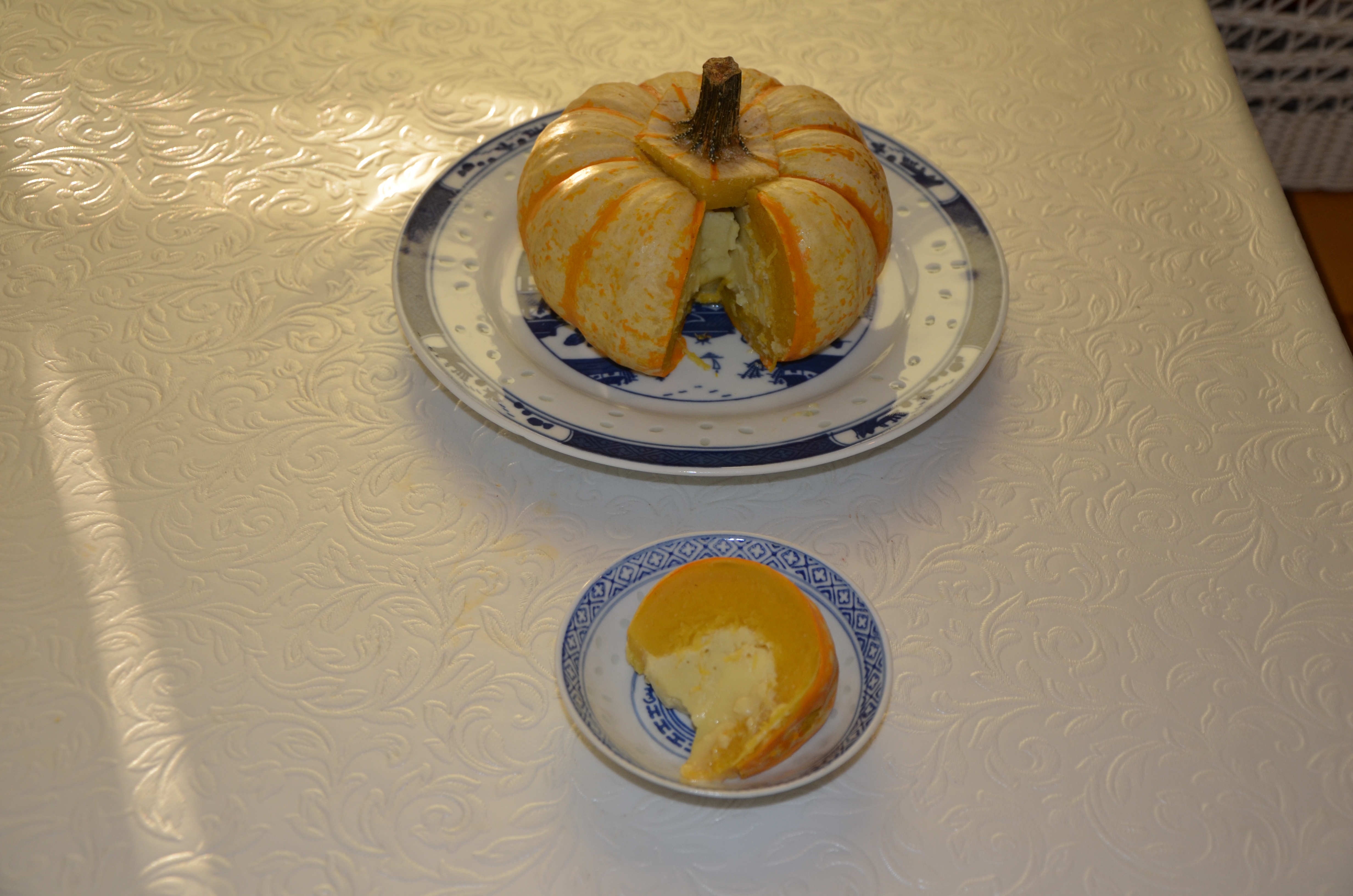 When cooled, slice the pumpkin as you would slice a cake, to individual pieces and enjoy!