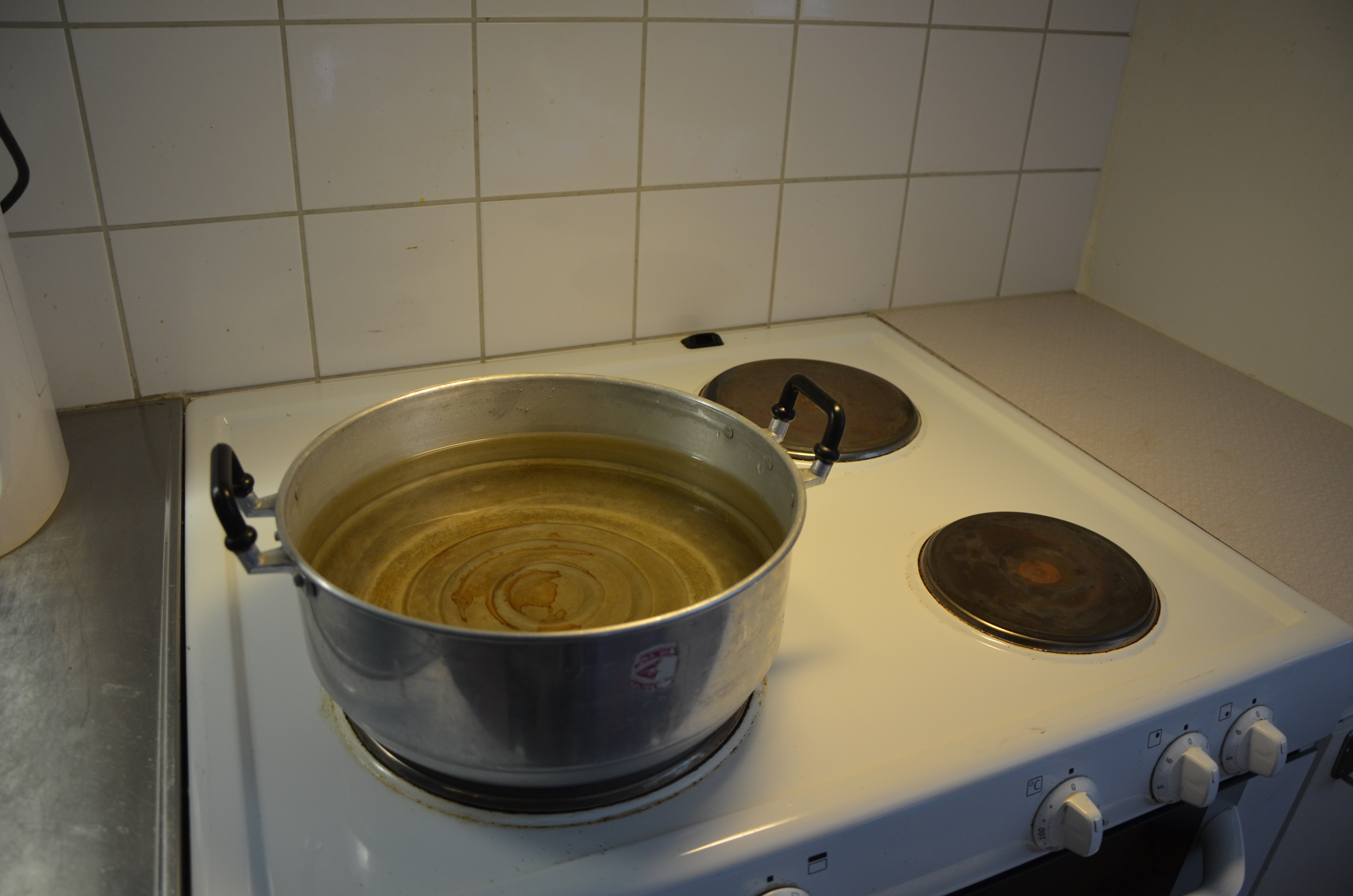 Soak the cleaned pumpkin in 1 l lime water for about 20-30 minutes. (just ordinary water with some lime in.)